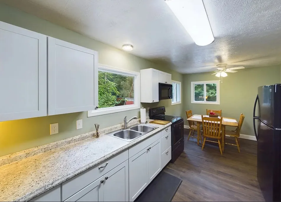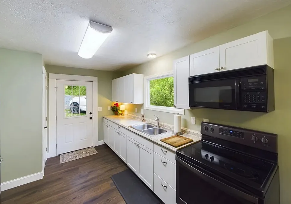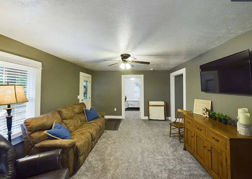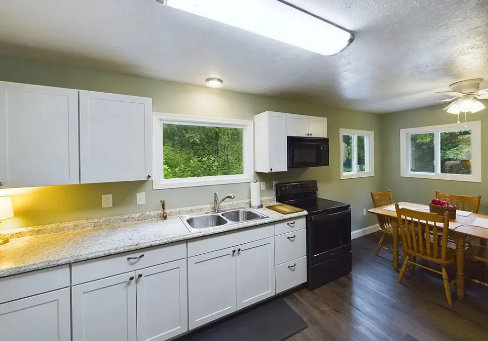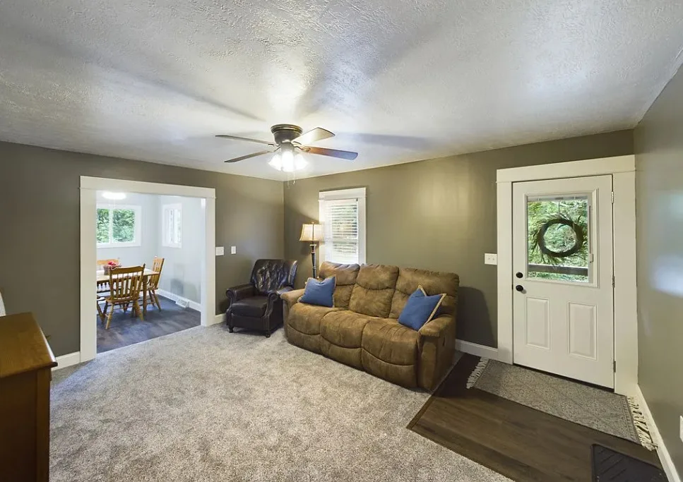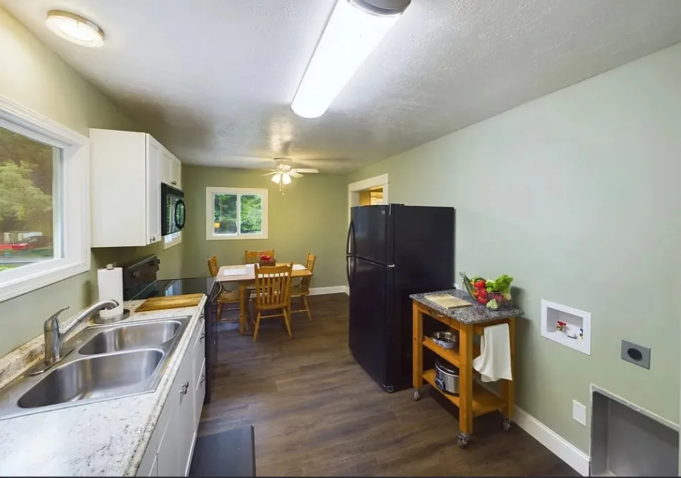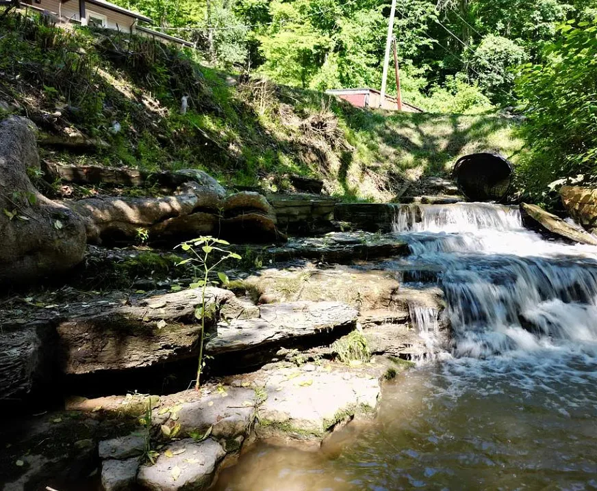 Pretty waterfall! Nice acreage with this house! The home was built in 1927. It is located on 35 acres in Triadelphia, West Virginia. The house is kind of like a blank slate. I would try to add some character inside. The house features an updated kitchen and bathroom. There is a fire pit area and a covered porch. Pretty setting! Three bedrooms, one bathroom and 1,044 square feet. $330,000