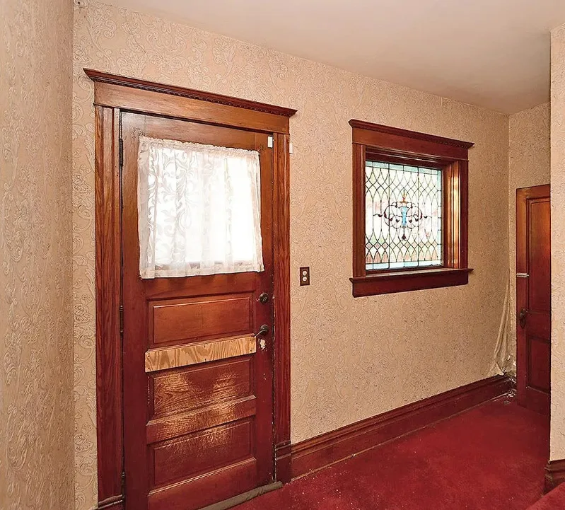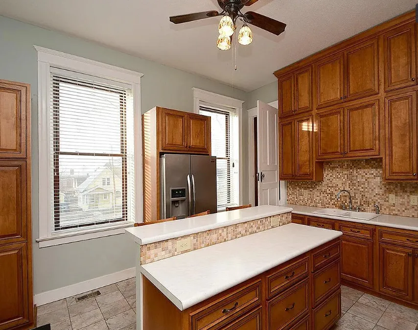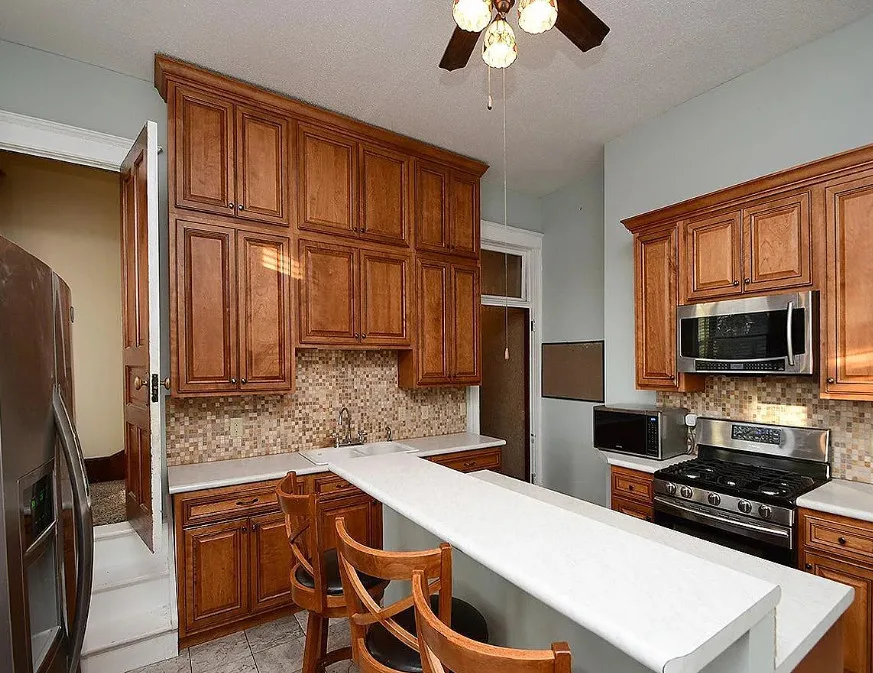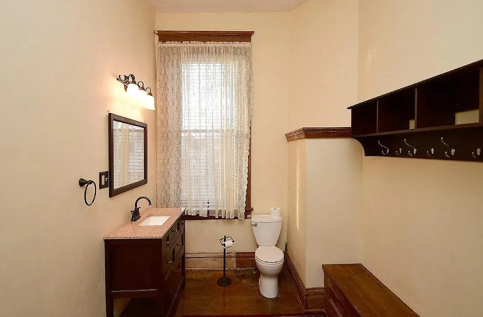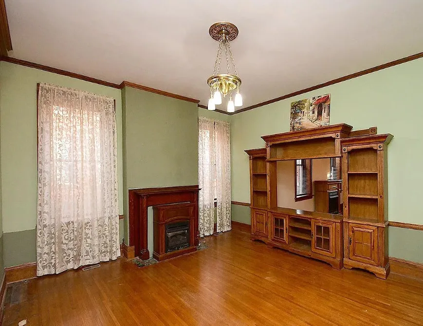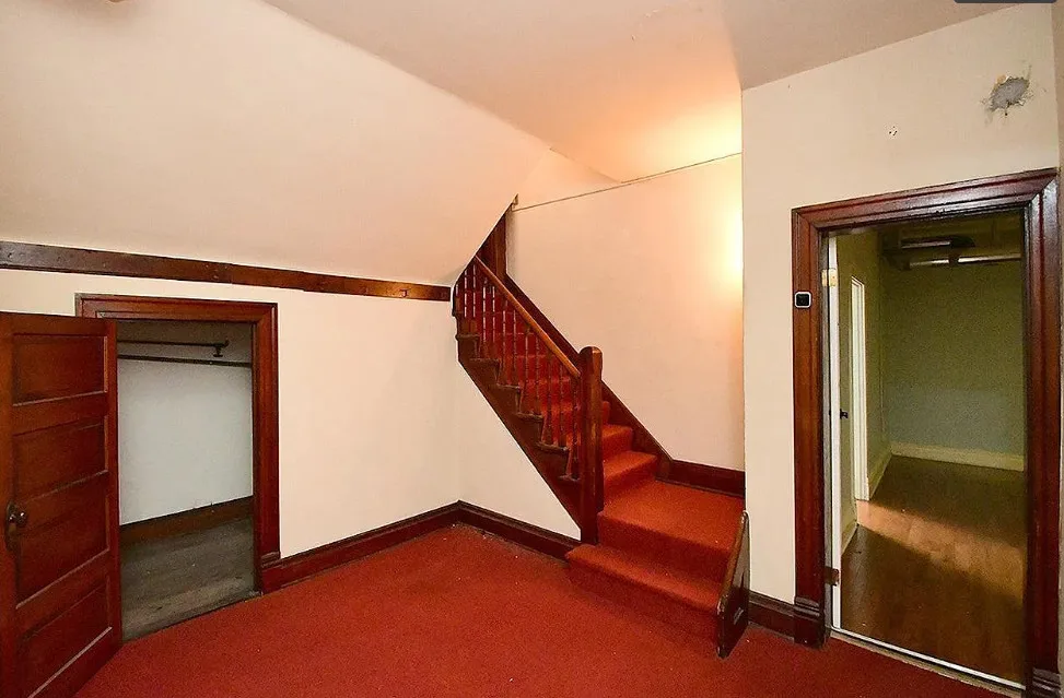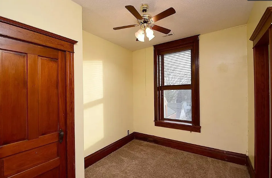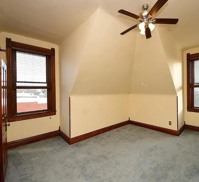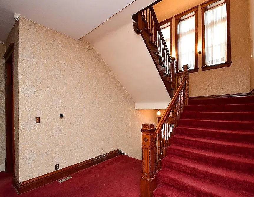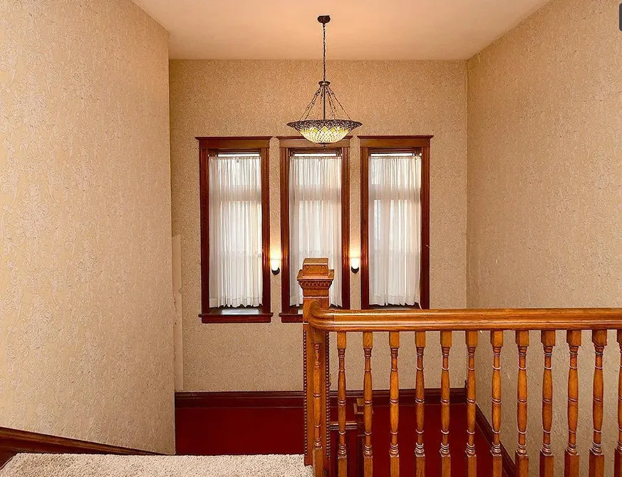 This is a big house with 10 beds/6 bathrooms and over 7,000 square feet! The house was built in 1901. It is located on .41 acre in Omaha, Nebraska. The house features a covered front porch, a covered back porch, wood floors, baseboards, a grand staircase, vintage light fixtures, chair rails, crown moulding, french doors and unpainted woodwork. There is a detached garage on the property. I think the island in the kitchen should be removed. Makes the space too cramped. Ten bedrooms, six bathrooms and 7,444 square feet. $560,000
