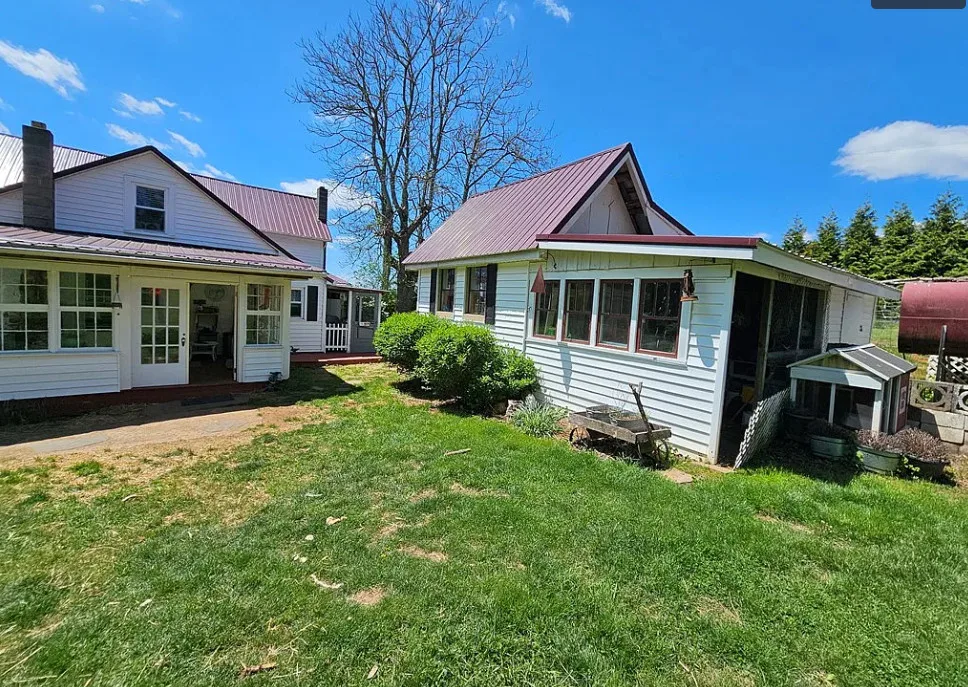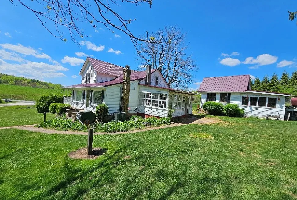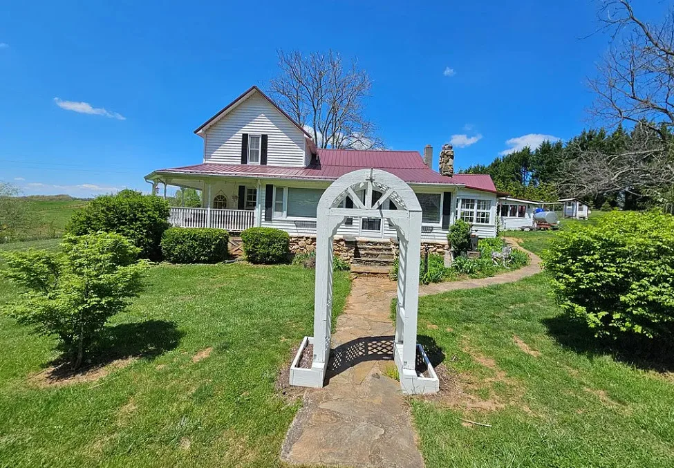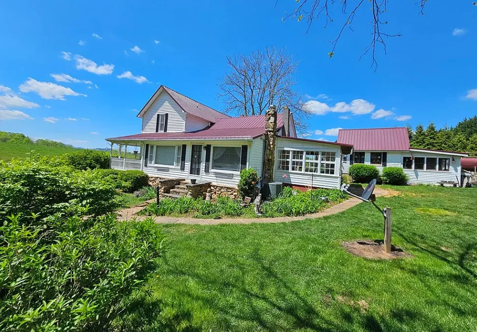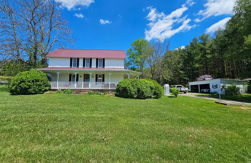 This house has such a beautiful setting! This is a really pretty area! There is a fruit orchard on the property! The house was built in 1900. It is located on 8.57 acres in Galax, Virginia. The house features a covered front porch, stone chimney, wide plank wood floors, chair rails, crown moulding, wide baseboards, exposed brick, wood stove and a lovely sunroom. Outside you will find a pond, detached garage and a detached storage shed/workshop. Four bedrooms, two bathrooms and 2,155 square feet. $399,900
