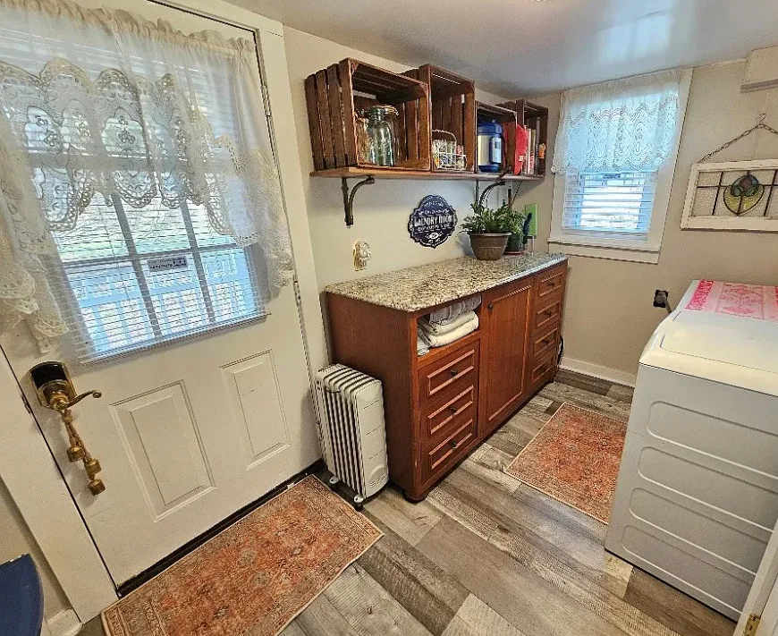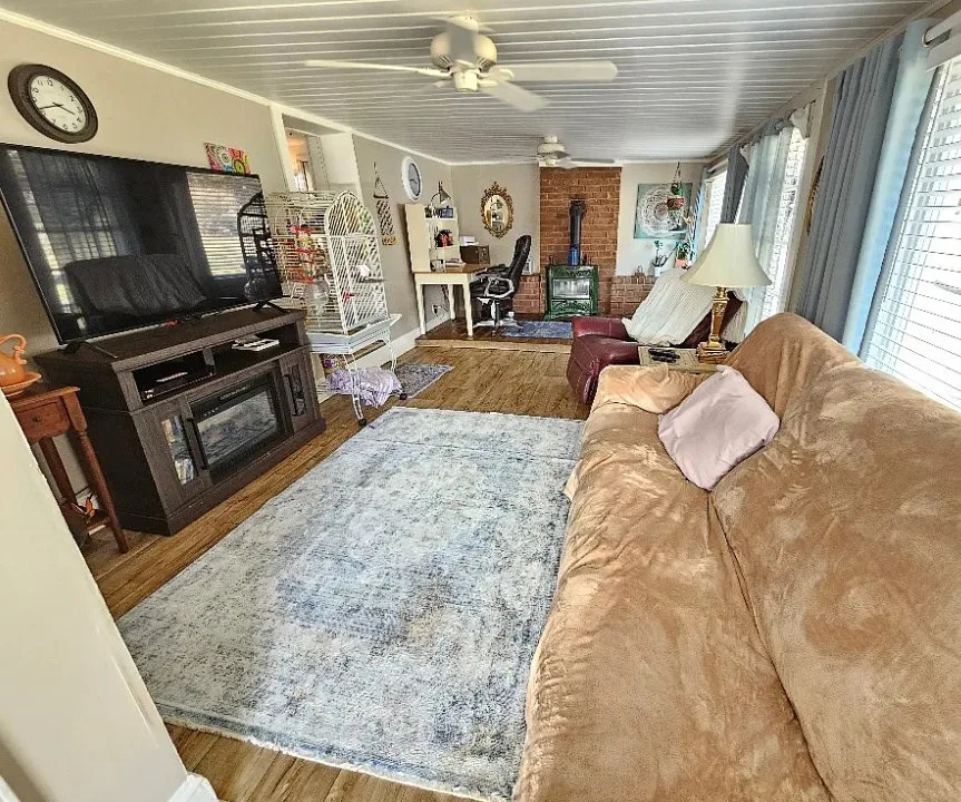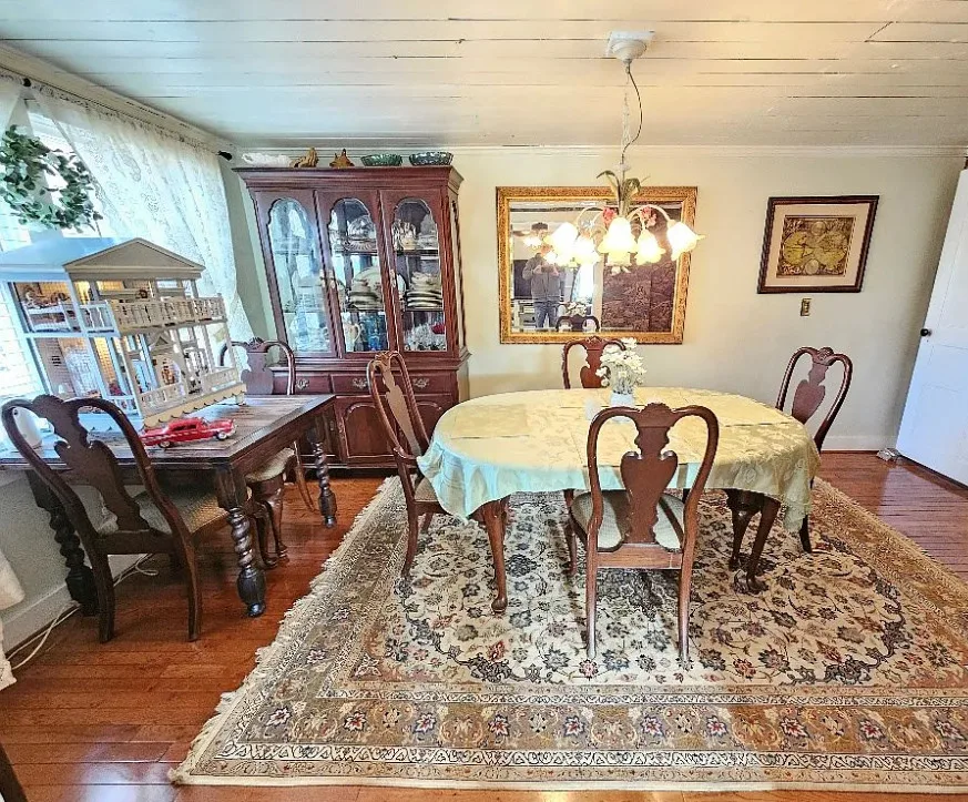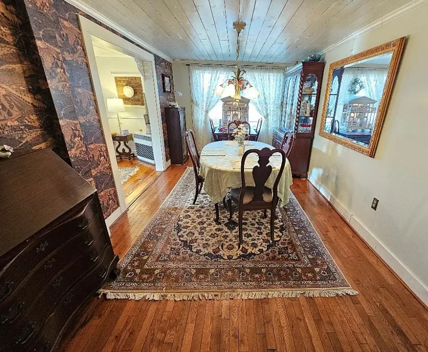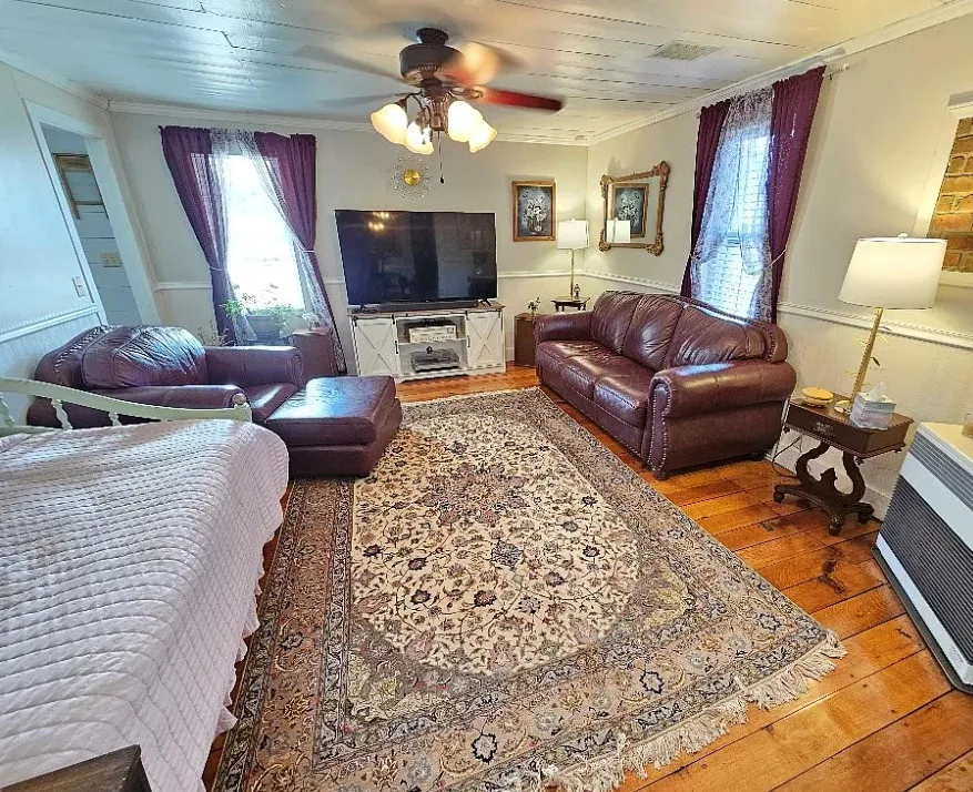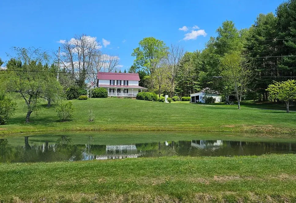 This house has such a beautiful setting! This is a really pretty area! There is a fruit orchard on the property! The house was built in 1900. It is located on 8.57 acres in Galax, Virginia. The house features a covered front porch, stone chimney, wide plank wood floors, chair rails, crown moulding, wide baseboards, exposed brick, wood stove and a lovely sunroom. Outside you will find a pond, detached garage and a detached storage shed/workshop. Four bedrooms, two bathrooms and 2,155 square feet. $399,900