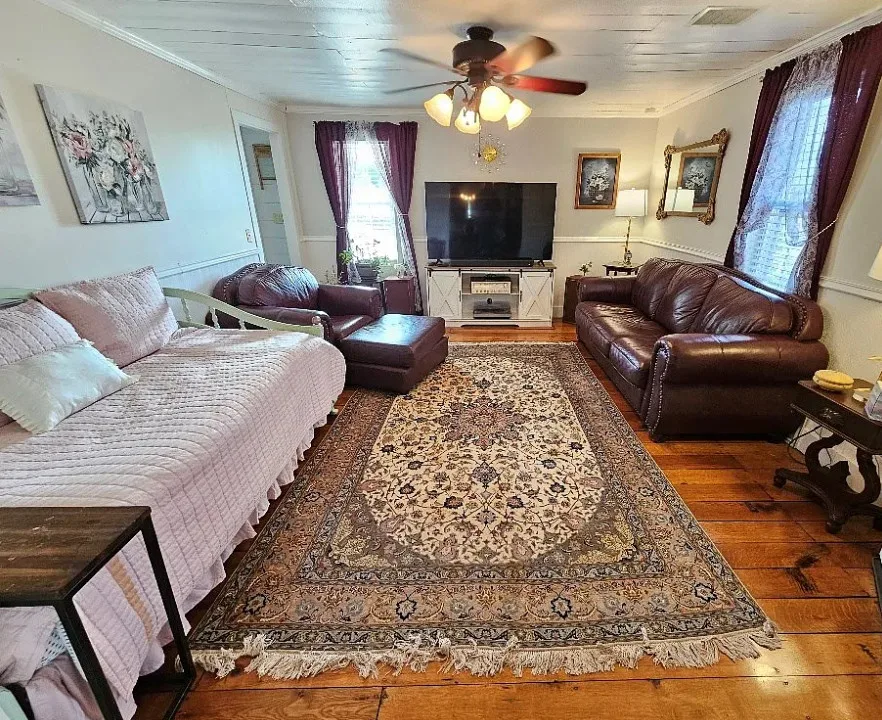Experience peaceful country living with this beautiful farmhouse situated on 8.5+/- scenic acres featuring a stocked pond, flowing creek, and extensive landscaping. This charming 4-bedroom, 2-bath home offers an updated kitchen with new appliances, spacious living room, cozy family room, and formal dining room. The primary bedroom and bath are conveniently located on the main level, while three additional bedrooms and a full bath with a classic claw foot tub are upstairs. Enjoy relaxing on the wrap-around porch overlooking the pond and creek or the enclosed back porch for added comfort. Numerous updates include a metal roof, closed-cell insulation under the home, new support beam system by JES, heat pump, tankless hot water heater, whole-home generator, plantation shutters, and leaf guard guttering. The property also features multiple outbuildings and sheds, plus a fruit orchard with apples, cherries, pears, and peaches—offering a nice blend of modern updates and timeless farmhouse charm. Call Today!