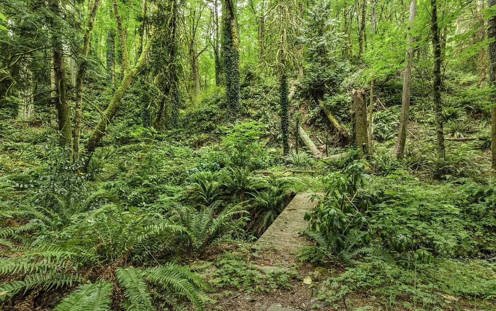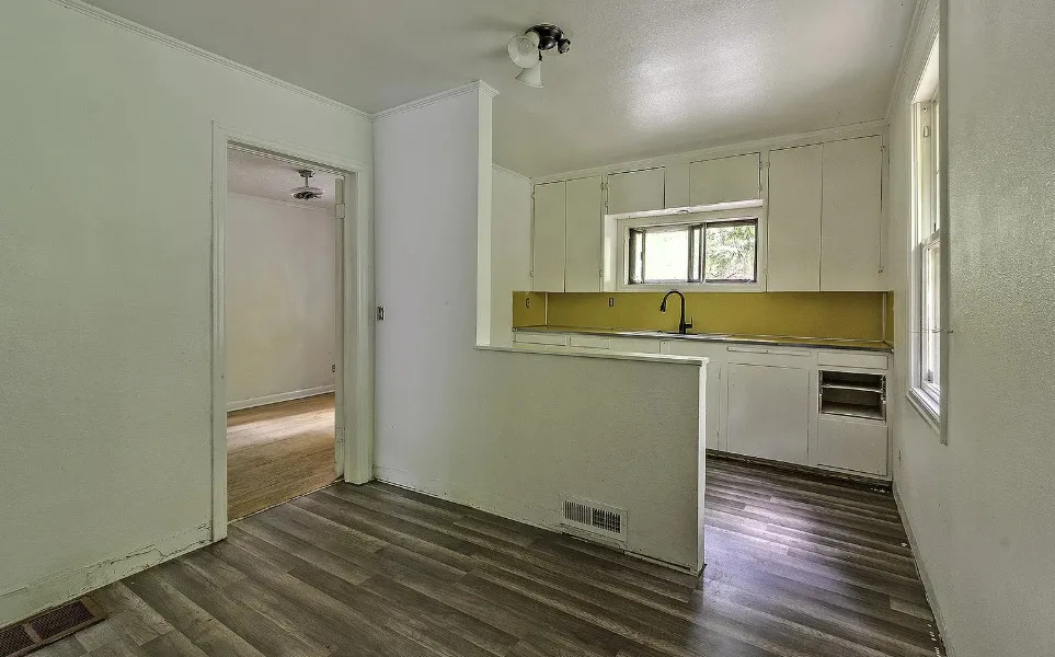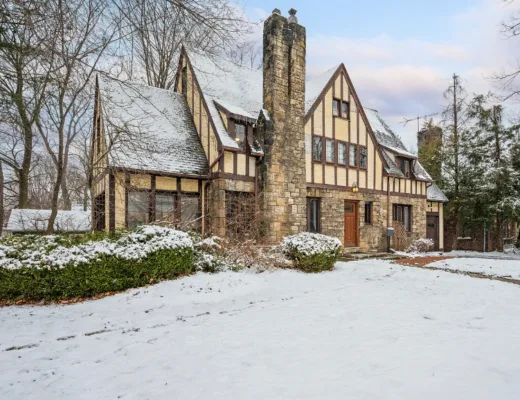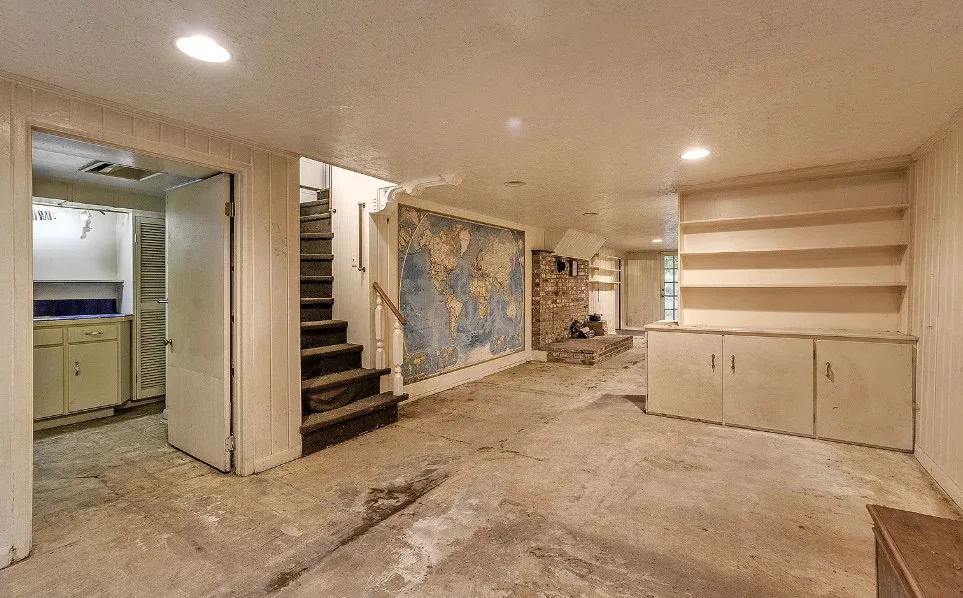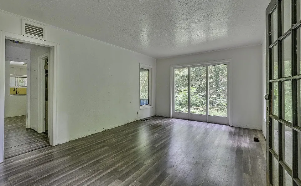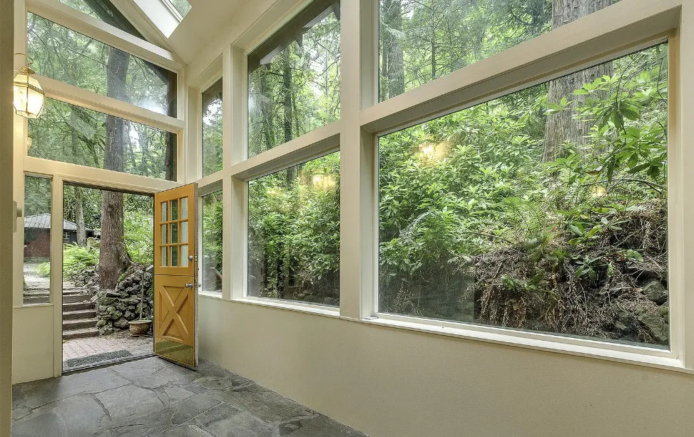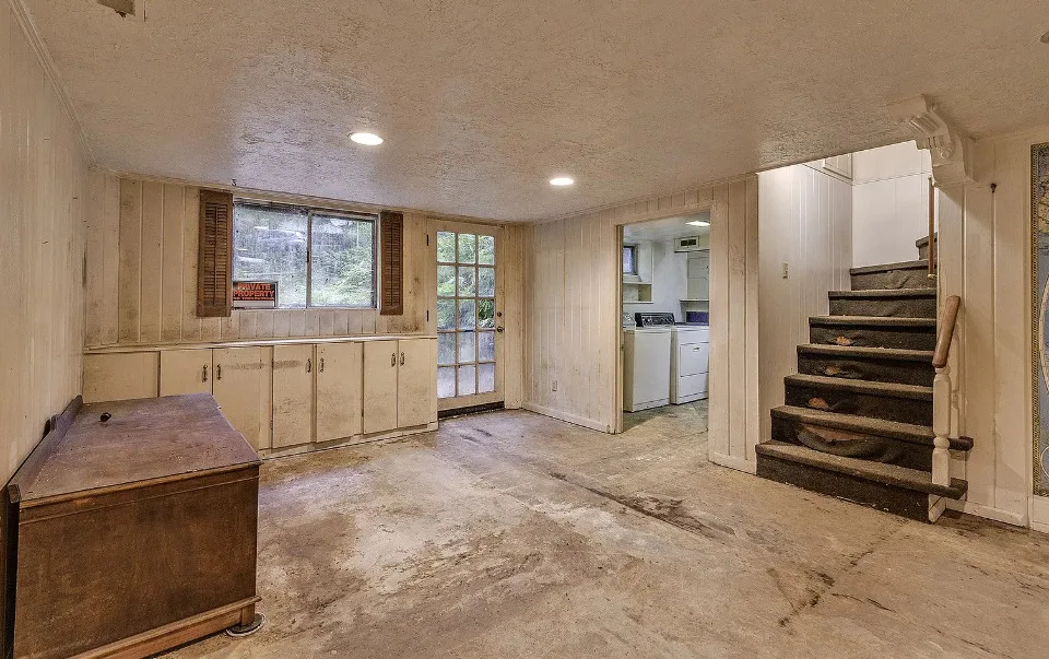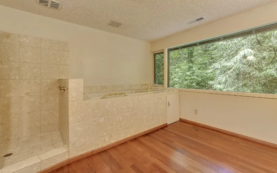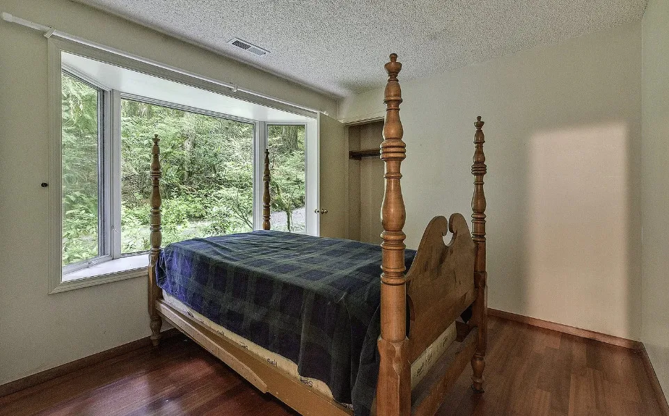 Take a look at that setting! Feel like you might see Bigfoot walking around in there. There is a guesthouse on the property. The house was built in 1940. It is located on 9.39 acres in Portland, Oregon. The house features a great entryway with soaring ceilings and a wall of windows, parquet flooring, built-in bookshelves, stone fireplace and a spacious kitchen. There is a large basement. The guesthouse has two bedrooms and one bathroom. Four bedrooms, two bathrooms and 2,958 square feet. $899,000
