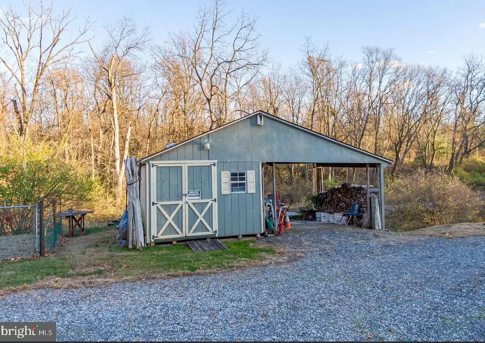 Completely Remodeled Schoolhouse on 1.45 Acres! Step into timeless charm with this beautifully renovated stone home, offering wide-plank hardwood floors and soaring ceilings throughout. The spacious living room is a true showstopper, featuring a cathedral ceiling with exposed wood beams, a cozy wood stove, and elegant wainscoting—perfect for gatherings and relaxation. The farmhouse-style kitchen is a chef’s dream, boasting a stunning tin ceiling, custom refrigerator, glass-front upper cabinets, and abundant natural light. A generous pantry provides ample storage, and the inviting breakfast nook is ideal for family meals. Also there is an island, 2nd sink, range and microwave. The main floor full bath offers a tin ceiling and corner shower. Upstairs, a graceful staircase leads to a bright and airy upper level with hardwood flooring, fireplace and plenty of space. The sunroom provides additional living space and could be a 2nd bedroom and has arched windows. Outside, enjoy multiple outbuildings, a carport, and a large deck designed for outdoor entertaining. Unique architectural details like arched and stained-glass windows add character, while owned solar panels offer energy efficiency. The additional lot (.80 acres) is buildable. This one-of-a-kind cottage blends historic charm with modern convenience—ready for its new owners to make it home!