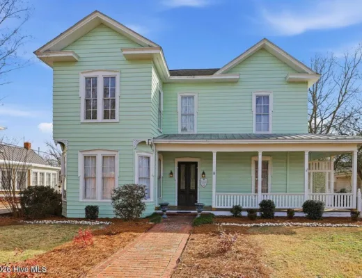 This house has such a pretty setting! It’s in a beautiful area of Virginia. They have a build date of 1940, but it is 1897.  It is located on 5.39 acres in Hillsville, Virginia. The house features a covered front porch, original wood floors, nice fireplaces, pretty staircase and baseboards. There are six fireplaces and five have been sealed and are ready for gas logs. Five bedrooms, two bathrooms and 2,268 square feet. $339,000