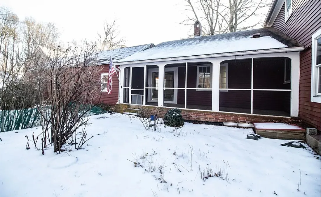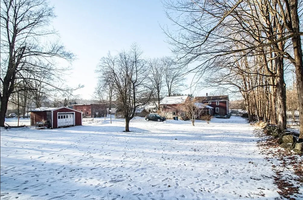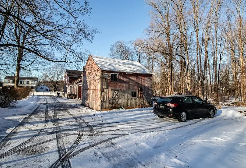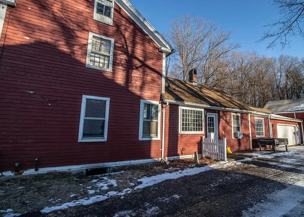 Watch the video! This historic home is tied to Belchertown’s 19th century carriage industry. Known as the Park Holland House, its first owner was an owner of the Belchertown Carriage Manufactory. This section of town was also where first carriage making shops were located, thereby making the site the first commercial center in town. This Federal Style home has the typical features of the period, like 12 over 12 double-hung windows, a front entry is framed by a tuscan pilasters and a transom, period colors, and wide-plank floors. The home has 3 bedrooms and two bathrooms, with an attached two-car garage and barn attached to the rear of the house. The parlor room has been painted with a period color and has a coffered ceiling. The dine-in country kitchen has a wood stove, exposed beams, and ample cabinet and counter space. Off the kitchen is a spacious room with a newer slider to an enclosed porch with a brick floor overlooking a garden area. There is also a spacious backyard