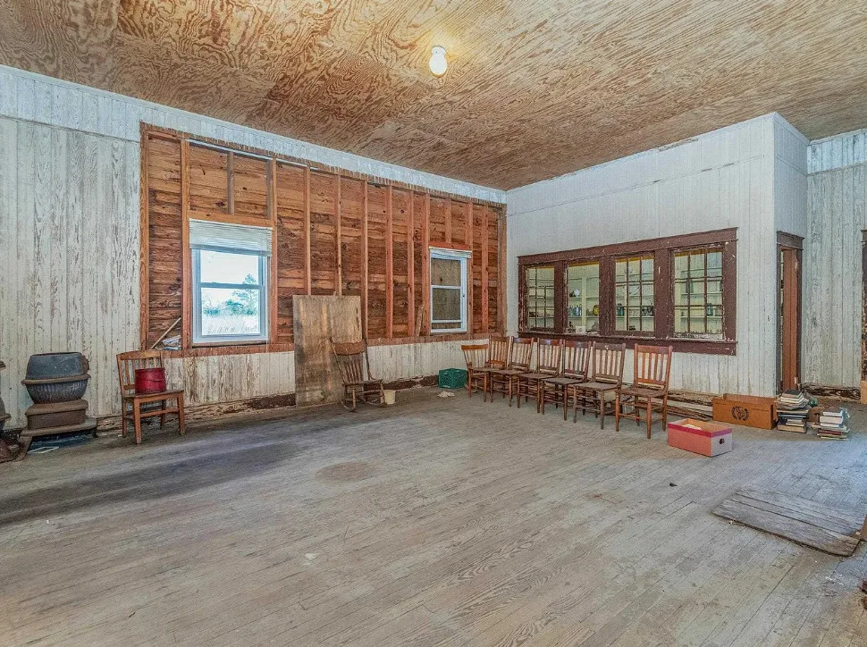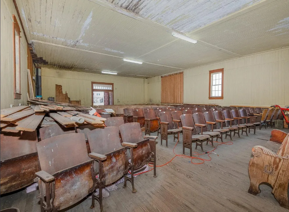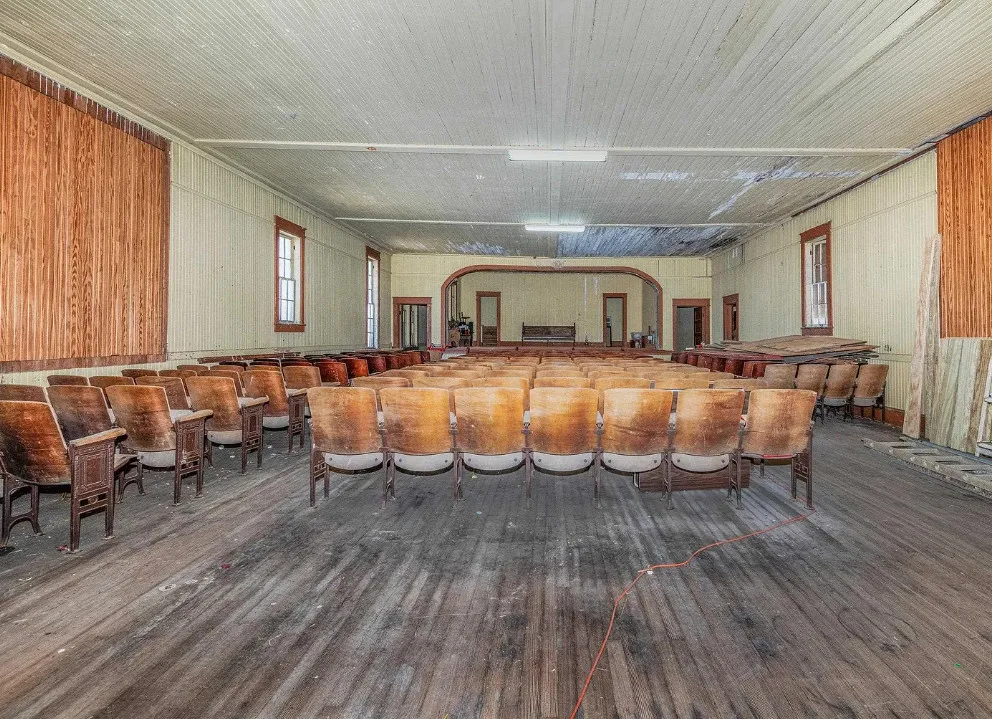 Interesting property! This former school is only 30 minutes from Nags Head! I love how it has the original auditorium with stage and the original seating! There are lots of possibilities with this property. The school was built in 1930. It is located on 2.75 acres in Stumpy Point, North Carolina. Close to the waterfront and local boat launch. The interior could definitely use some updating, but I hope a new owner figures out a creative use for the stage without messing it up. The vintage slide is pretty cool! Three bedrooms, two bathrooms and 1,168 square feet. $375,000