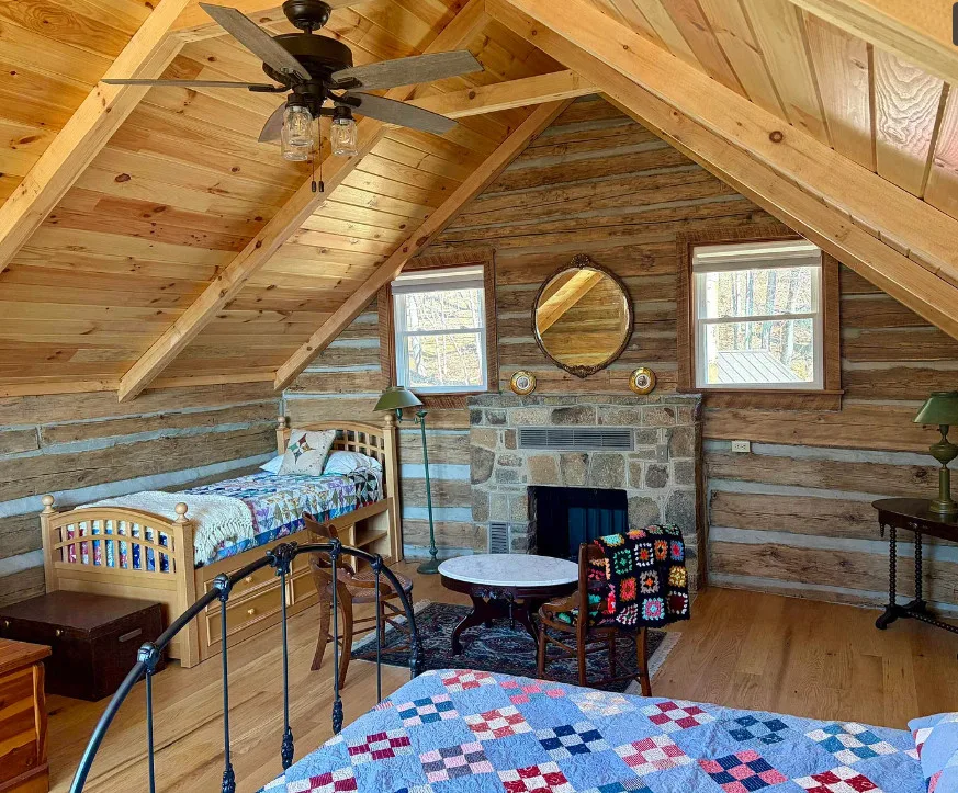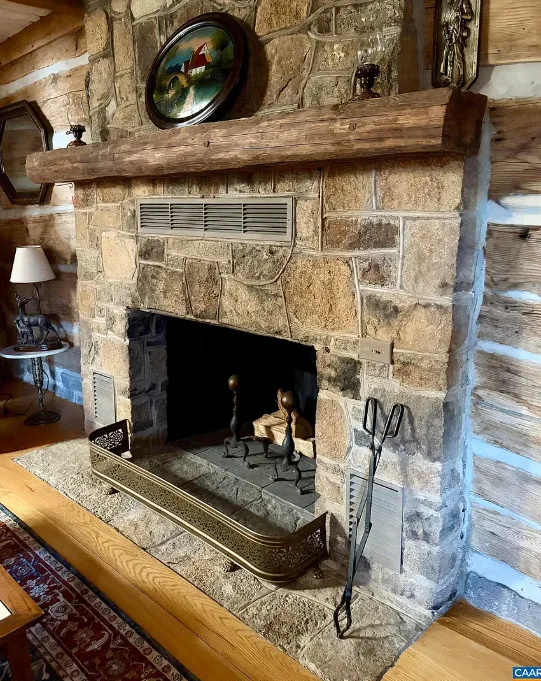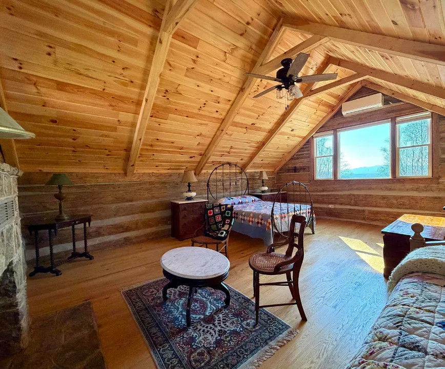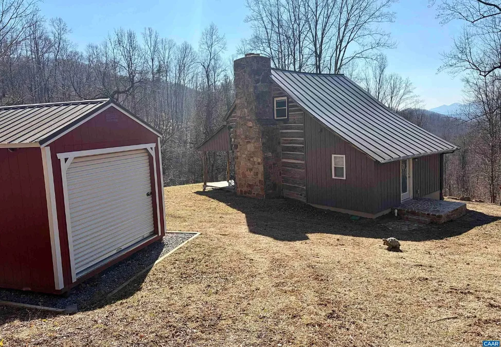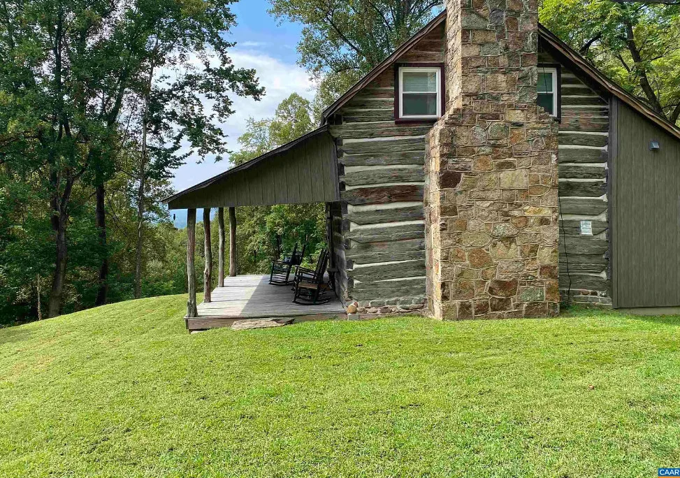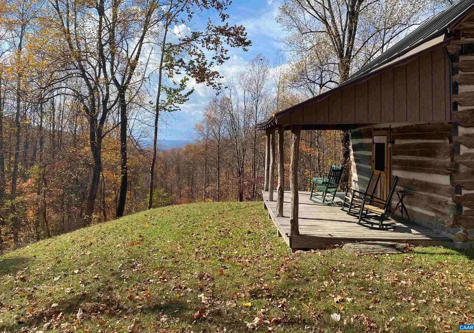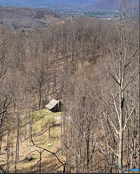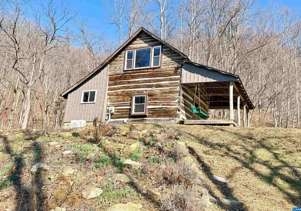 Tucked away atop Tobacco Row Mountain, this extraordinary 96.78-acre mountain retreat features a beautifully restored circa 1838 log cabin and an adjacent but separate tax parcel of 11+ acres ( being part of the 96.78 acres) with driveway to CLEARED mountaintop homesite, over 2000 ft. elevation, with well/septic and stunning 360 degree views. The 1.5-story historic cabin showcases hand-hewn V-notch logs, two wood-burning stone fireplaces, yellow pine tongue-and-groove ceilings, solid oak floors, American chestnut logs and details, and all new windows. THE CABIN HAS FIREFLY HIGH SPEED FIBER INTERNET!!! The fully rebuilt kitchen & bath (2025) include custom rustic ash cabinetry, chestnut wood shelving, new appliances, custom tile, and stone accents straight from the nearby James River. Major upgrades include new 200-amp service, updated plumbing & electrical, two mini-splits, new pressure tank & hot water heater. Spring-fed water system with 1,175-gallon gravity-fed tank. Septic permitted for 2BR. Mostly wooded acreage with trails, streams, springs, cleared meadow, and a 12×28 storage barn. Ideal weekend retreat, recreational haven, including future homesite with a spectacular panoramic view!!!