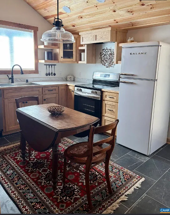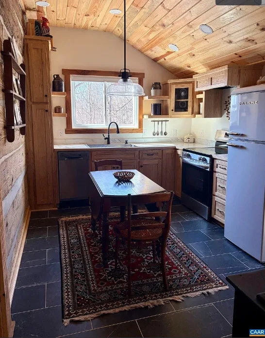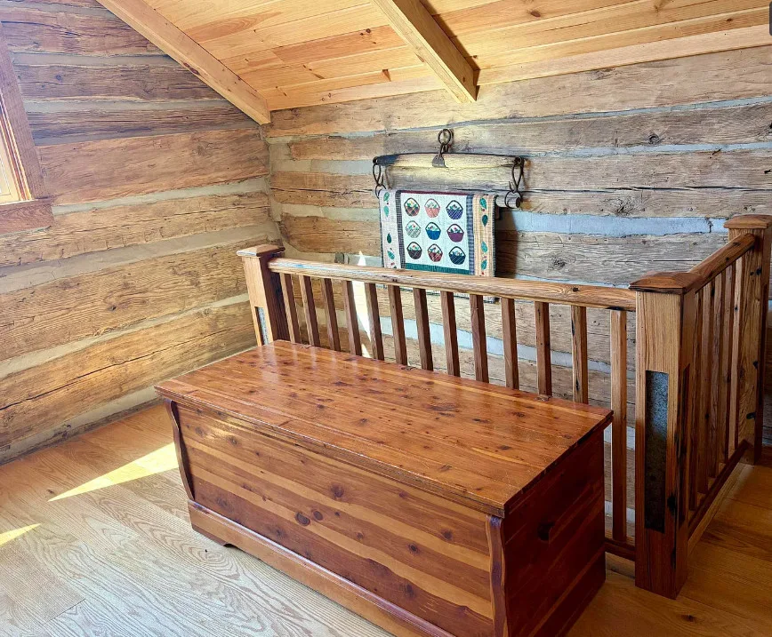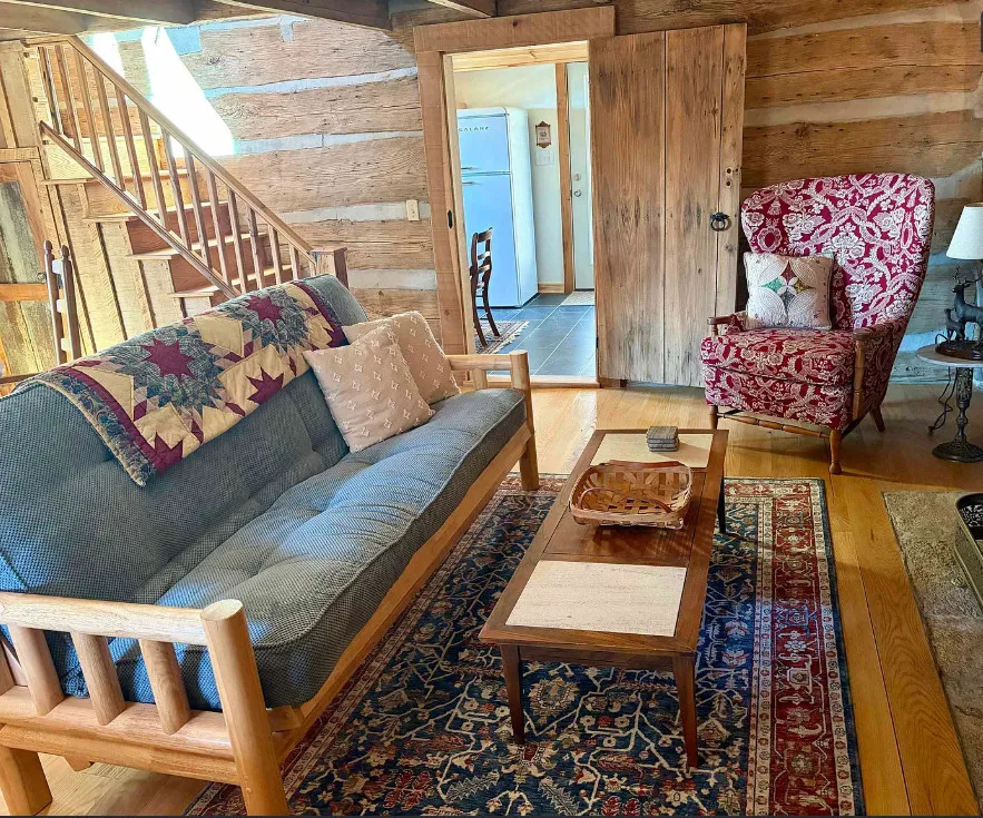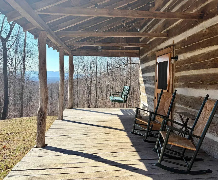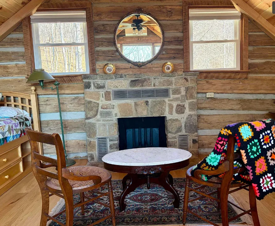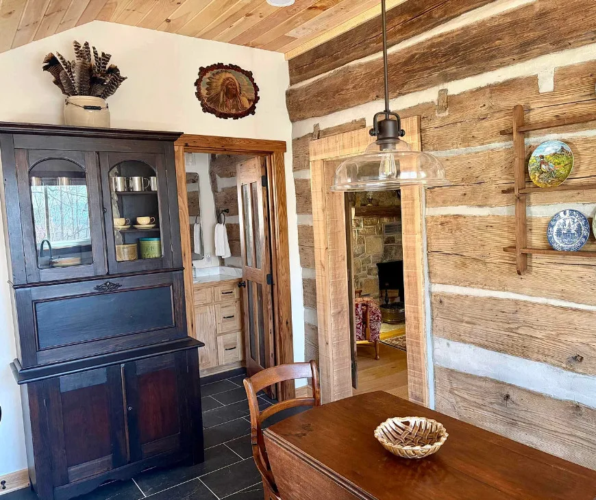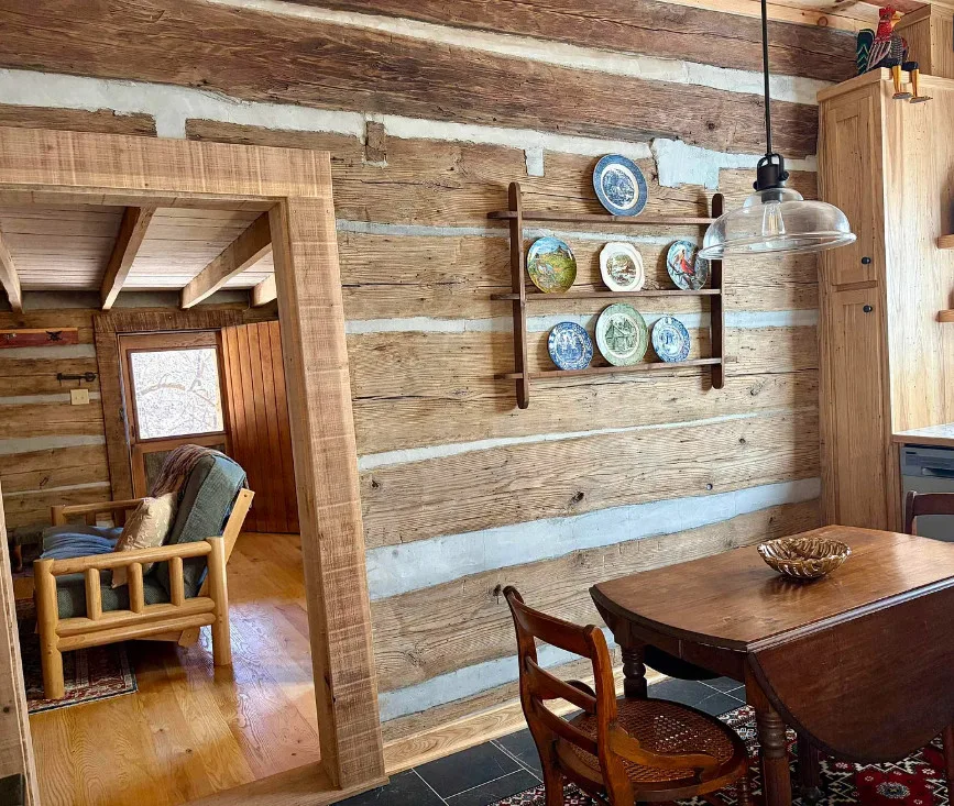Tucked away atop Tobacco Row Mountain, this extraordinary 96.78-acre mountain retreat features a beautifully restored circa 1838 log cabin and an adjacent but separate tax parcel of 11+ acres ( being part of the 96.78 acres) with driveway to CLEARED mountaintop homesite, over 2000 ft. elevation, with well/septic and stunning 360 degree views. The 1.5-story historic cabin showcases hand-hewn V-notch logs, two wood-burning stone fireplaces, yellow pine tongue-and-groove ceilings, solid oak floors, American chestnut logs and details, and all new windows. THE CABIN HAS FIREFLY HIGH SPEED FIBER INTERNET!!! The fully rebuilt kitchen & bath (2025) include custom rustic ash cabinetry, chestnut wood shelving, new appliances, custom tile, and stone accents straight from the nearby James River. Major upgrades include new 200-amp service, updated plumbing & electrical, two mini-splits, new pressure tank & hot water heater. Spring-fed water system with 1,175-gallon gravity-fed tank. Septic permitted for 2BR. Mostly wooded acreage with trails, streams, springs, cleared meadow, and a 12×28 storage barn. Ideal weekend retreat, recreational haven, including future homesite with a spectacular panoramic view!!!