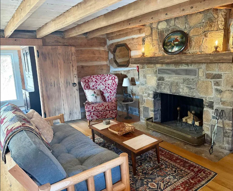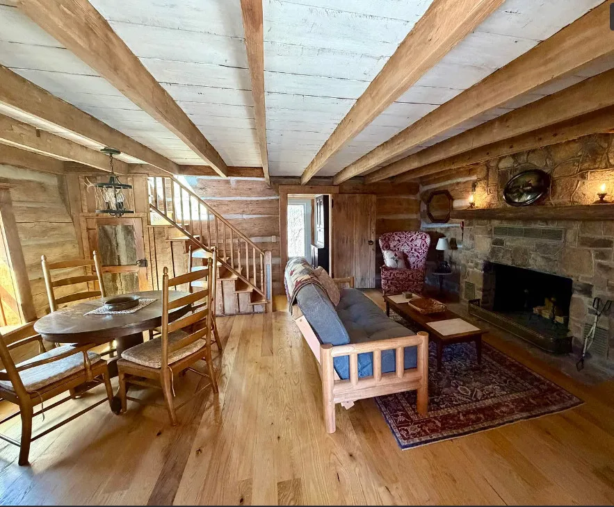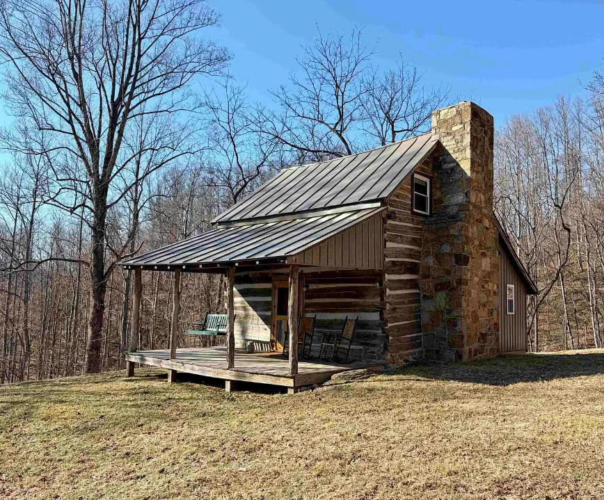 This is perfection! I am in love with the setting, the acreage and the cabin! This cabin was built in 1838. It is located on 96.78 acres in Monroe, Virginia. The house features a covered front porch, stone fireplace, wood floors, log walls, large stone chimney and a cute kitchen. There is a detached storage shed on the property. One bedroom, one bathroom and 762 square feet. $649,000