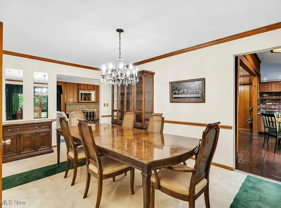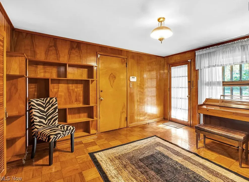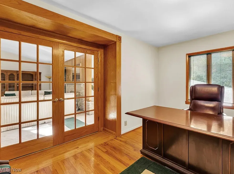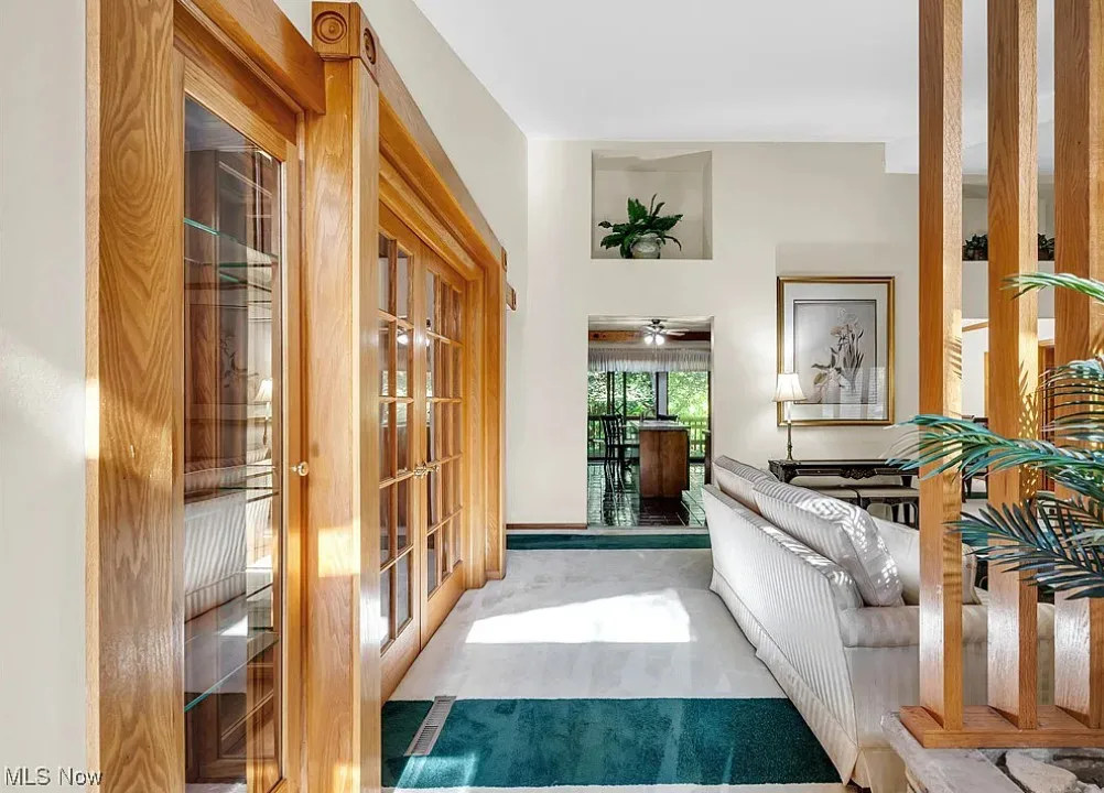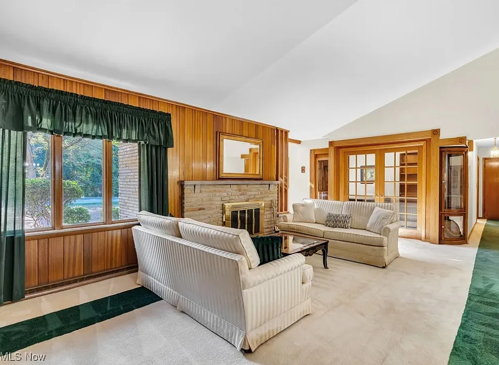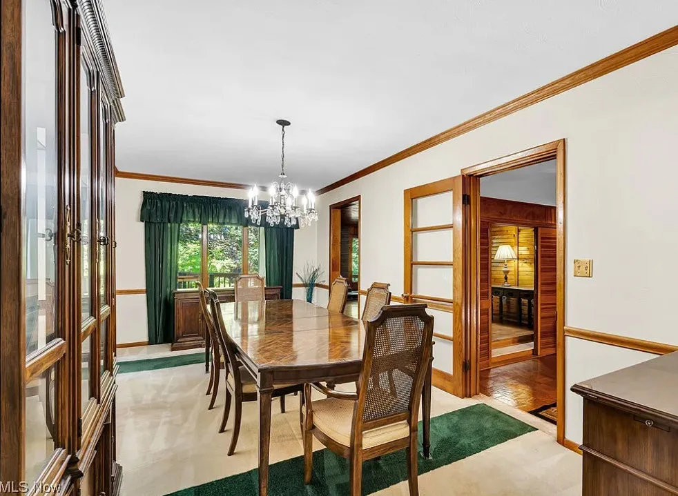 This house has a nice interior! There are pretty details! The house was built in 1955. It is located on .81 acre in Hubbard, Ohio. The house features a covered front porch, a lot of natural light, pretty windows, tile entryway, built-in bookshelves, french doors, crown moulding, chair rails, knotty pine and a spacious kitchen. Three bedrooms, three bathrooms and 3,808 square feet. $299,900