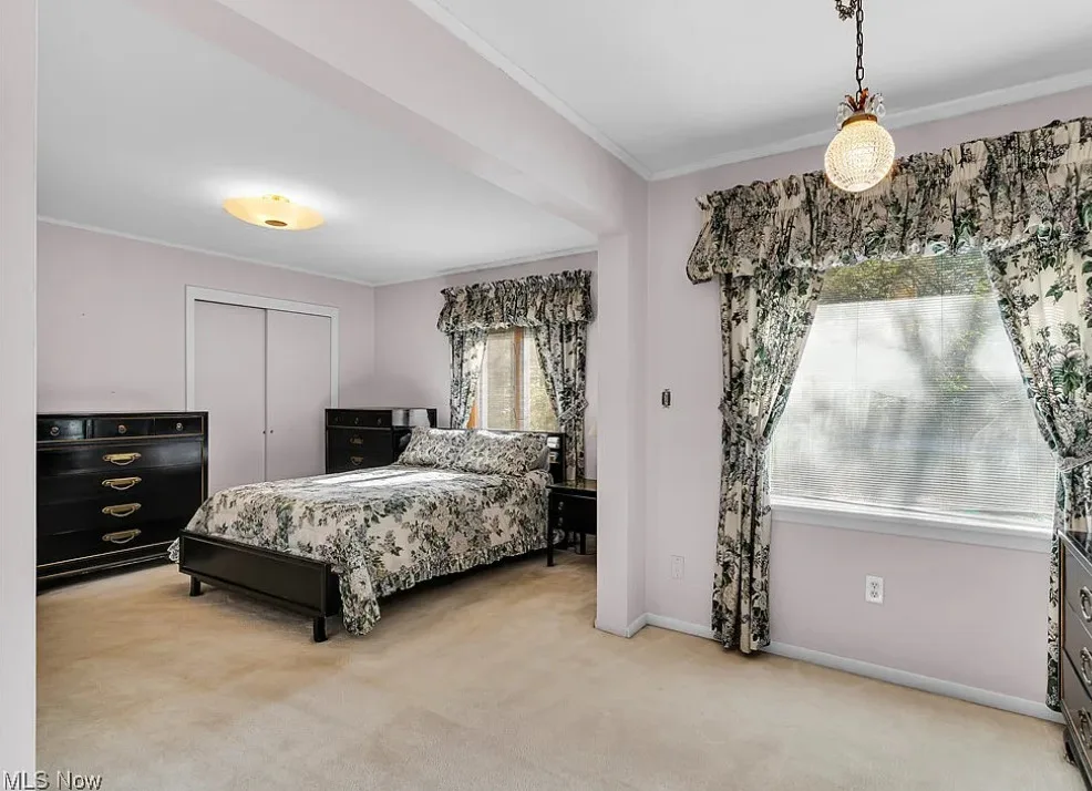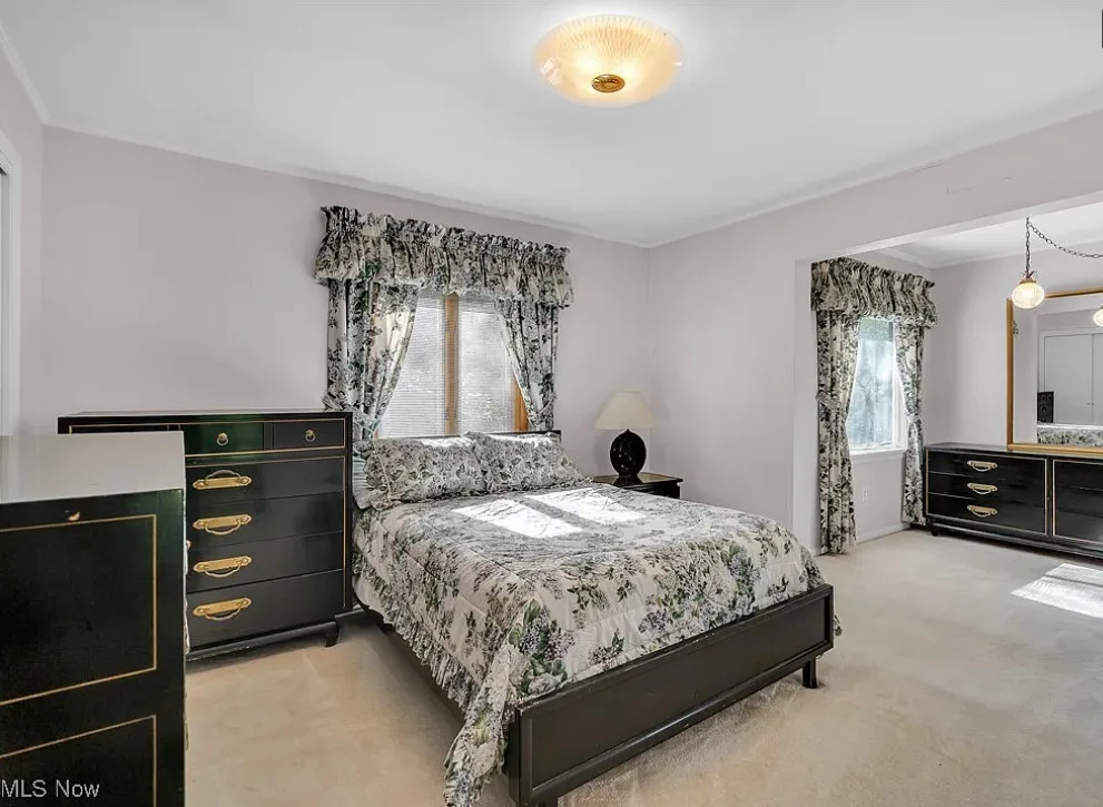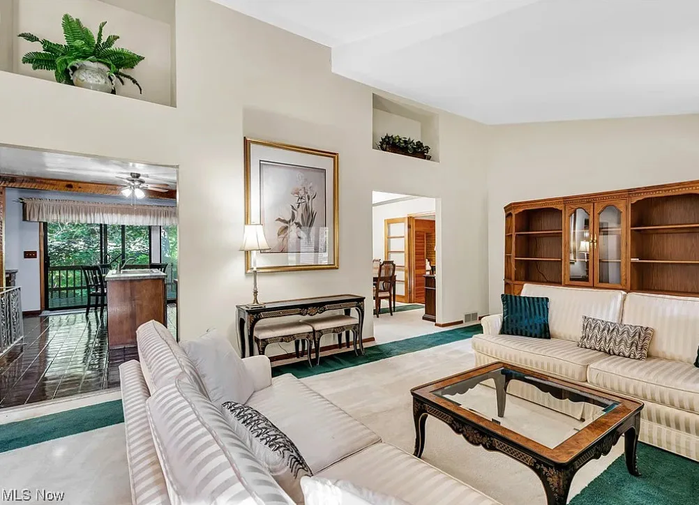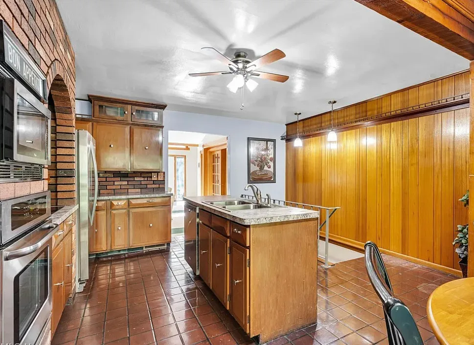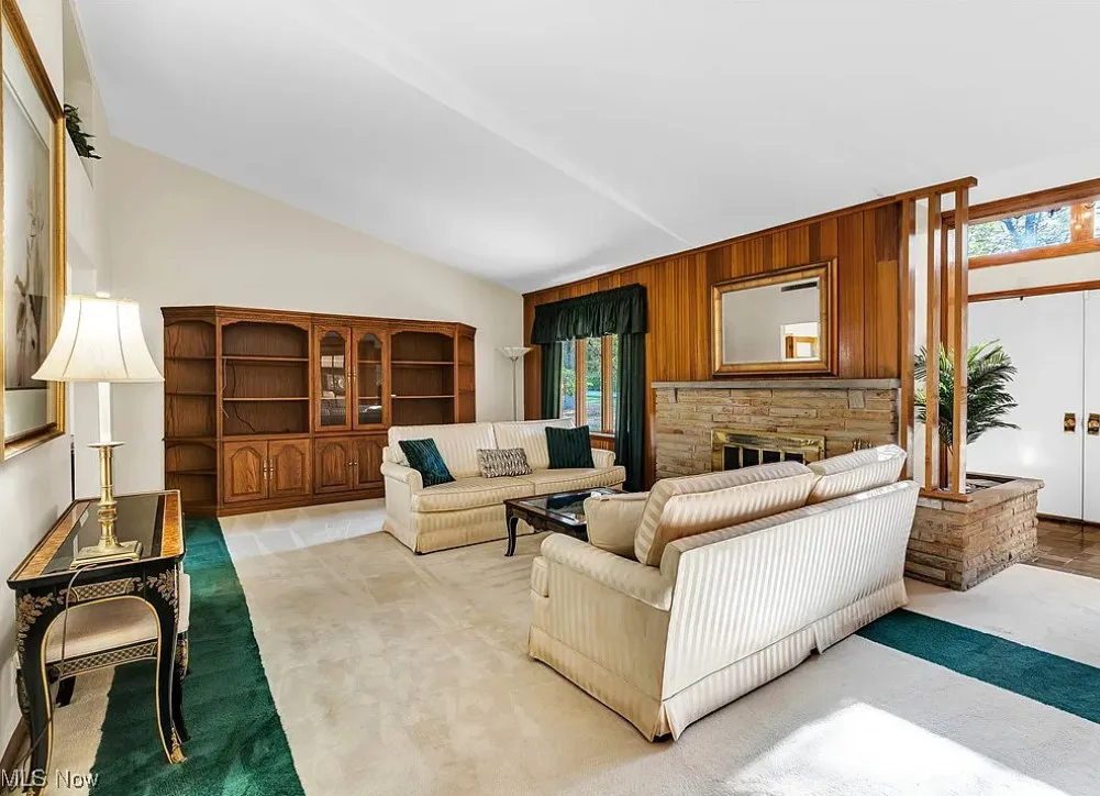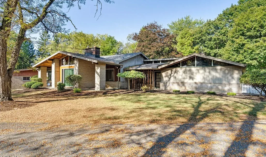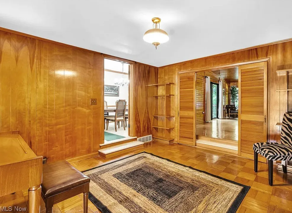 This house has a nice interior! There are pretty details! The house was built in 1955. It is located on .81 acre in Hubbard, Ohio. The house features a covered front porch, a lot of natural light, pretty windows, tile entryway, built-in bookshelves, french doors, crown moulding, chair rails, knotty pine and a spacious kitchen. Three bedrooms, three bathrooms and 3,808 square feet. $299,900