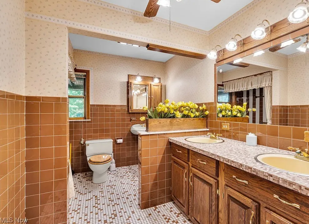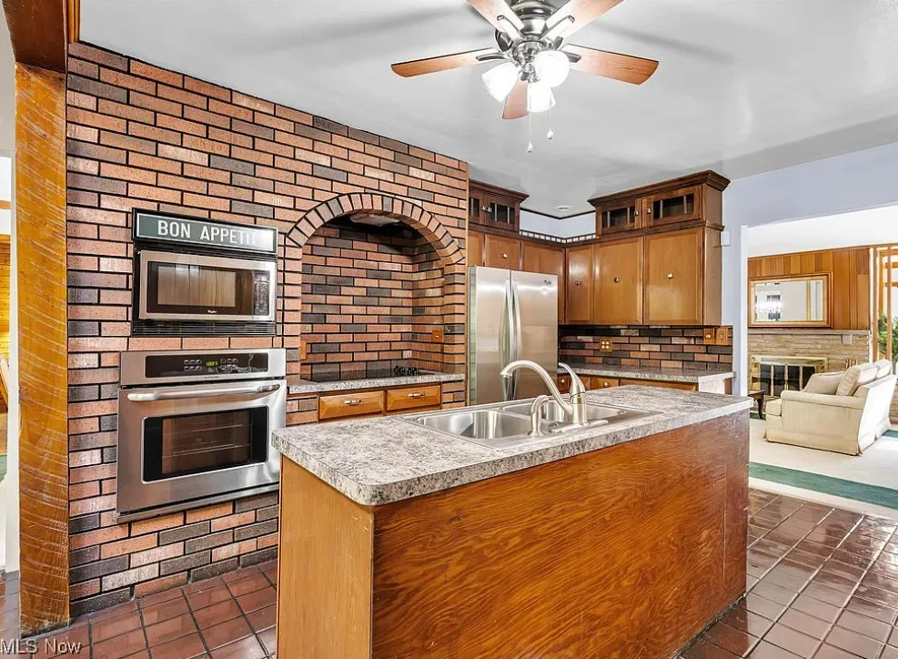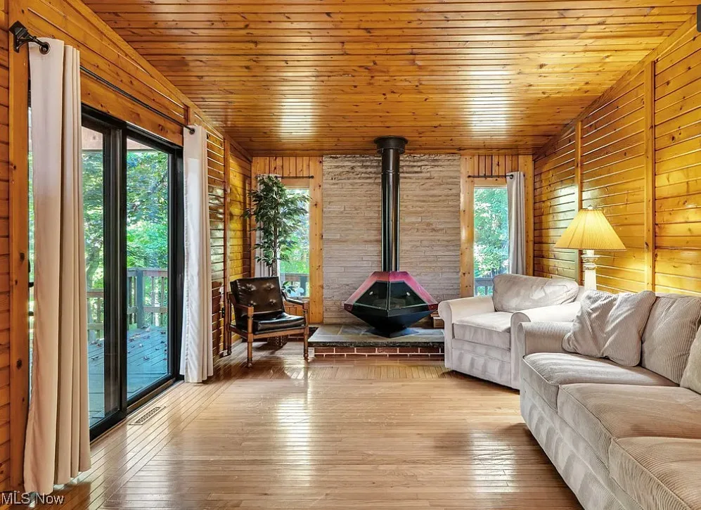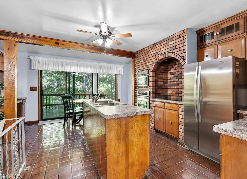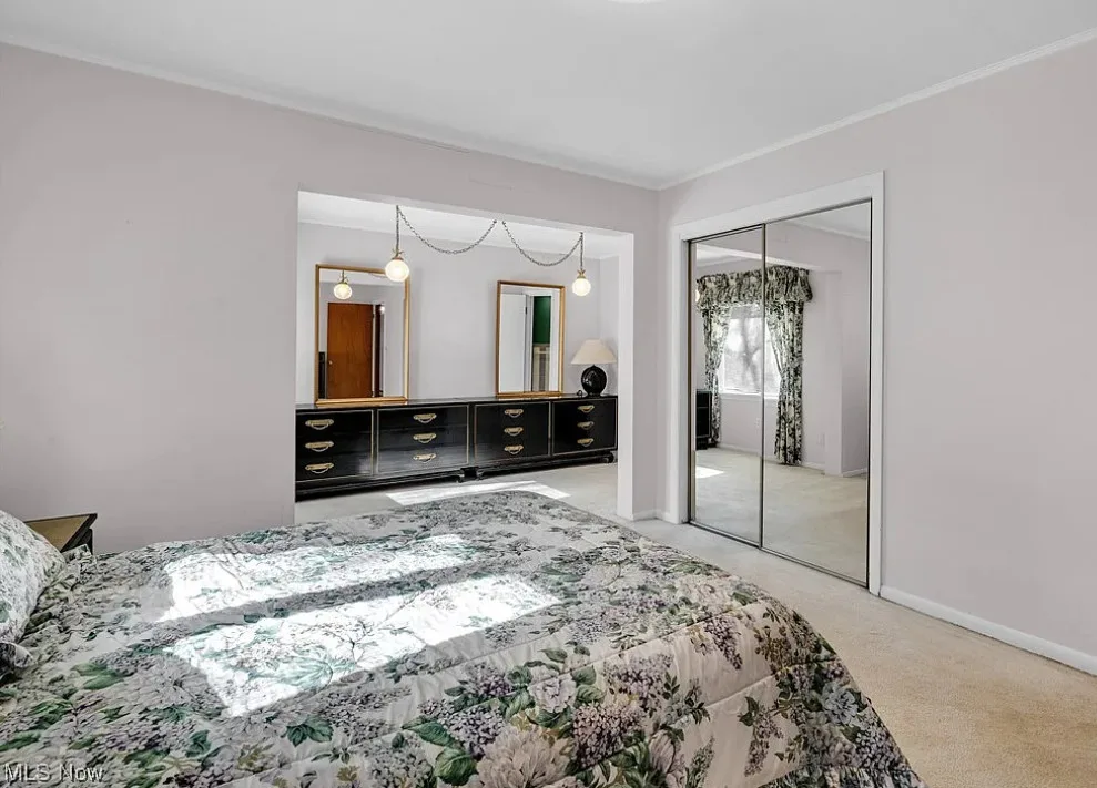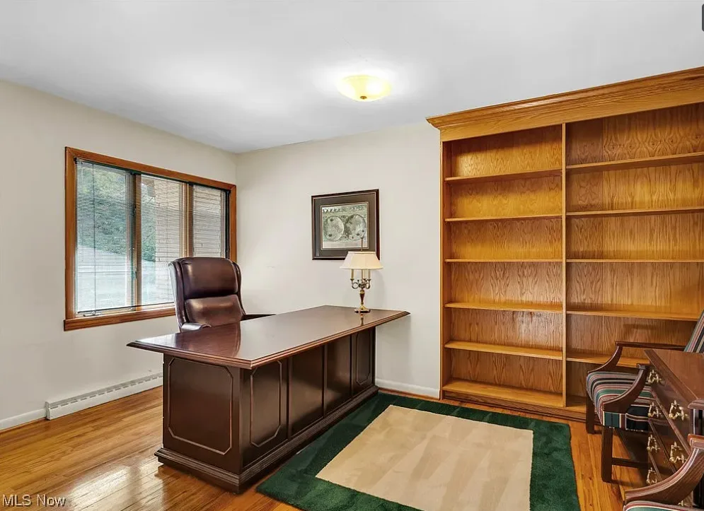 This house has a nice interior! There are pretty details! The house was built in 1955. It is located on .81 acre in Hubbard, Ohio. The house features a covered front porch, a lot of natural light, pretty windows, tile entryway, built-in bookshelves, french doors, crown moulding, chair rails, knotty pine and a spacious kitchen. Three bedrooms, three bathrooms and 3,808 square feet. $299,900