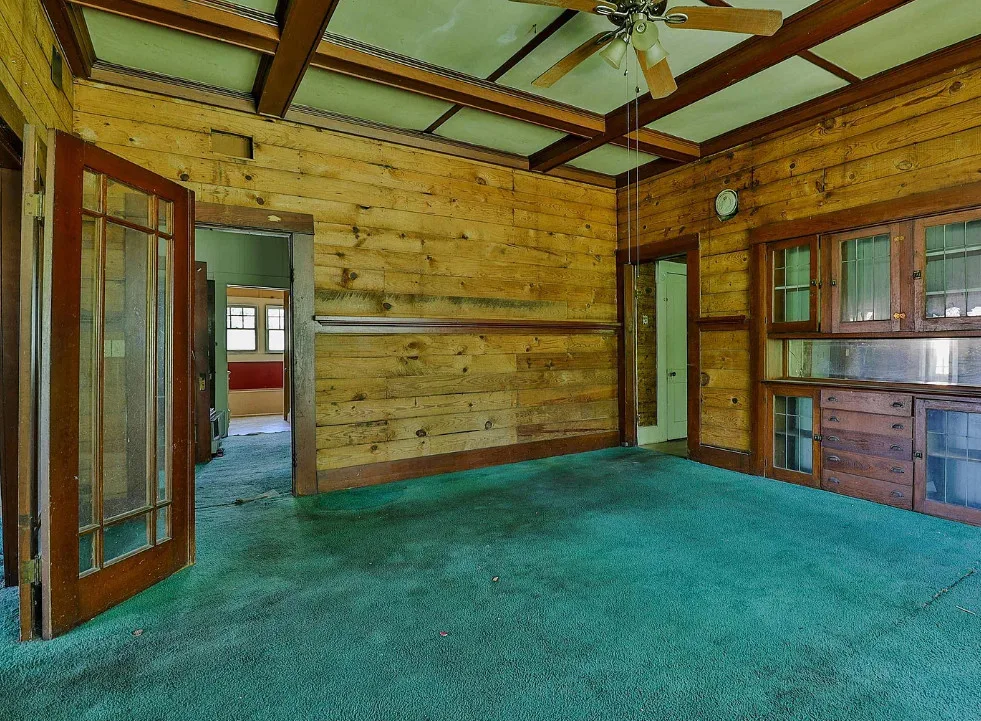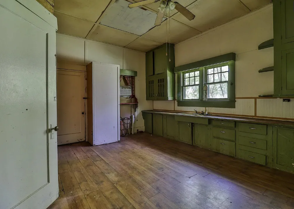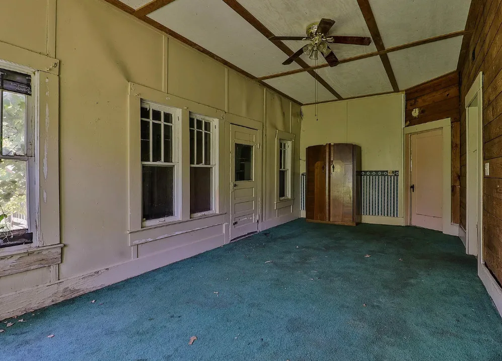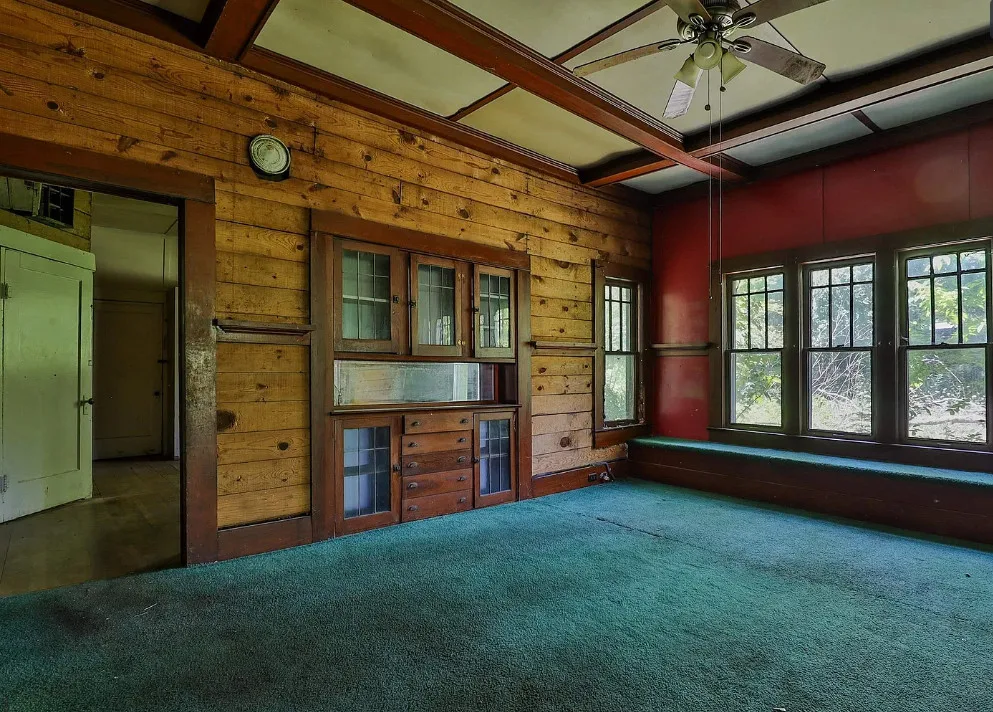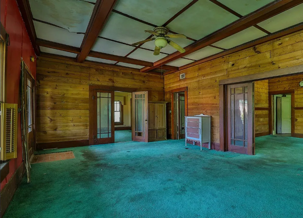 Fixer upper alert! This has some nice features. I believe there are wood floors underneath the carpeting. The house was built in 1912. It is located on one acre in Grand Saline, Texas. The house features a covered front porch, coffered ceilings, wood floors underneath carpeting, spacious kitchen and a sunroom. There is a back deck and a lot of mature trees. Four bedrooms, two bathrooms and 2,542 square feet. $115,000