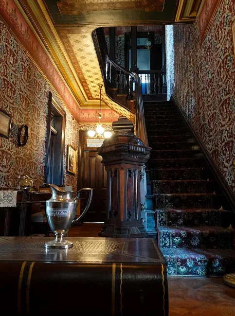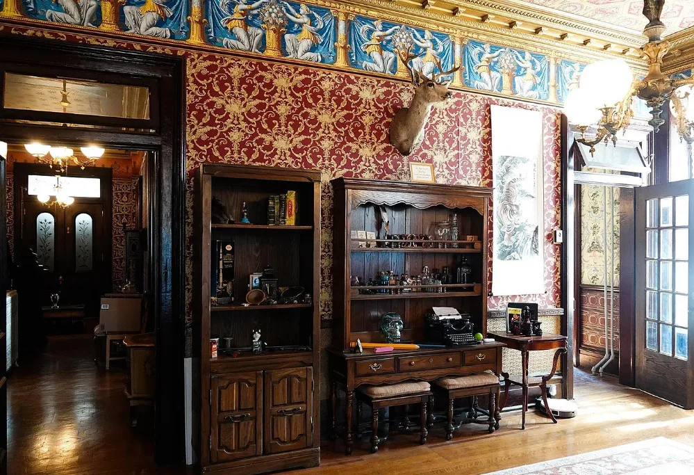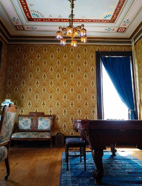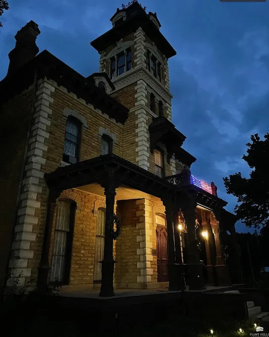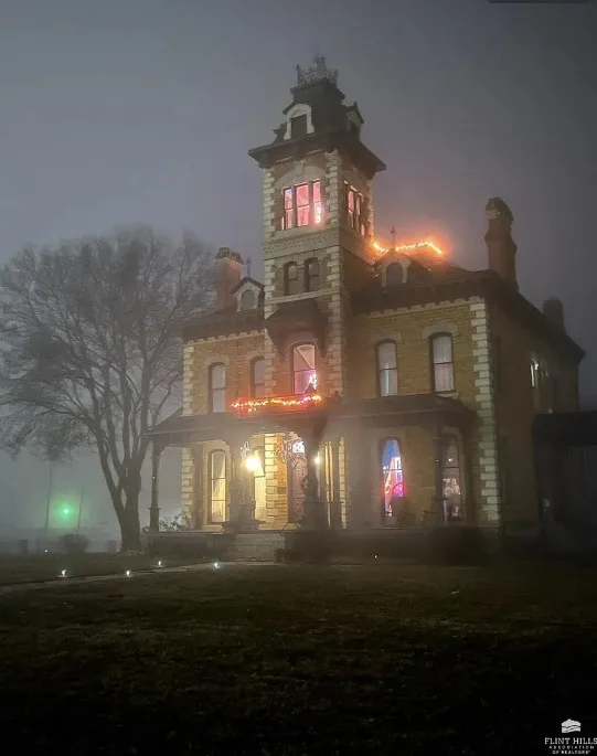 Leaving CA or NY? This 23-room fully furnished Victorian mansion in friendly, low-crime Abilene, Kansas is a bargain! Filled with charm & history on .9 acres with 10,105 sf of living space and a wrought iron perimeter fence, this home features a secret bookcase door leading to a 23-seat Victorian style basement theater and lobby and the original settler’s stone dugout, oversize claw foot tub, plus a gorgeous tower, $750K of world-renowned wallpaper artistry, 6 bedrooms, 3 1/2 baths, and 3 garages. Suitable for privacy or a turn-key tourist attraction and event-hosting business. Small town-life is near larger cities, two regional airports, an international airport, and fine restaurants. A magnificent wooden staircase dominates the oversized foyer. Sale includes fiber optic WiFi and the mansion’s promotional Zimmer Golden Spirit auto. The home has hosted movie and photo shoots, unforgettable dinner parties, themed events, and various special celebrations. Visit https://leboldmansion.com