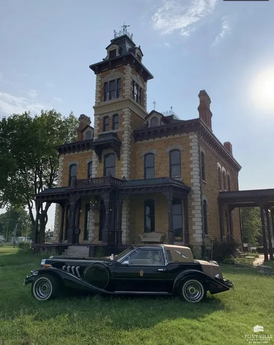 The car is included! This house is being sold fully furnished. There are some really pretty details inside and I love the basement theater! The house was built in 1880. It is located on .9 acre in Abilene, Kansas. The house features a covered front porch, grand staircase, stunning wallpaper, beautiful chandeliers, alcove with bay windows, wainscoting, tall ceilings, transom windows, gorgeous crown moulding, in-laid hardwood floors and a Victorian theater that seats 23 people. The Zimmer Golden Spirit auto is included! Six bedrooms, four bathrooms and 10,105 square feet. $1,500,000