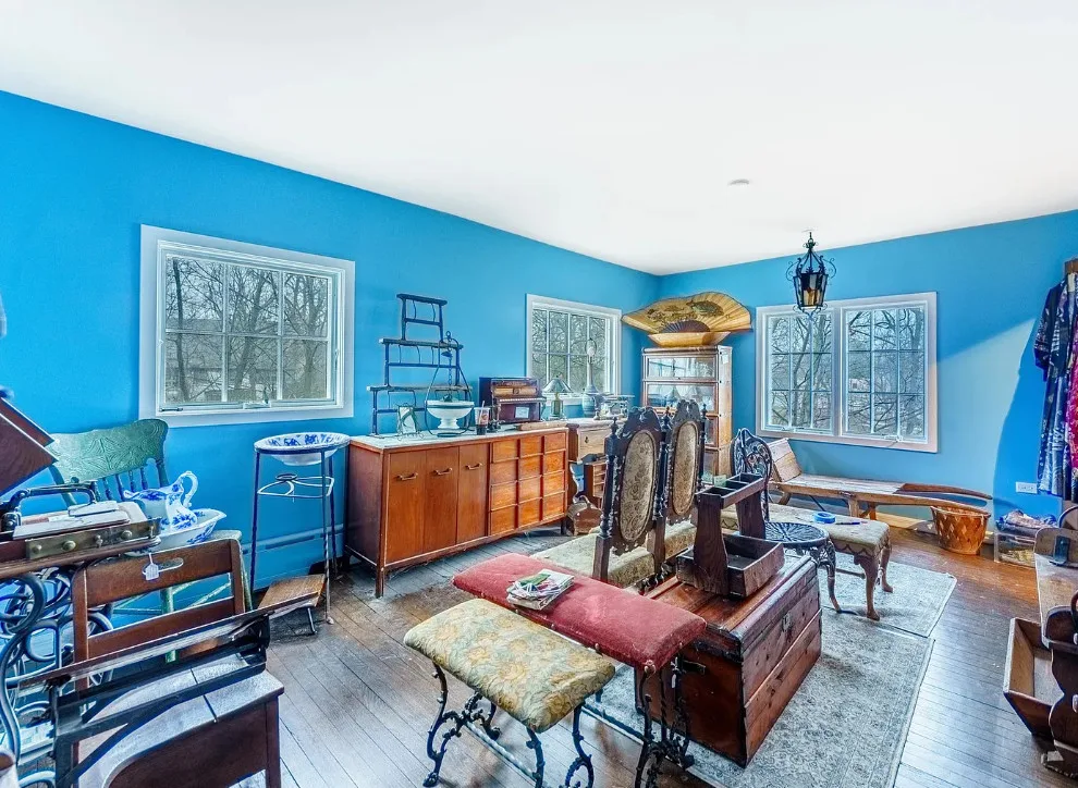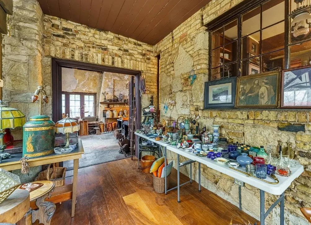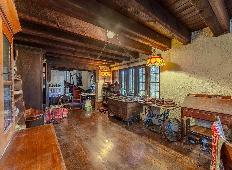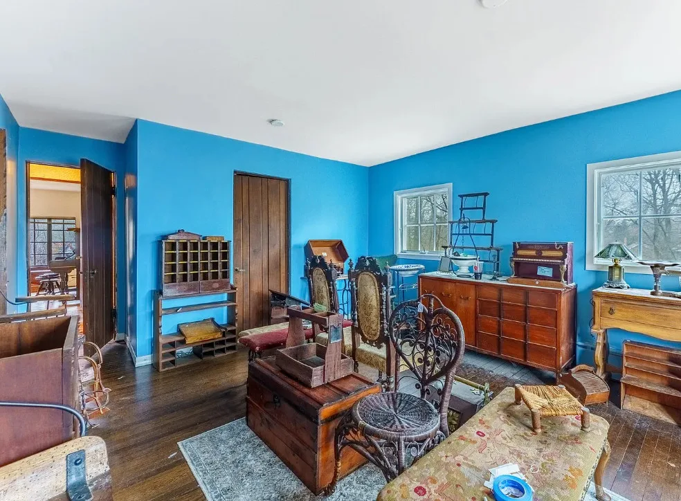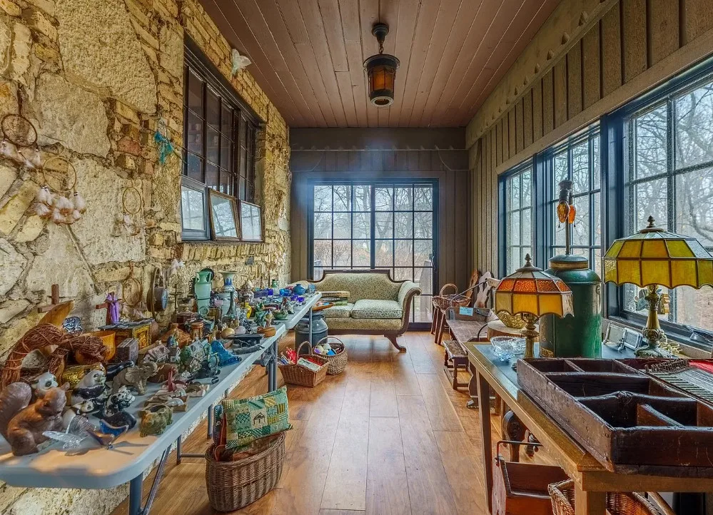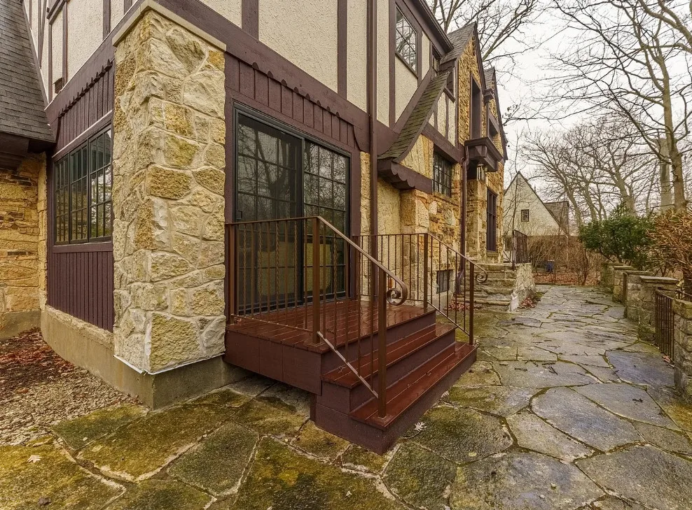 This house has some pretty details! I love stone houses! There is a lot going on inside. The house was built in 1928. It is located on .33 acre in Highland Park, Illinois. The house features a stone exterior, huge chimney, pretty ceiling, built-in bookshelves, stained glass and beautiful stonework on the terrace. There is an attached garage. The home was designed by Roscoe Harold Zook. Three bedrooms, four bathrooms and 2,588 square feet. $650,000