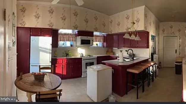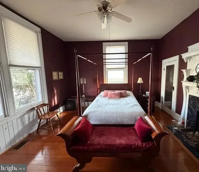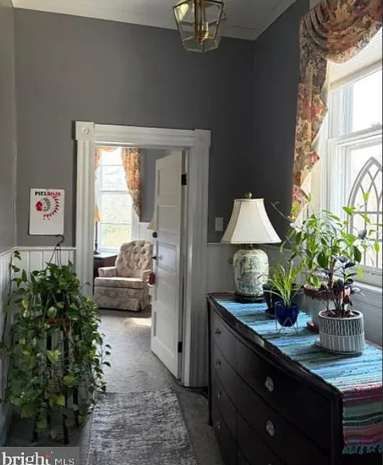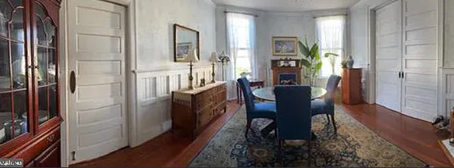 This house has a pretty interior! I love the foyer! The house was built in 1911. It is located on .41 acre in South Boston, Virginia. The house features a covered front porch, a large back deck, wood floors, wainscoting, crown moulding, wide baseboards, large pocket doors, original mantels and a spacious kitchen. Three bedrooms, two bathrooms and 2,464 square feet. $289,900