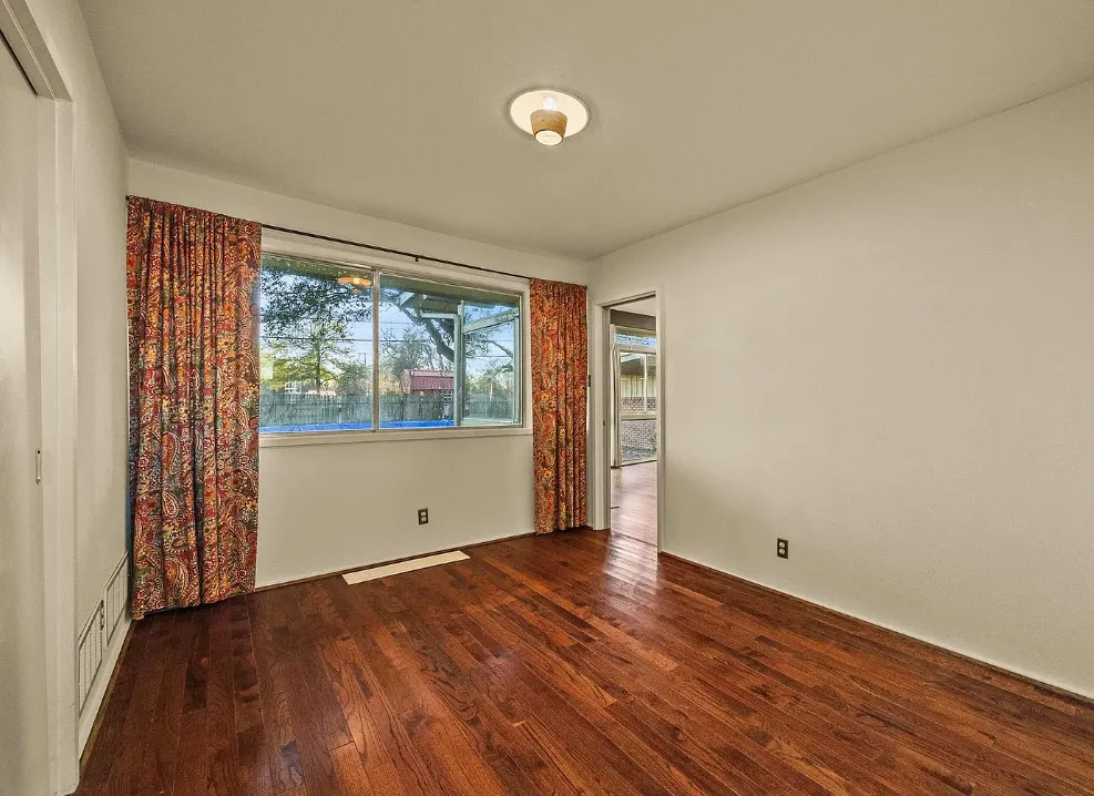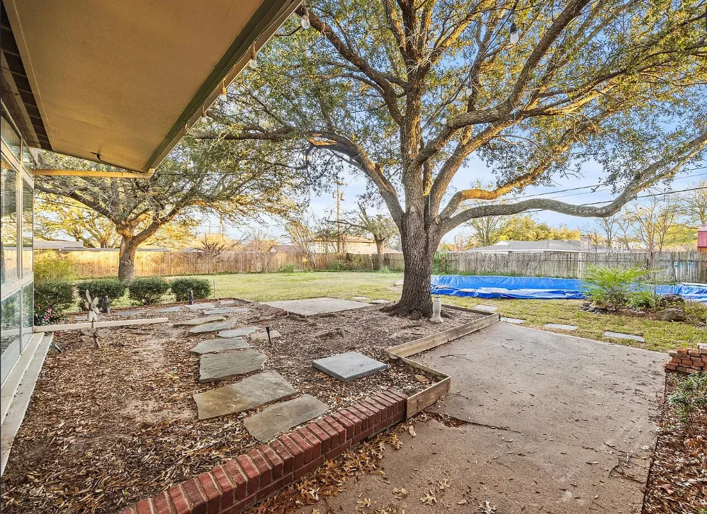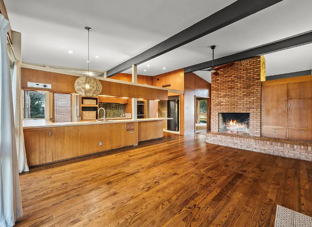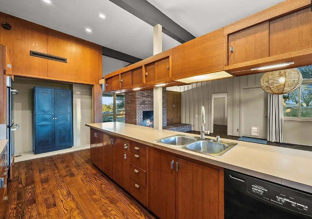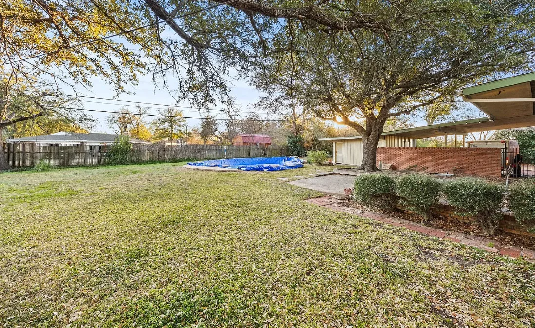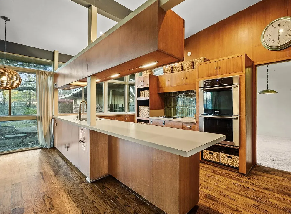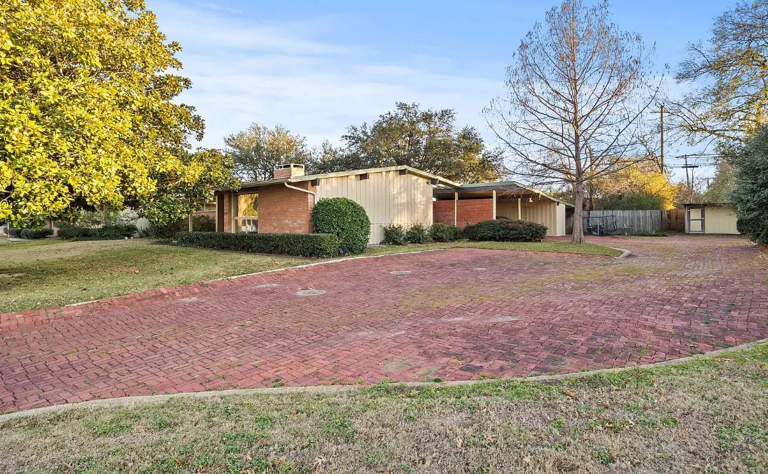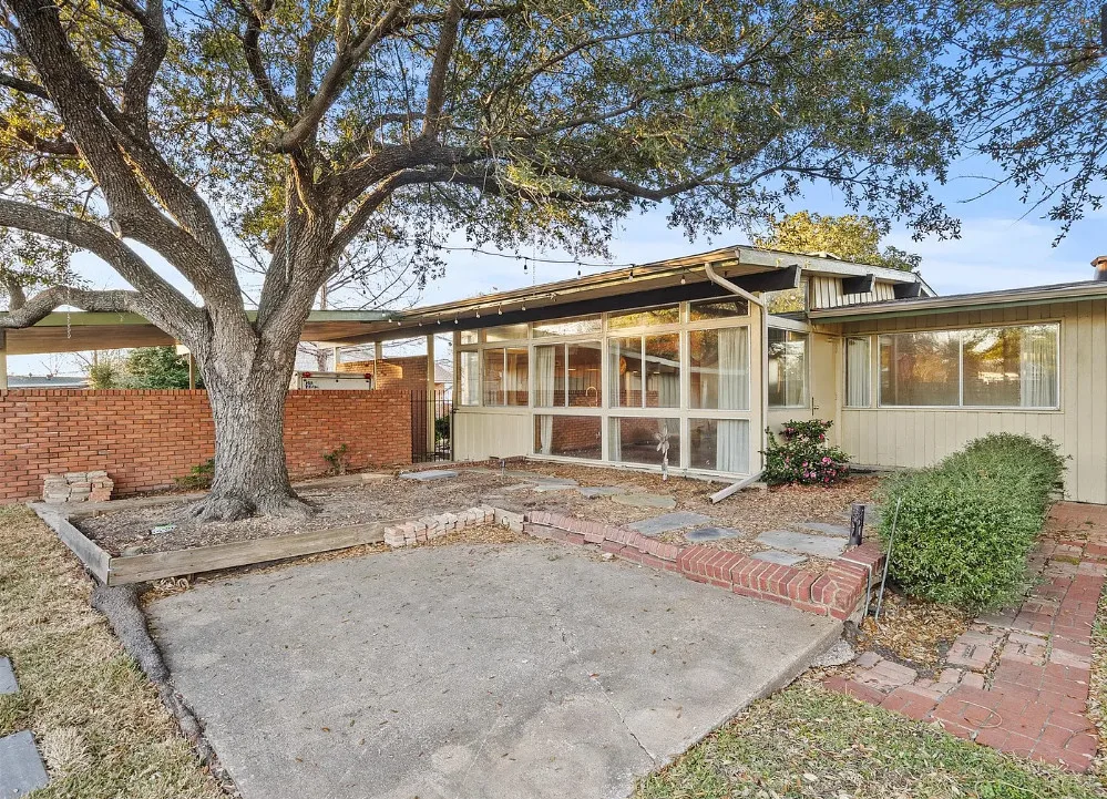 A true mid-century modern gem, this thoughtfully designed home showcases the iconic architectural elements that define the era—clean lines, open-concept living and a strong connection to nature—all set on a generous oversized lot, just under one-half of an acre. Expansive floor-to-ceiling, picture and clerestory windows invite abundant natural light throughout, highlighting the home’s warm materials and airy layout. The flexible floor plan offers four well-proportioned bedrooms and two full baths, ideal for modern living while preserving the home’s original character. Mid-century features such as built-in cabinetry, brick walls at and in great room, hardwood floors, abundant storage, wide hallway, and functional design create a balance of form and function. Living spaces are designed for effortless flow, perfect for both relaxed daily living and entertaining. The kitchen and hallway cabinetry emphasize efficiency and smart storage—hallmarks of mid-century design. Kitchen features smooth cooktop, double ovens, generous storage and countertop space. A covered carport enhances the home’s architectural appeal, while the separate utility room with pool bath and adjacent pool equipment room provides endless opportunities and versatility. The expansive yard is perfect for outdoor living, gardening, or future enhancements, complete with a storage shed for tools and equipment. Timeless, functional, and filled with natural light, this mid-century modern home offers a rare opportunity to own a piece of architectural history—beautifully suited for today’s lifestyle. This home is an as-is purchase. Pool on the property needs repair.