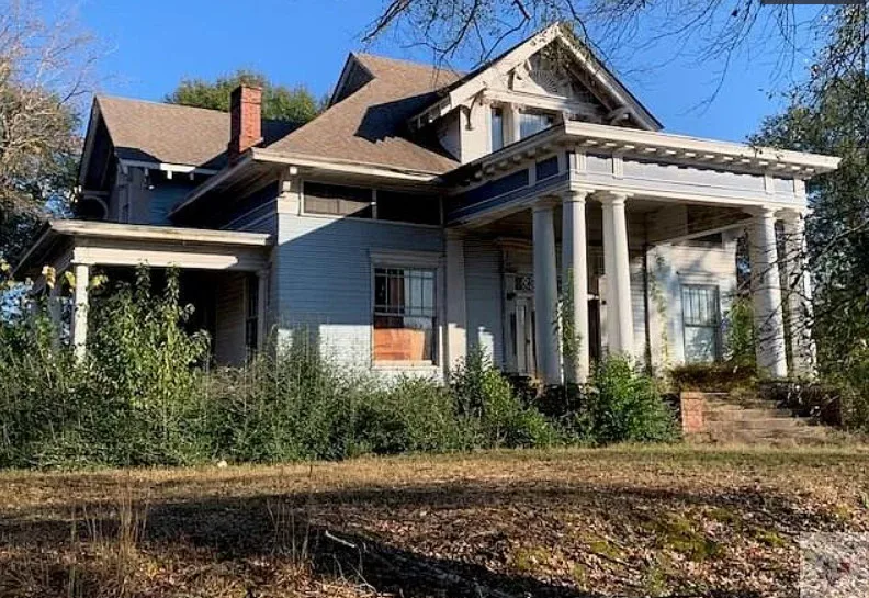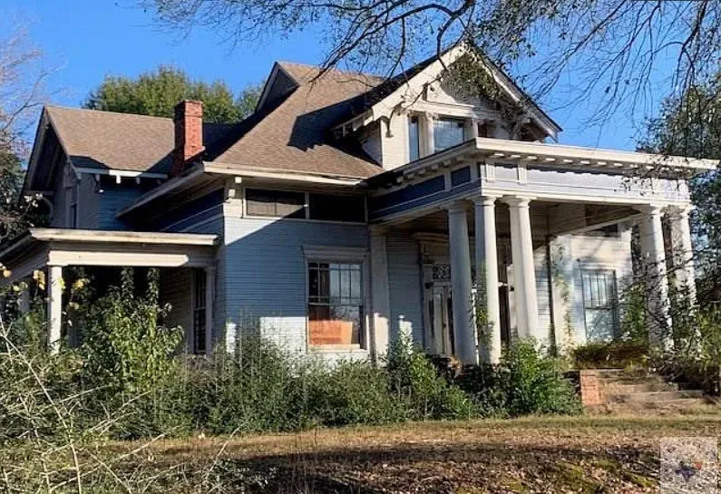 This is definitely a fixer upper, but I see potential there! The house was built in 1900. It is located on .63 acre in Texarkana, Arkansas. The house features two covered porches, original wood floors, leaded glass, grand staircase, baseboards, pocket doors, coffered ceiling and built-in bookshelves. Three bedrooms, two bathrooms and 3,453 square feet. $149,900