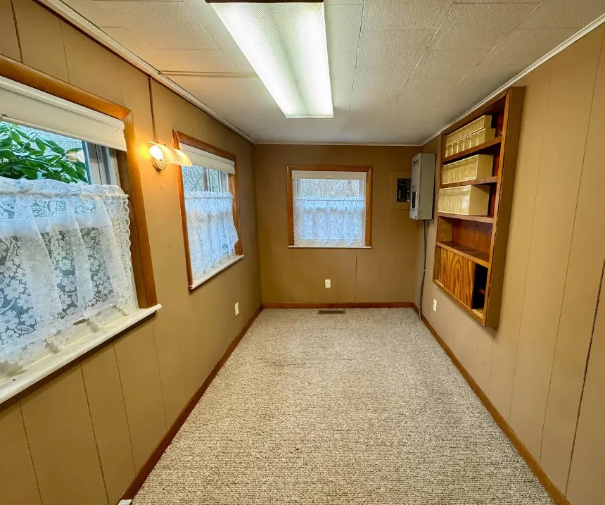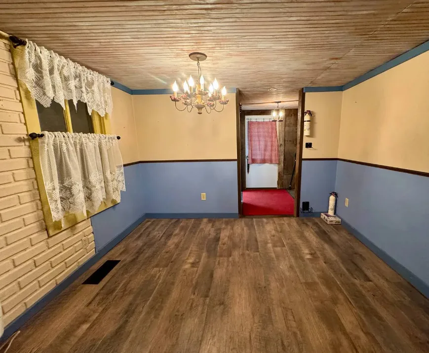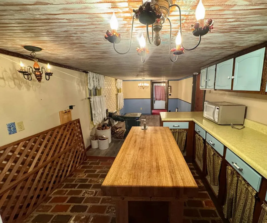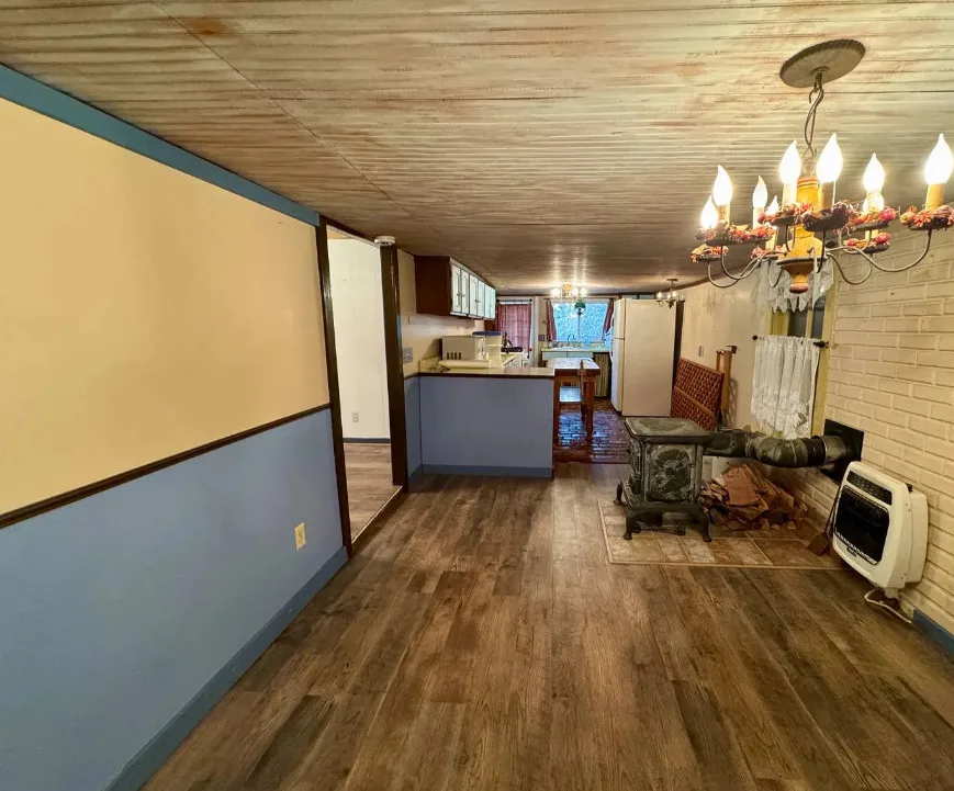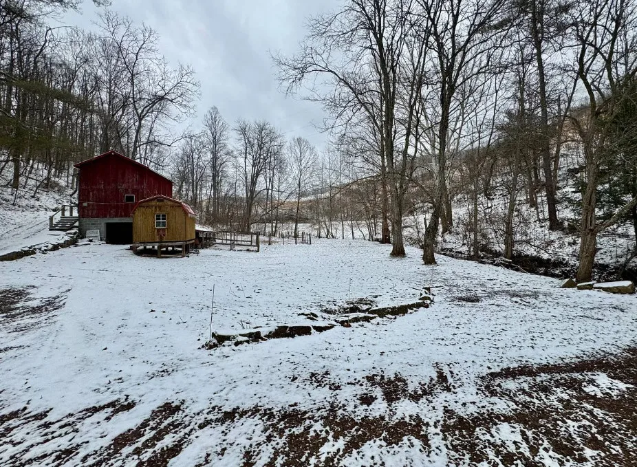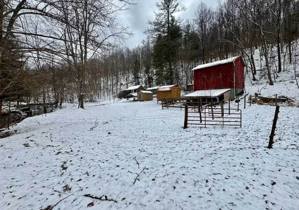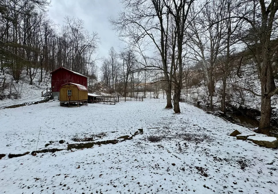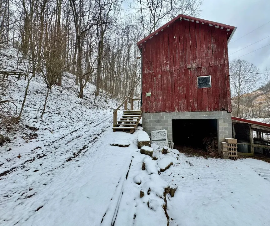 This is a pretty setting! Really nice acreage! There is a creek, woods and an open meadow within sight of the house. The home was built in 1900. It is located on 66.1 acres in New Milton, West Virginia. The house is livable, but needs work. It’s the property for me. There are multiple outbuildings. Three bedrooms, one bathroom and 1,124 square feet. $275,000