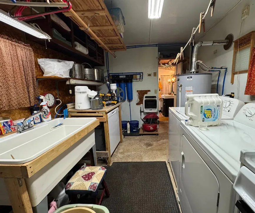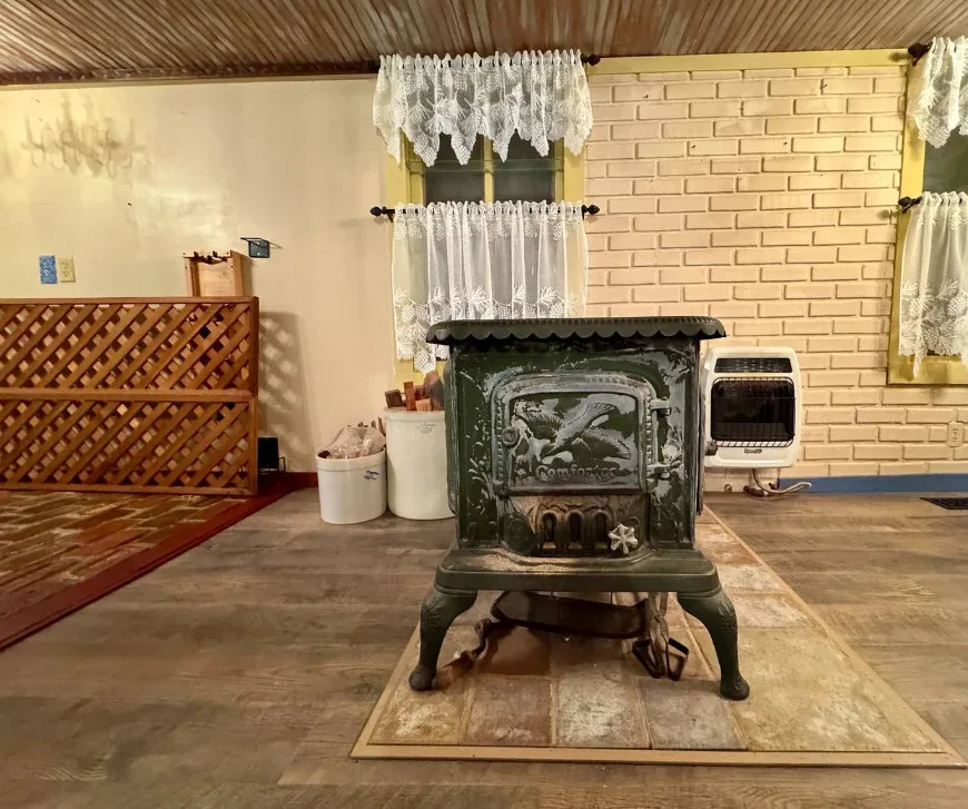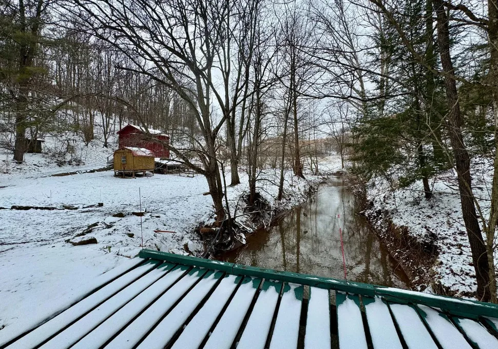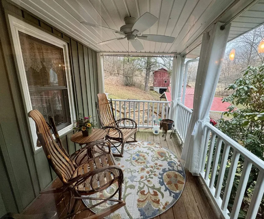 In rural Gilmer County, off a paved country drive called Bear Fork Road, you will find this charming home amidst 66 private acres. With a creek, woods, and a meadow in plain sight of the dwelling, you will feel immersed in nature as you watch the surrounding landscape from the comfort of the cozy living quarters that this home has to offer. With the added benefits of deeded free gas, electricity in the barn and the outbuildings, and the Bear Fork stream meandering through the property, this property has the potential to make your dream of country living a reality. The rancher/bungalow home has had many improvements, including but not limited to: a red metal roof, vertical siding, insulation, modern insulated windows, storm doors, and three updated entry doors. There are also new treated wooden steps leading to the lumber deck, and the entryway. Upon entering, you will find the mudroom, paneled with rustic barn siding and floored in waterproof flagstone vinyl. The bathroom features a modern low-flow toilet, one-piece tub/shower, and pump-style vanity faucet. The adjoining summer kitchen houses a washer, dryer, dishwasher, refrigerator, gas cook stove, utility sink, and a hot water heater. Plumbing includes PEX lines and a three-stage water filter. Beyond this room, a large pantry with shelving and LED lights keeps your canned goods cool with its own air conditioner. The dining room offers colorful walls, chandelier lighting, and LVP floors, while the kitchen features custom brick flooring, a butcher block island, cabinets with abundant storage, and a deck view perfect for bird-watching. A freestanding wood stove with stainless chimney and several individual room heaters provides radiant warmth in addition to the central heating furnace. The spacious living room has built-in bookcases crafted from timber harvested on the property, a checkerboard wood ceiling, and an antique Civil War-era mantle with a rare beveled mirror. The master bedroom is a soothing light-blue space with a ceiling fan, barn door, and wide-sill windows overlooking the deck. Another room connected to the living room would make a great bedroom as well. It is warmly painted in a cinnamon color, with ample light-ideal for sewing, crafts, or a nursery. An additional bedroom is connected to the living room with Williamsburg-style finishes, a sliding barn door, and windows with views of the barn and gardens. Outside the kitchen, the deck is a three-season space with wildlife views. Adjacent to the deck you will also find a rebuilt cellar house with electric lighting and a gas heater. The renovated barn features a concrete block foundation and a metal roof, and the two utility buildings have gas heaters, electric, and a loft. The property uses a state-approved aeration septic treatment system with transferable permits and annual inspections. The free gas supplies the central heat, hot water, cook stoves, dryer, heaters, and a 4kW automatic standby generator. There is also central air conditioning as well. This property is approximately half an hour from Glenville and West Union, an hour from Clarksburg, and an hour and 15 minutes from Parkersburg. Please contact the listing agent to find out more about this rural mountain getaway.