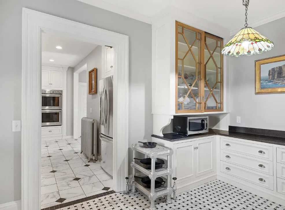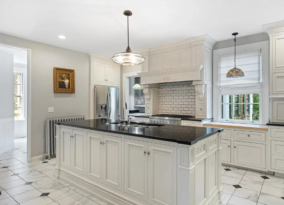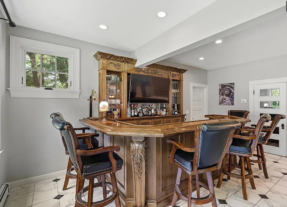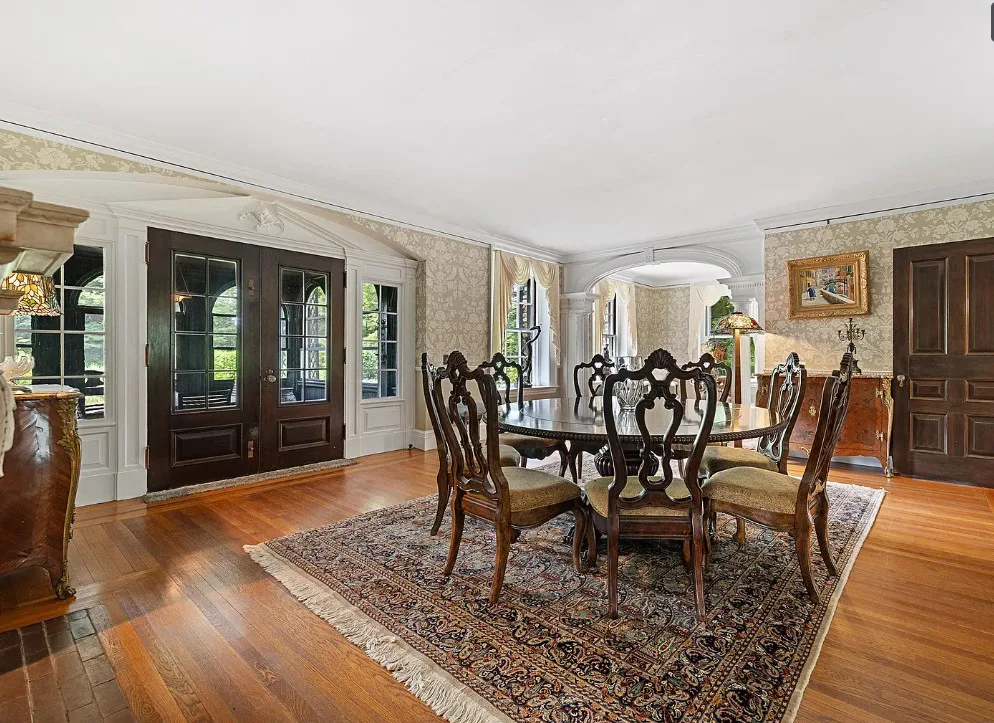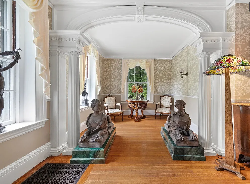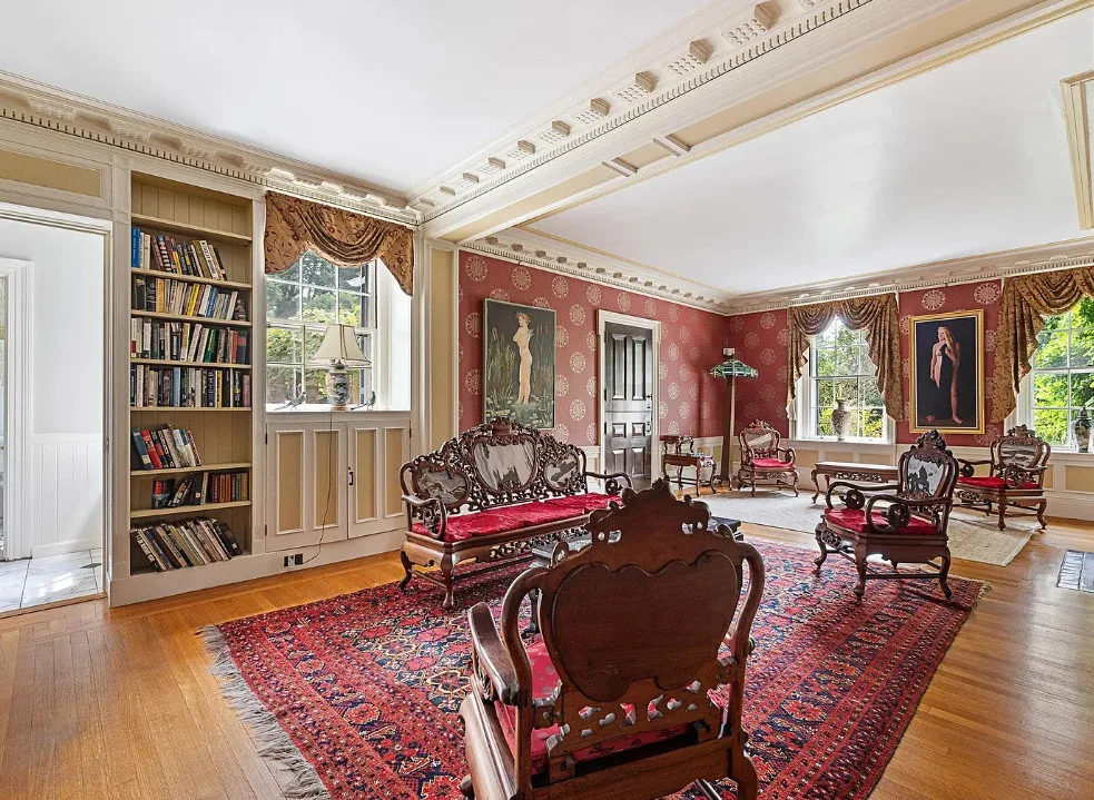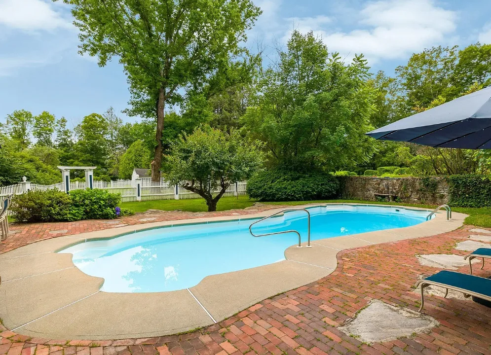 Reimagined in the early 1900s and surrounded by natural beauty, this extraordinary 41-acre estate offers unmatched privacy, timeless architecture, and refined craftsmanship. The 7,772 sq ft stone residence, crowned with a slate roof, is framed by rolling fields, mature trees, and manicured gardens. Inside, hand-carved moldings, elegant fireplaces, and artisan details reflect a level of quality rarely found today. The chef’s kitchen features a Thermador gas range and oven, double wall ovens, a well-appointed butler’s pantry, and an original Walker & Pratt Manufacturing Co. wood-burning cooking stove-both a functional centerpiece and a striking architectural feature. An impressive full-service bar makes entertaining effortless, while the screened porch with chevron brick flooring overlooks the gardens and grounds. Outdoor amenities include a heated fiberglass-lined pool, an original sauna room opening directly to the pool area, a greenhouse, and a two-car garage with a full loft. Bordered in part by protected land, including preserved acreage across the road, the setting offers exceptional privacy and a true sense of retreat. Whether enjoyed as a primary residence or a luxurious escape from the city, this exceptional estate presents a rare combination of seclusion, beauty, and timeless appeal.