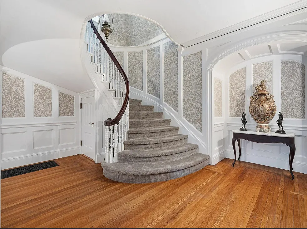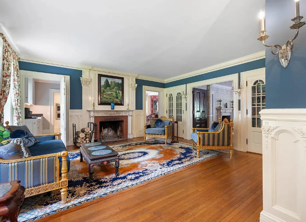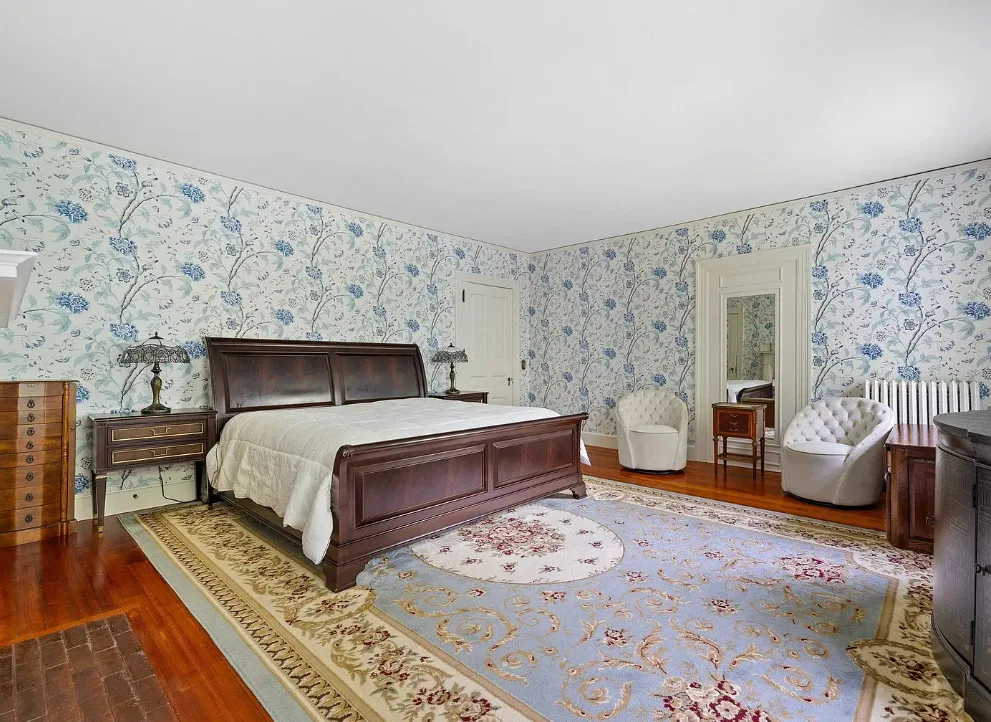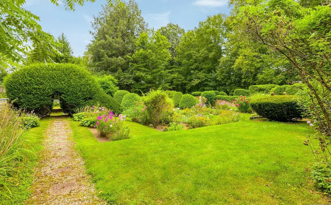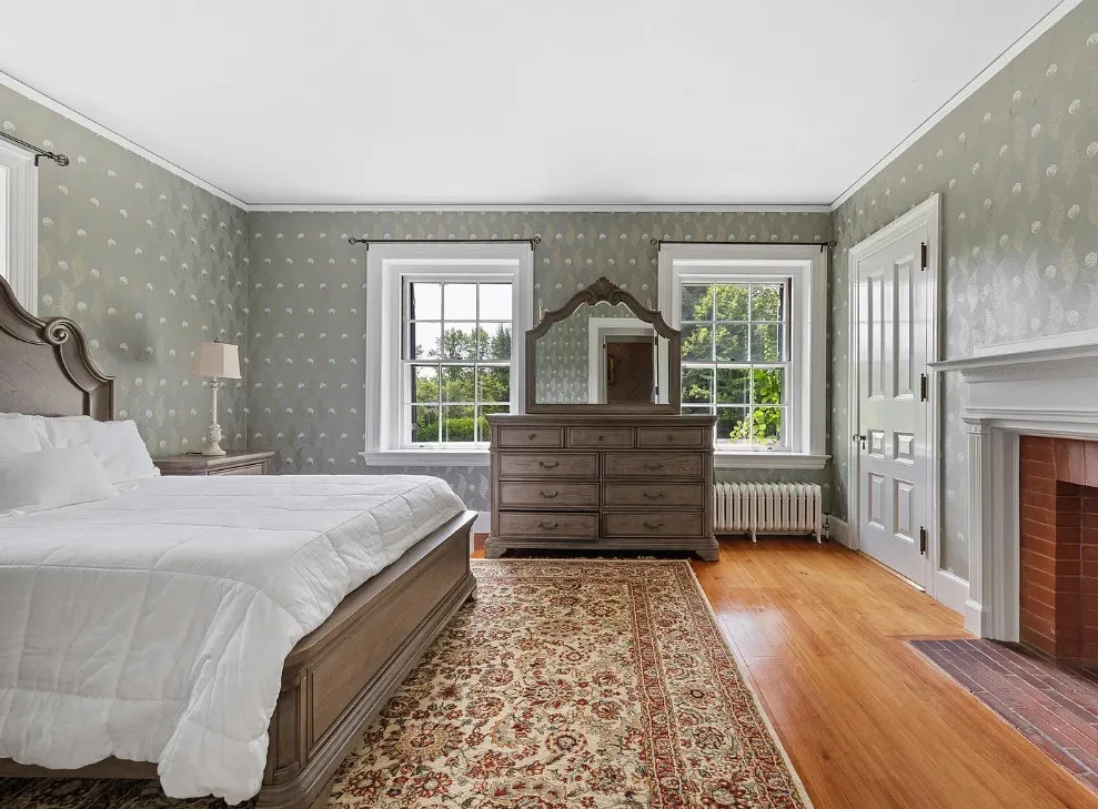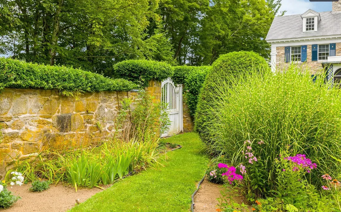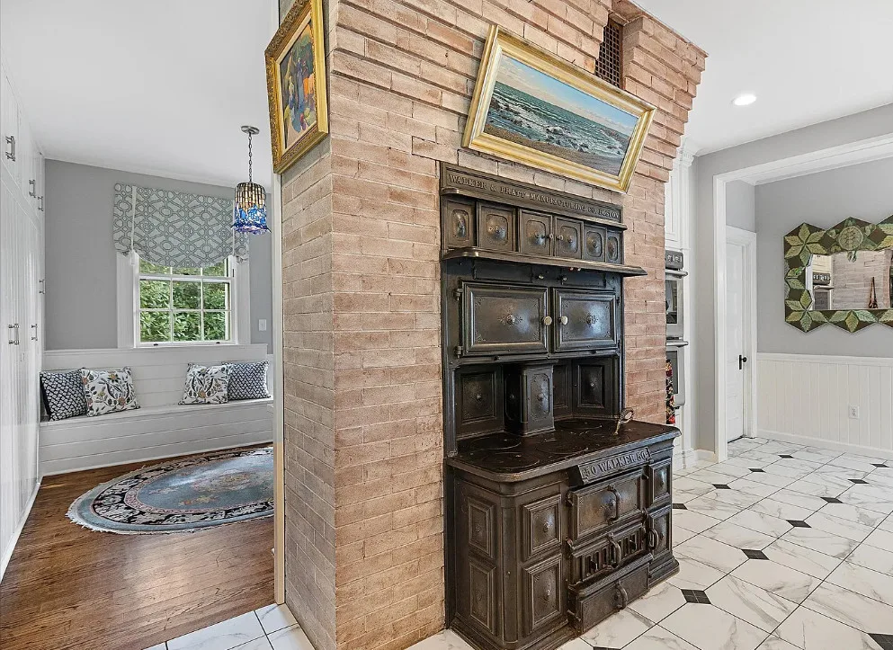 The gardens are absolutely stunning! In love with the stone walls along the driveway. The house was built in 1850. It is located on 41 acres in Pomfret, Connecticut. The stone house features a slate roof, crown moulding, pretty fireplaces, brick flooring and a screened in porch. How about that wood burning cookstove! It is amazing! Five bedrooms, six bathrooms and 7,772 square feet. $2,500,000