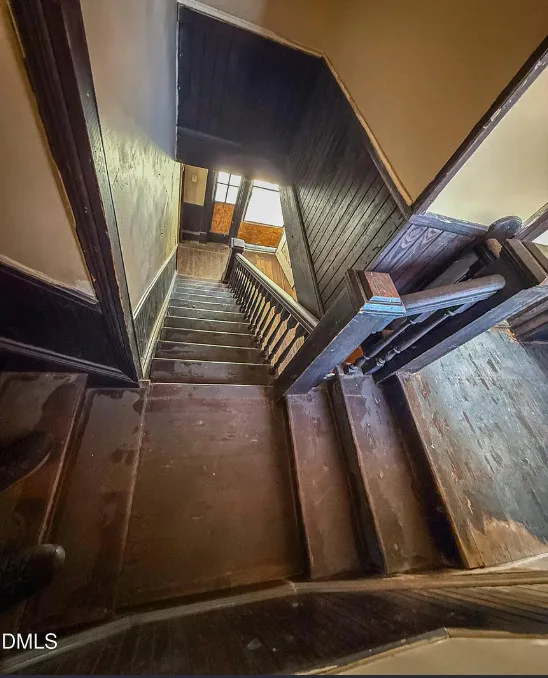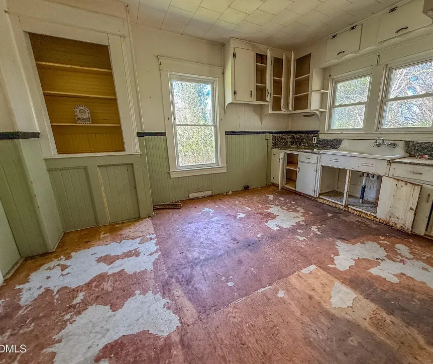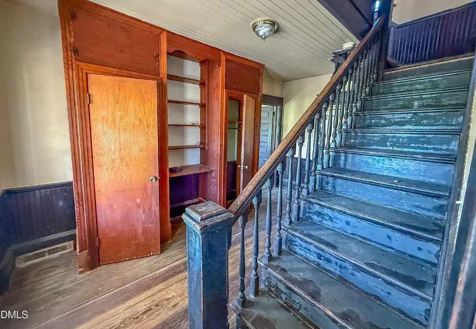 This house has some nice original details! I love the kitchen sink and how the staircase turns off into two directions. The house was built in 1922. It is located on 1.01 acres in Roxboro, North Carolina. The house features a covered front porch, wood floors, bead board wainscoting, baseboards, unique staircase, great kitchen sink and built-ins. Three bedrooms, one bathroom and 1,940 square feet. $150,000