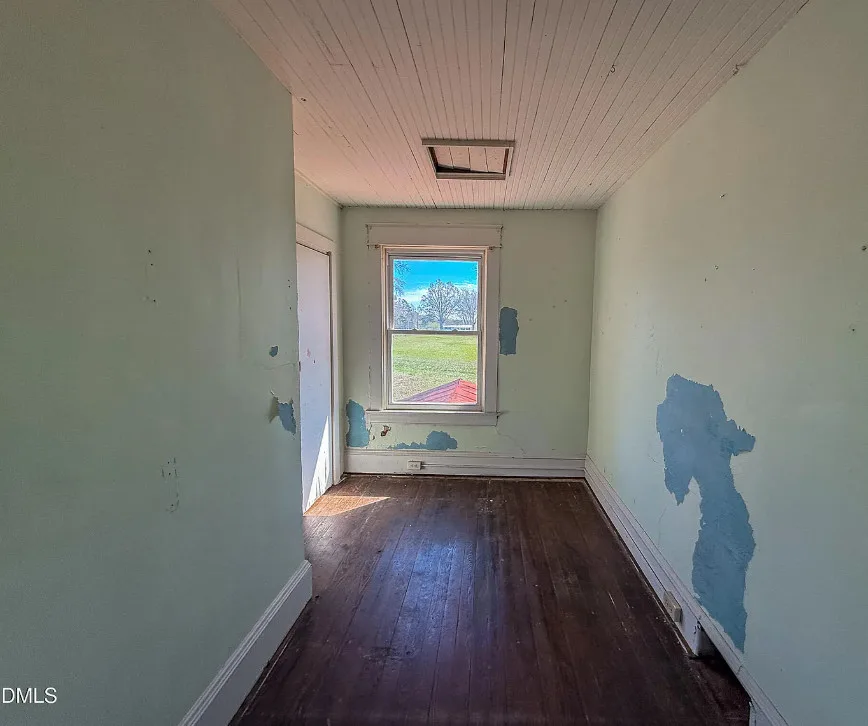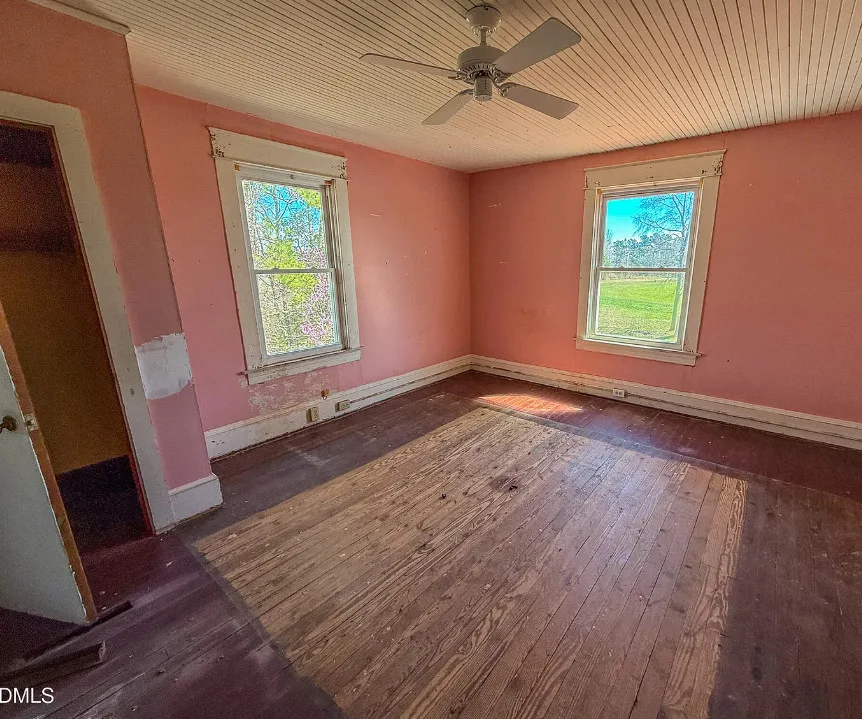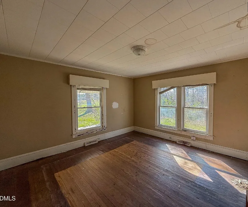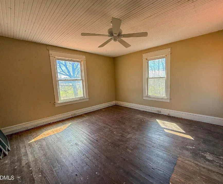 Discover this charming 3 BR, 1 BA farmhouse nestled in the serene countryside of Rural Roxboro, NC, just minutes from town. This delightful property has large, inviting rooms and a classic farmhouse porch, perfect for relaxing evenings. Enjoy the beauty of nature with frequent visits from deer, turkey, and other wildlife. The grand open foyer features a beautifully designed stairway leading to two additional bedrooms. Don’t miss the opportunity to own this idyllic retreat and add your preferences! Field in front of home is not part of the property
