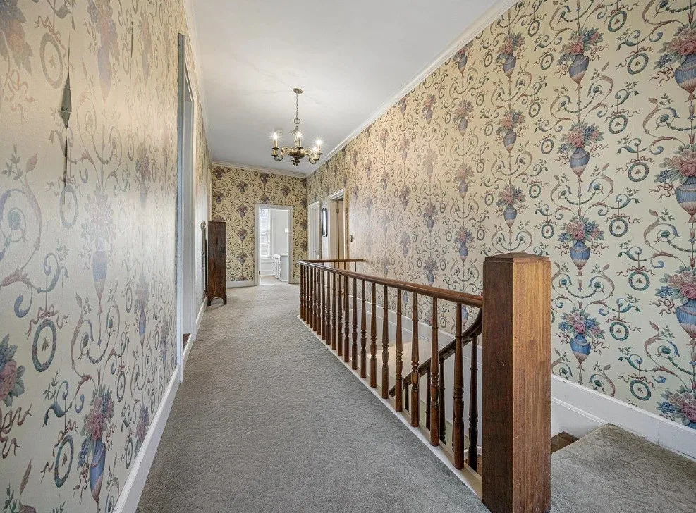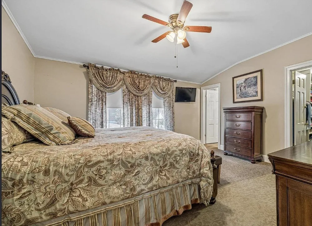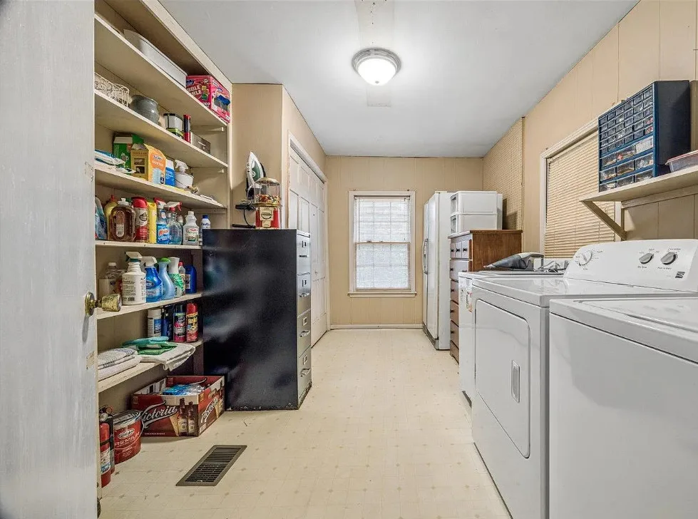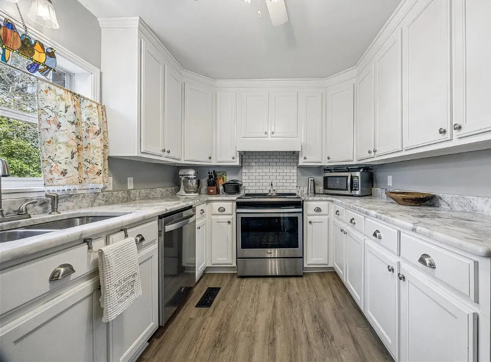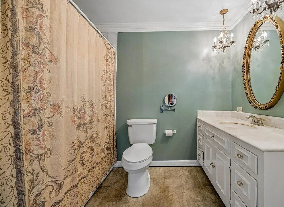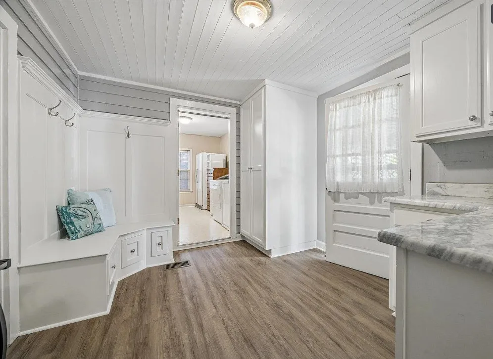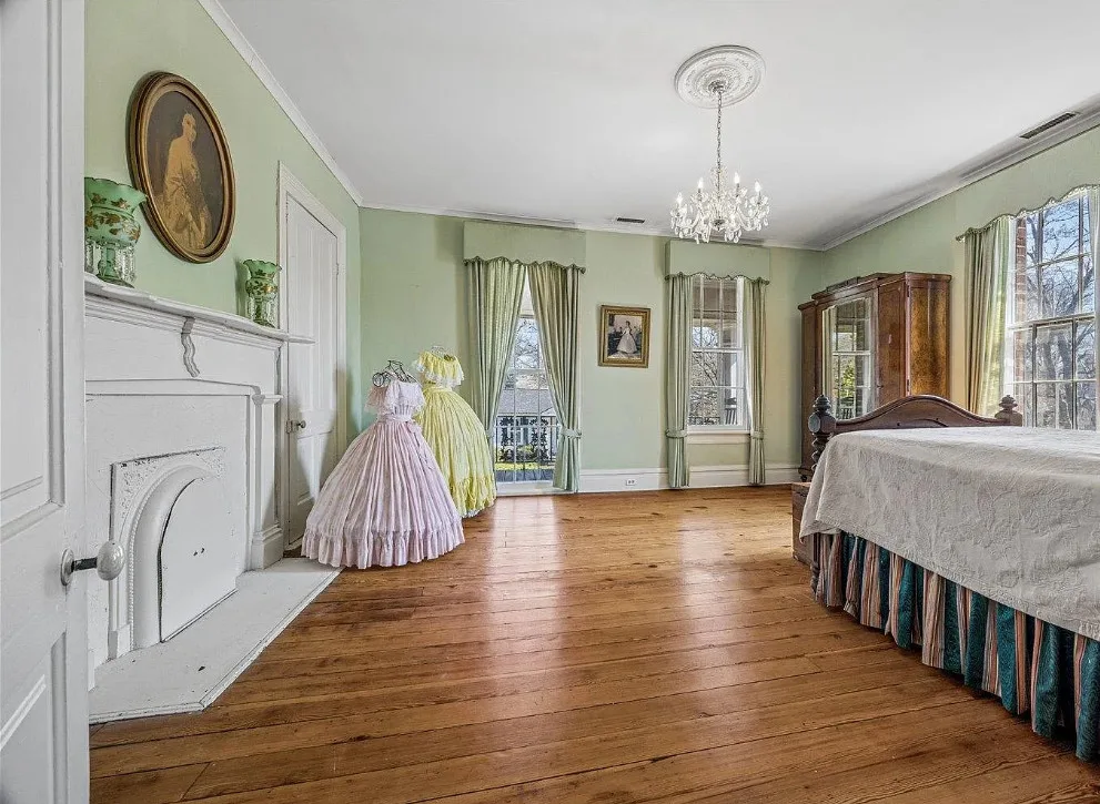 This is a pretty house! There are nice details inside! The home is known as “White Pillars”. It was built in 1838. White Pillars is located on .34 acre in Holly Springs, Mississippi. The house features double front porches, wood floors, ceiling medallions, wide baseboards, crown moulding, crystal chandelier, chair rails, french doors, updated kitchen and updated bathrooms. There is a screened in back porch and a large back patio. Four bedrooms, three bathrooms and 4,000 square feet. $375,000