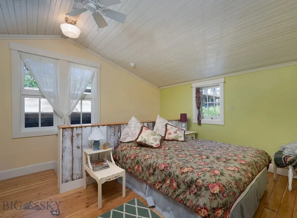 Experience the charm & elegance of the past with this exquisitely renovated vintage home, known historically as the Samuel Russell House, located on 2 city lots in the heart of VC. This shotgun-style Victorian-era cottage remains true to the architectural vernacular of its period, lovingly restored to preserve its historical integrity while incorporating modern comforts. As part of the Historic Landmark district, this home is a testament to VC’s rich heritage. Originally constructed in 1900, it beautifully showcases handcrafted woodwork, authentic fixtures, & carefully selected finishes that honor its era. A historical plaque explaining the home’s history from the Montana Historical Society has been placed in front. This home has undergone a complete overhaul to ensure modern comfort while preserving its vintage charm. Renovations include a new roof, new wiring & plumbing, refinished fir flooring, & new cedar siding. Every detail has been meticulously restored to maintain the authentic feel. The home features an elegant, old-fashioned front porch with a picturesque view and soothing sounds of “Daylight Creek” across the road. The spacious living room boasts a vaulted, beamed ceiling, a gorgeous, antique, stained-glass window, & a gas “wood stove.” There is a side-entrance mudroom, & the kitchen includes a utility room, pantry/larder, & a root cellar believed to be part of the original dwelling. The glassed-in sunroom, complete with a wood stove & indoor planter, provides a cozy retreat for all seasons. The 2nd floor features a bedroom & full bath, plus access to a large storage attic. The property includes 2 functional outbuildings, both fully insulated & wired for electricity – good for workshops, overflow guests or storage. Situated on 2 city lots, the property boasts original stone retaining walls with plant beds of perennials, bulbs & crab apples; hedged borders surrounded by lawn areas & mature trees. Just 1 block off from the village, this home offers convenient access to the historic downtown, including museums, shops, restaurants, and seasonal events that celebrate the town’s heritage. The owners have lovingly completed the renovation, adding details that have transformed this project into a unique & character-full residence. This is a rare opportunity to own a piece of Montana’s history. Whether you’re seeking a full-time residence, a vacation retreat, or a historical investment, this vintage home in Virginia City promises to enchant and inspire.