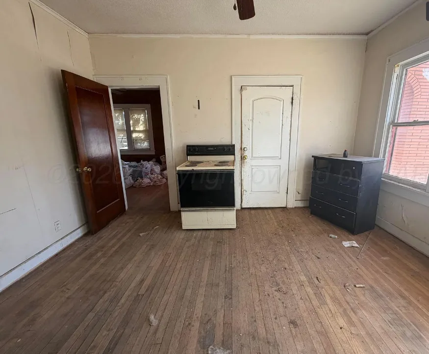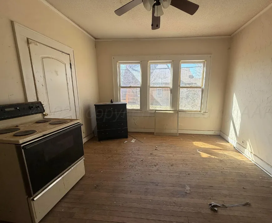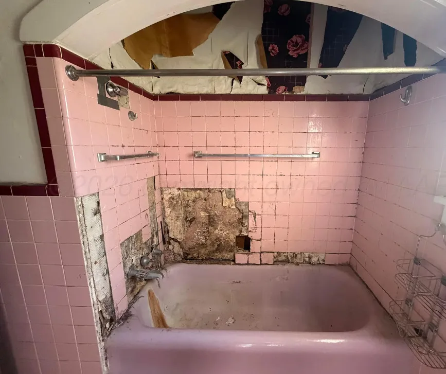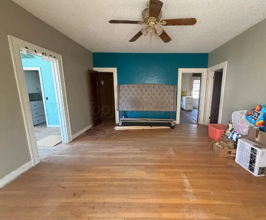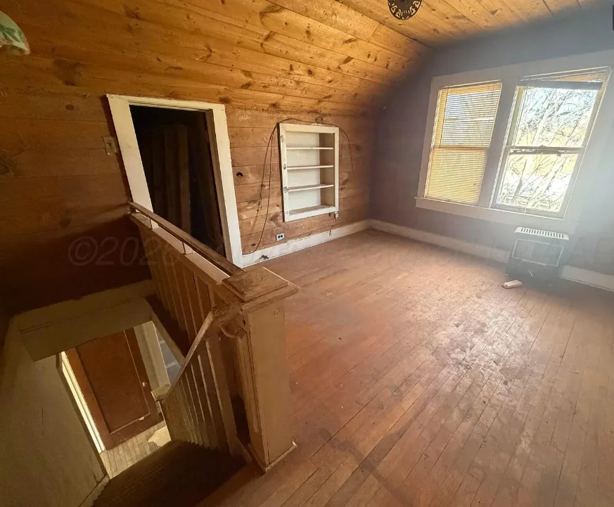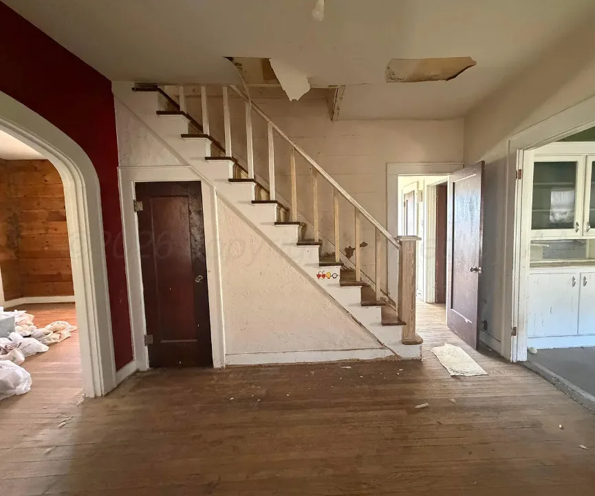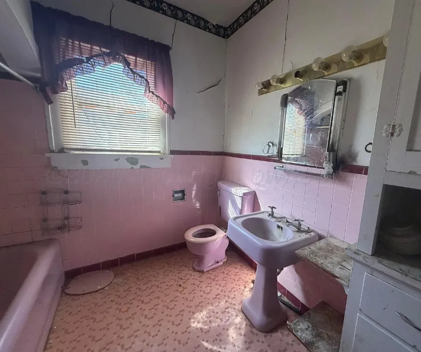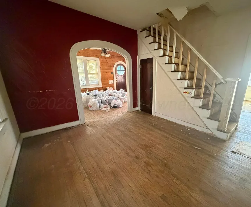 Hard to believe that price of $35,000. Going to assume it is a location issue. The front door is pretty! Love the vintage bathrooms. The house was built in 1940. It is located on .52 acre acre in Memphis, Texas. The house features multiple covered porches, arched front door with leaded glass, original wood floors, vintage bathrooms, baseboards and unpainted woodwork. A good cleaning and some landscaping would go a long way with this house! The house is bigger than it looks! Five bedrooms and three bathrooms. $35,000