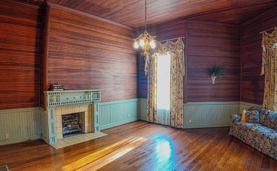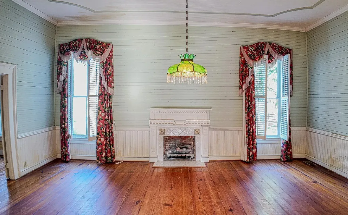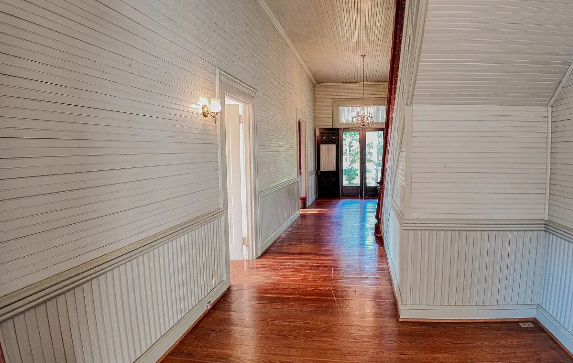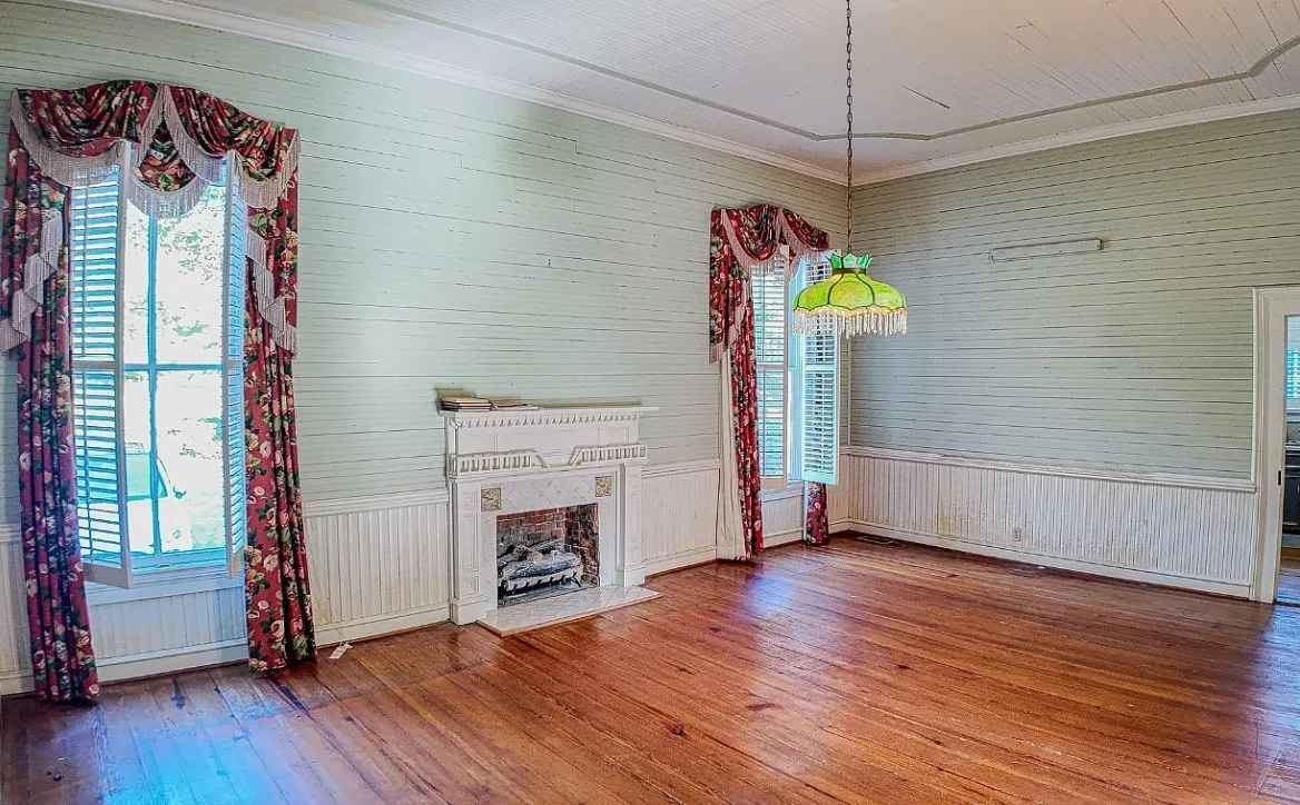 Love the double porches! There are some nice details in this house! The double front doors are great. The house was built in 1890. It is located on 16.21 acres in Ramer, Alabama. The house features double front porches, double front doors, original wood floors, bead board for days, wainscoting, chair rails, crown moulding, baseboards and unique mantels! There is a detached storage building on the property. This could be a really nice house! Six bedrooms, four bathrooms and 4,245 square feet. $395,000