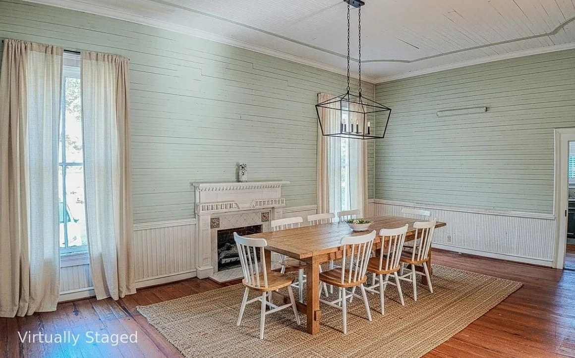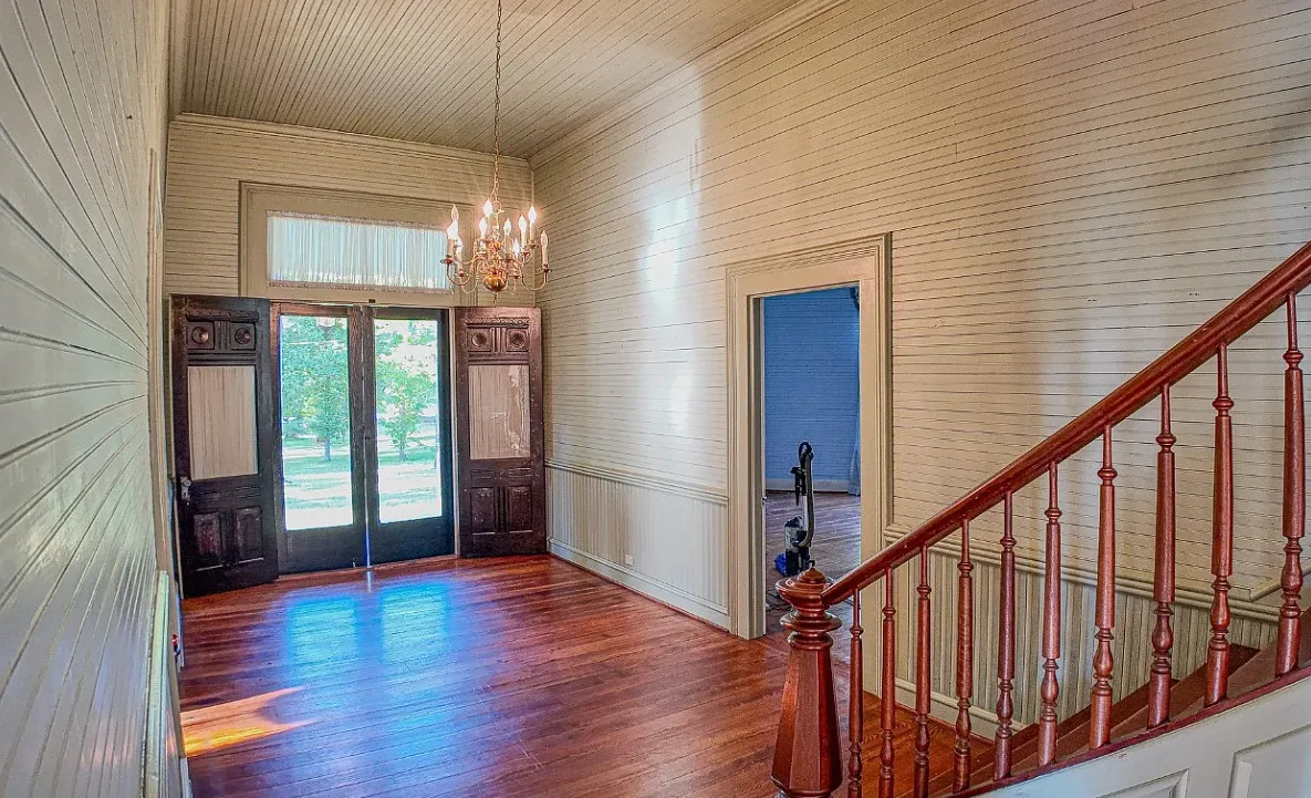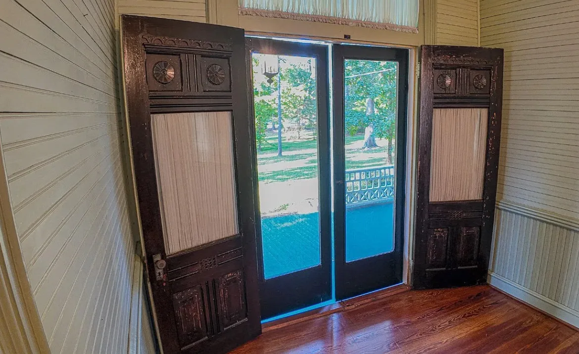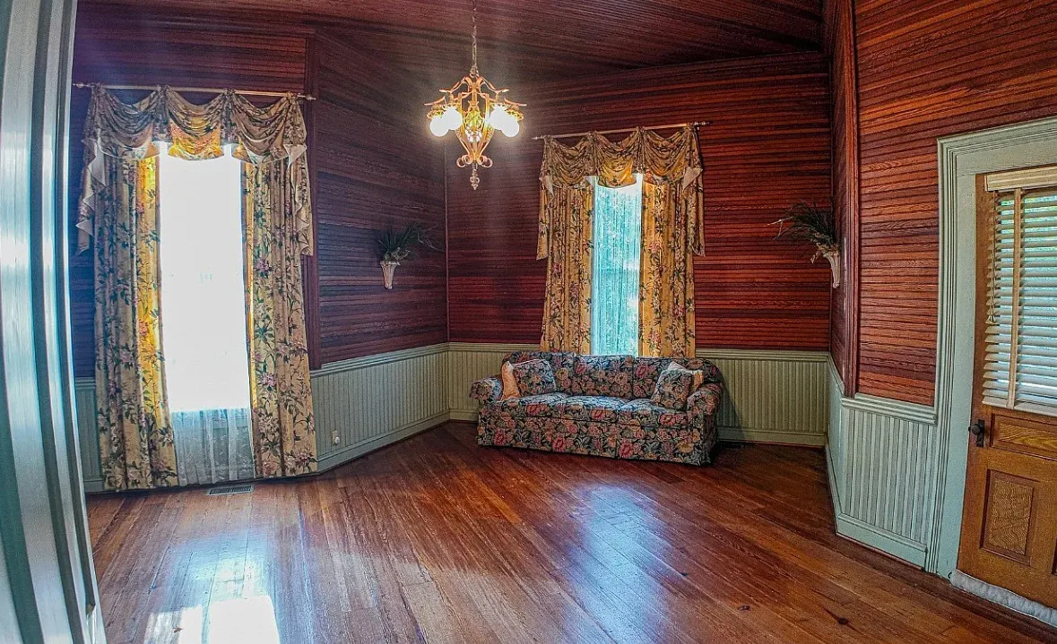 Love the double porches! There are some nice details in this house! The double front doors are great. The house was built in 1890. It is located on 16.21 acres in Ramer, Alabama. The house features double front porches, double front doors, original wood floors, bead board for days, wainscoting, chair rails, crown moulding, baseboards and unique mantels! There is a detached storage building on the property. This could be a really nice house! Six bedrooms, four bathrooms and 4,245 square feet. $395,000