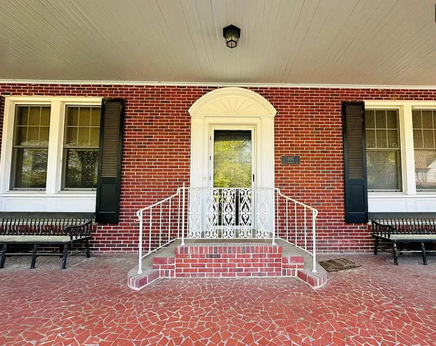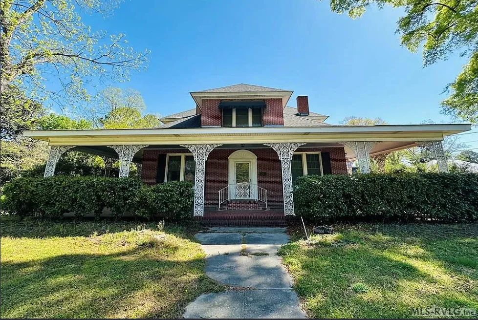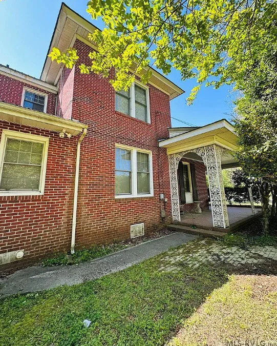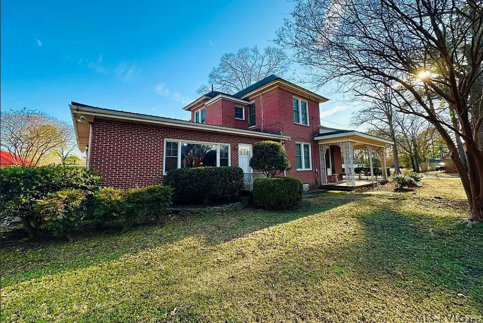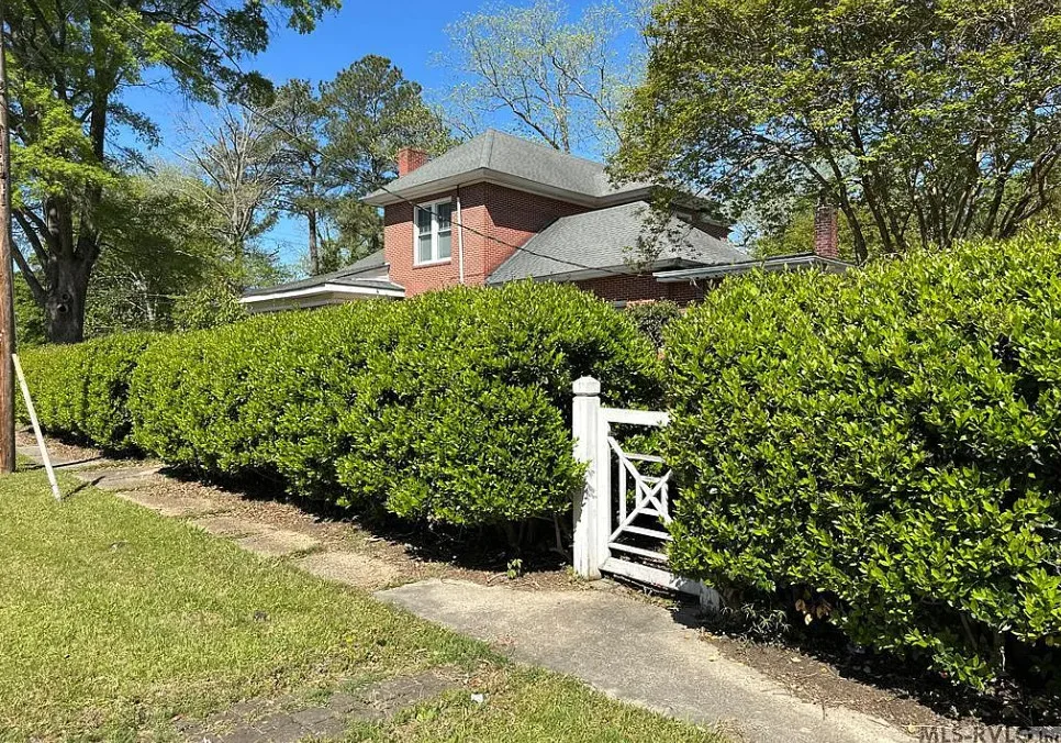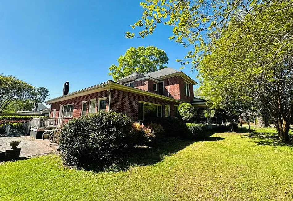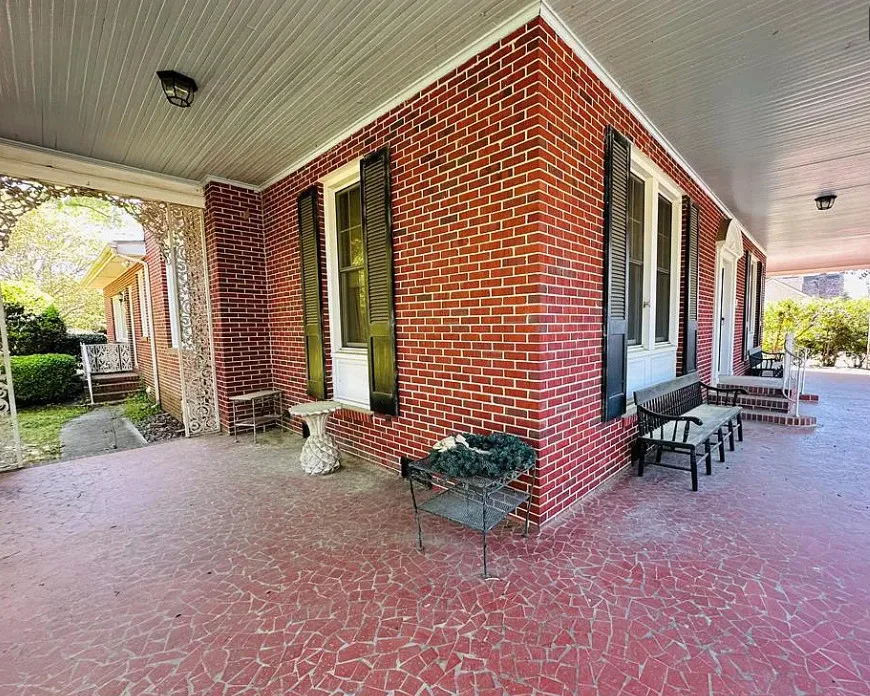This stately 4 bedroom/2.5 bath brick home was built circa 1917 and is full of charm, character and elegant detail. Thoughtfully updated through the years, this home features a nice kitchen with appliances included, adjoining breakfast room with built in cabinetry and pass thru to the kitchen, as well as a nearby butler’s pantry with refrigerator, sink and additional storage. The elegant living room boasts a coffered ceiling as well as a beautiful fireplace. It adjoins the large formal dining room which also has a lovely coffered ceiling. Enjoy a cup of coffee and a good book in the cozy library with a second fireplace and built-ins for your books. The primary bedroom is located downstairs and features a third fireplace and adjoining private bath with tile shower and nice storage space. Also located downstairs is a spacious family room, perfect for entertaining, with wood paneling, built in wet bar, desk, lots of great storage space, and a 1/2 bath. Rounding out the downstairs area is a laundry/utility room. The beautiful staircase takes you upstairs where you will find a small loft area and three additional spacious bedrooms with great closet space. One bedroom even has a nice dressing room with lots of built-ins. Outside you’ll find a detached double carport, beautiful back yard with brick patio area and shrubbery, as well as a nice storage shed. The elegant facade features a three sided front porch with unique wrought iron trim. With every attention to detail, this home was a showplace back in the day. It now needs a new family who will love it and call it home. This home is priced to sell and being sold AS IS. Don’t miss this wonderful opportunity to own such a beautiful piece of history.