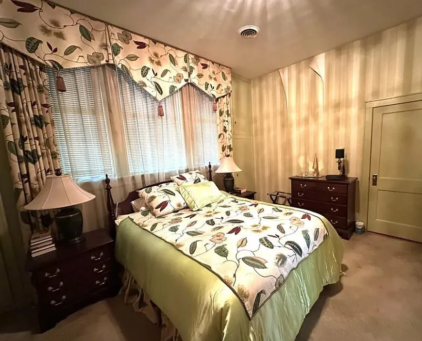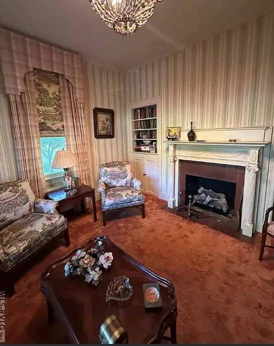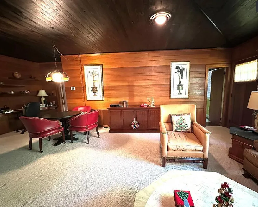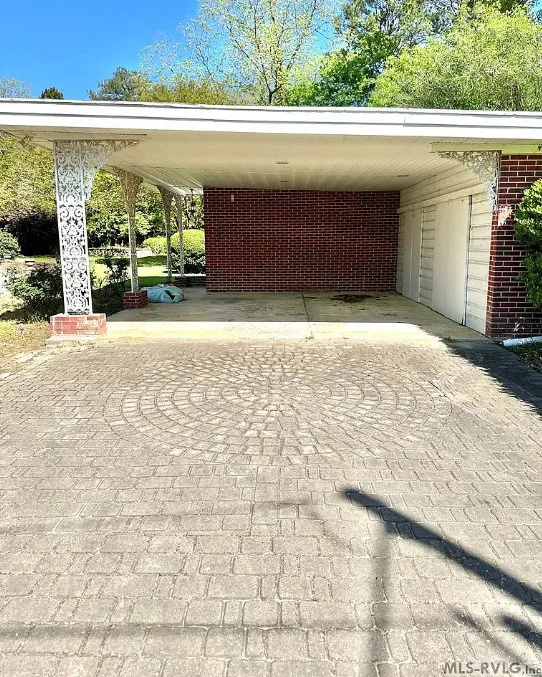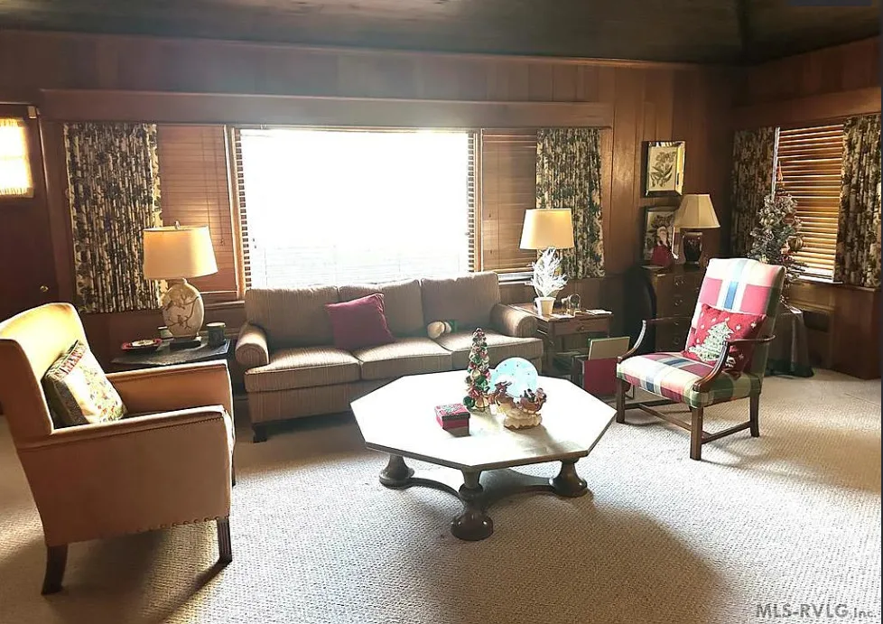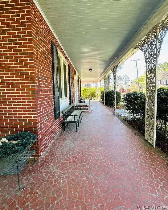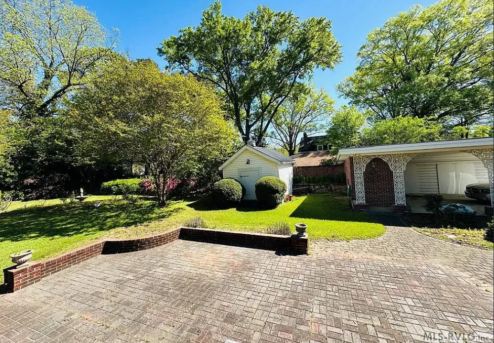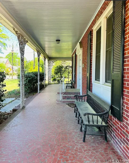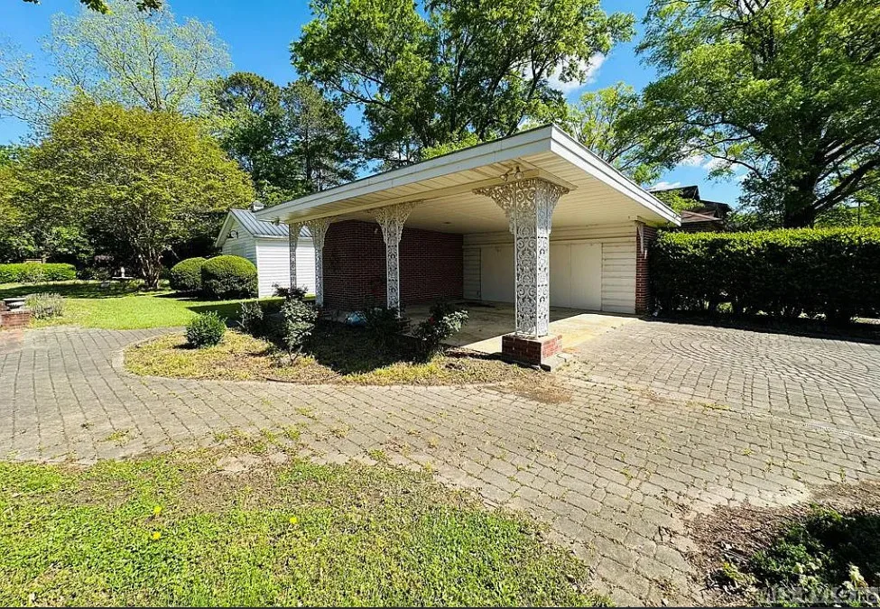 This stately 4 bedroom/2.5 bath brick home was built circa 1917 and is full of charm, character and elegant detail. Thoughtfully updated through the years, this home features a nice kitchen with appliances included, adjoining breakfast room with built in cabinetry and pass thru to the kitchen, as well as a nearby butler’s pantry with refrigerator, sink and additional storage. The elegant living room boasts a coffered ceiling as well as a beautiful fireplace. It adjoins the large formal dining room which also has a lovely coffered ceiling. Enjoy a cup of coffee and a good book in the cozy library with a second fireplace and built-ins for your books. The primary bedroom is located downstairs and features a third fireplace and adjoining private bath with tile shower and nice storage space. Also located downstairs is a spacious family room, perfect for entertaining, with wood paneling, built in wet bar, desk, lots of great storage space, and a 1/2 bath. Rounding out the downstairs area is a laundry/utility room. The beautiful staircase takes you upstairs where you will find a small loft area and three additional spacious bedrooms with great closet space. One bedroom even has a nice dressing room with lots of built-ins. Outside you’ll find a detached double carport, beautiful back yard with brick patio area and shrubbery, as well as a nice storage shed. The elegant facade features a three sided front porch with unique wrought iron trim. With every attention to detail, this home was a showplace back in the day. It now needs a new family who will love it and call it home. This home is priced to sell and being sold AS IS. Don’t miss this wonderful opportunity to own such a beautiful piece of history.