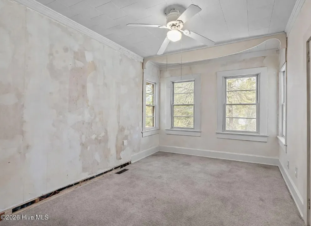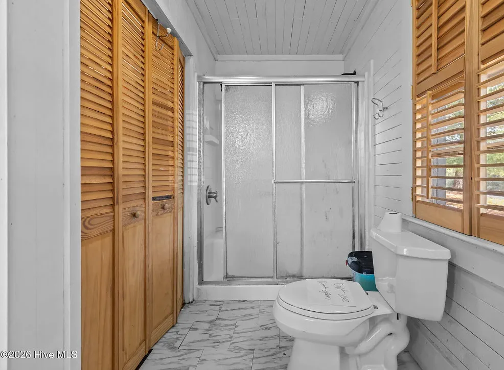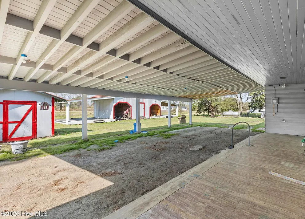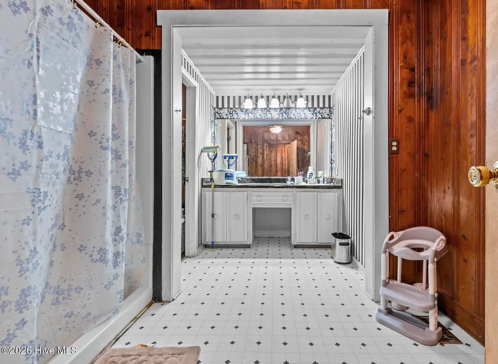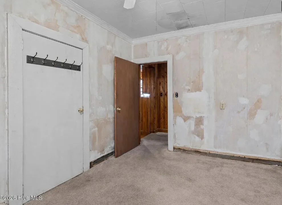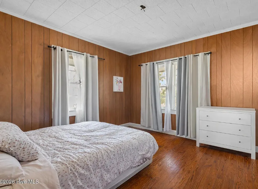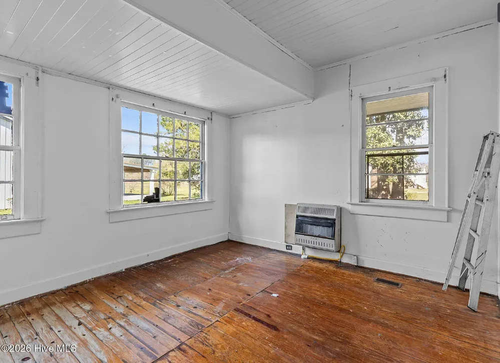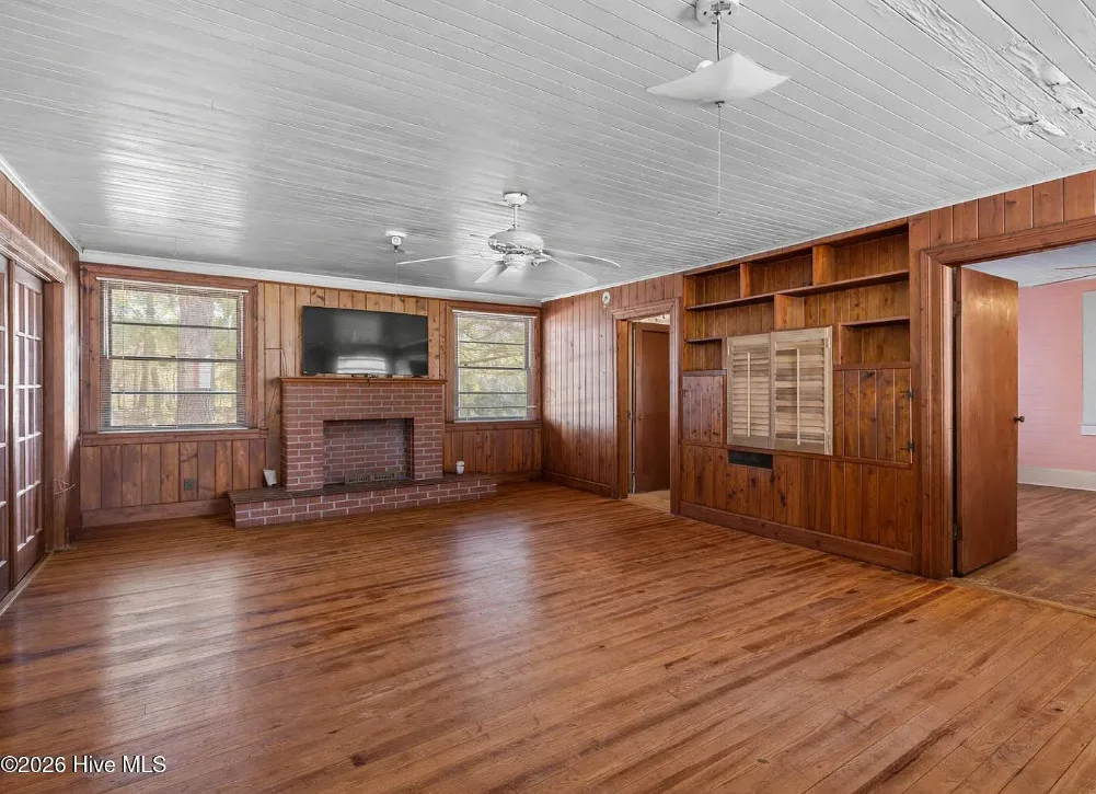 That is a neat looking barn! I wish they showed in all of the outbuildings. I’m curious about the white one. The house was built in 1900. It is located on 3.01 acres in Warsaw, North Carolina. The house features knotty pine, wood floors, built-in bookshelves, baseboards and a brick fireplace. There are multiple outbuildings on the property, including a cool old barn. Four bedrooms, two bathrooms and 2,080 square feet. $240,000
