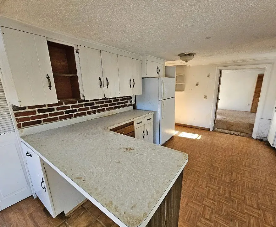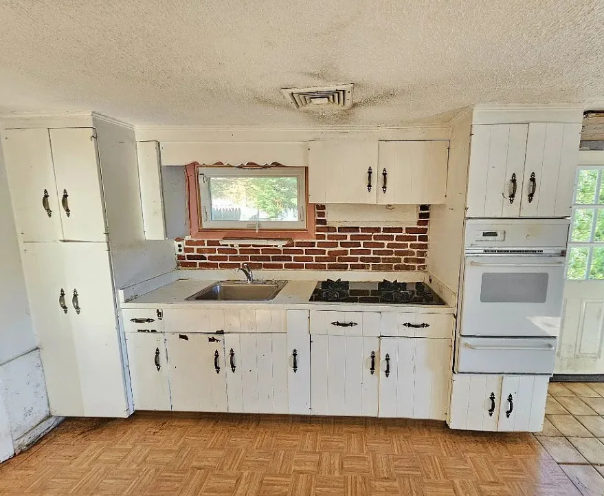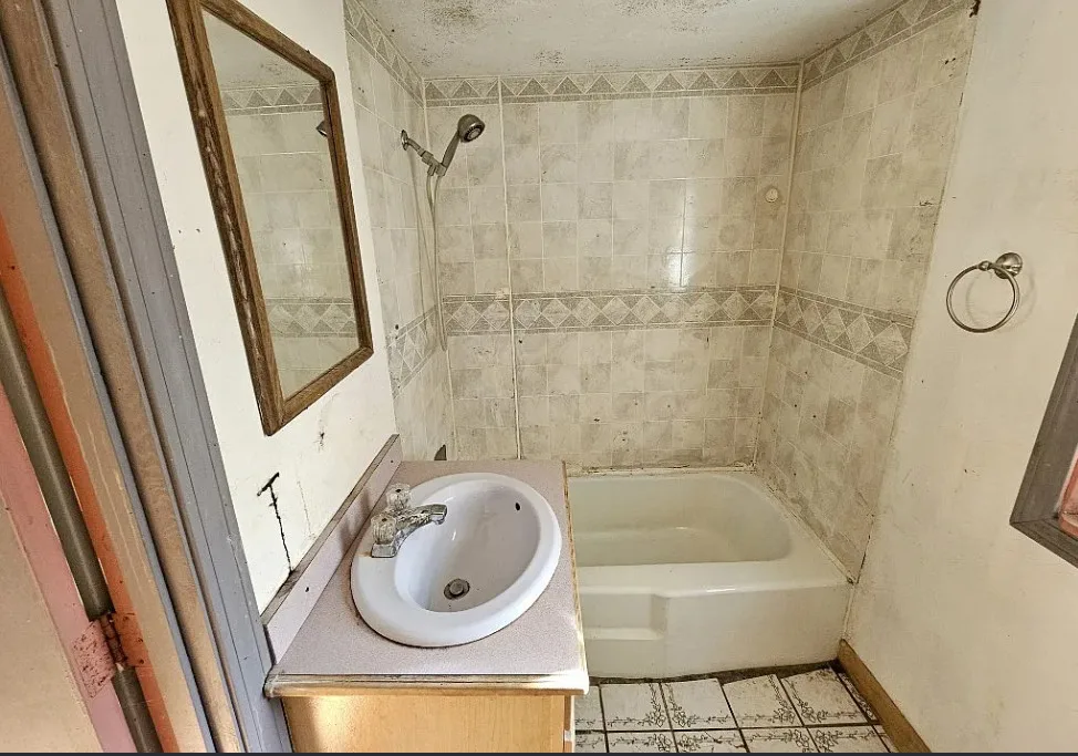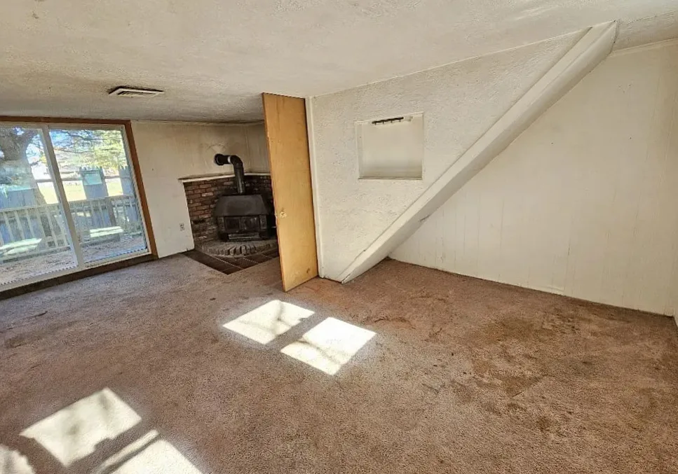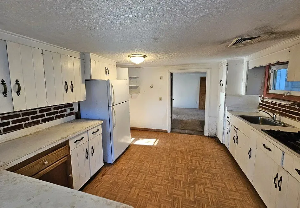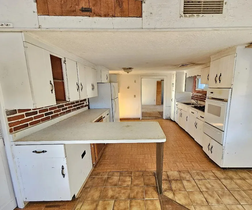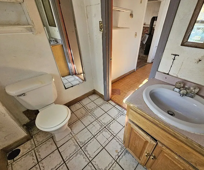 Fixer upper alert! Waterfront in Massachusetts. The house was built in 1938. It is located in Spencer, Massachusetts. The house definitely needs work, but it has a pretty setting. The house features a large wrap around deck, a small dock and vintage kitchen cabinets. There are two detached storage sheds on the property. One bedroom, one bathroom and 976 square feet. $189,900