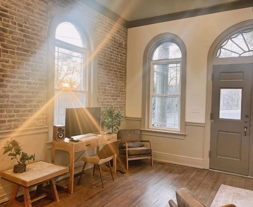RARE 1889 Bank Building is now a stunning dream home! Imagine walking into your own piece of living historywhere grand columns and white-brick architecture still turn heads, but inside you’re surrounded by modern luxury that feels like it was built just for you! This one-of-a-kind former bank has been completely transformed into a 3-bed, 2.5 bath residence in an area with low inventory! Picture yourself in the open-concept living space with soaring ceilings, exposed wood beams, and original brick accents that radiate warmth and character. Sunlight pours through arched windows while you cook in the gourmet kitchen featuring white shaker cabinets, a large bar, quartz counters, stainless appliances, and a stylish tile backsplash. The dramatic loft overlooks the living space with refinished original hardwood floors. The front porch and rear deck are perfect for peaceful morning coffee or evening sunsets. This architectural masterpiece is a rare blend of historic charm and modernity.