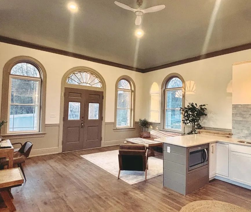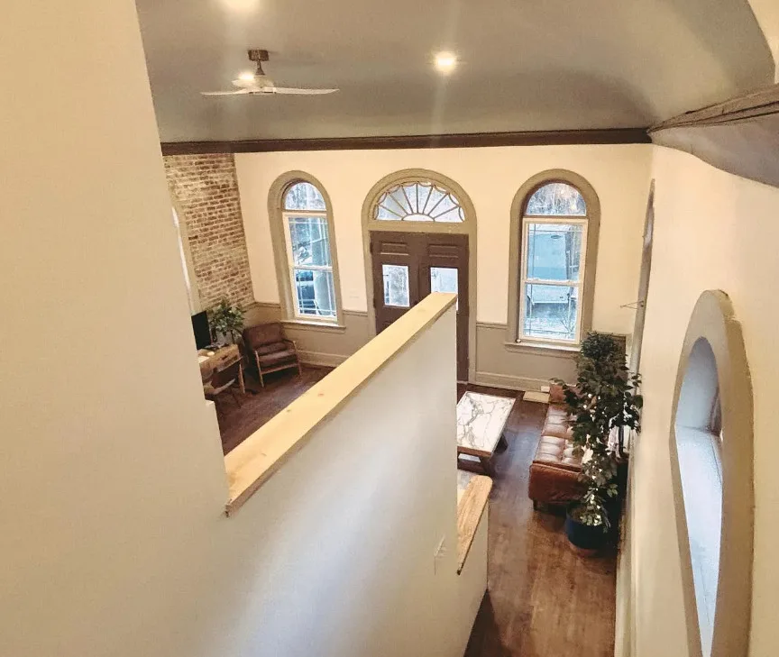 This former bank has been reimagined as a private residence! It’s a neat building! The bank was built in 1889. It is located in Monroe, Virginia. The house features a covered front porch, tall ceilings, exposed brick, crown moulding, wide baseboards, updated kitchen and updated bathrooms. There is a back deck. Three bedrooms, three bathrooms and 1,572 square feet. $315,000