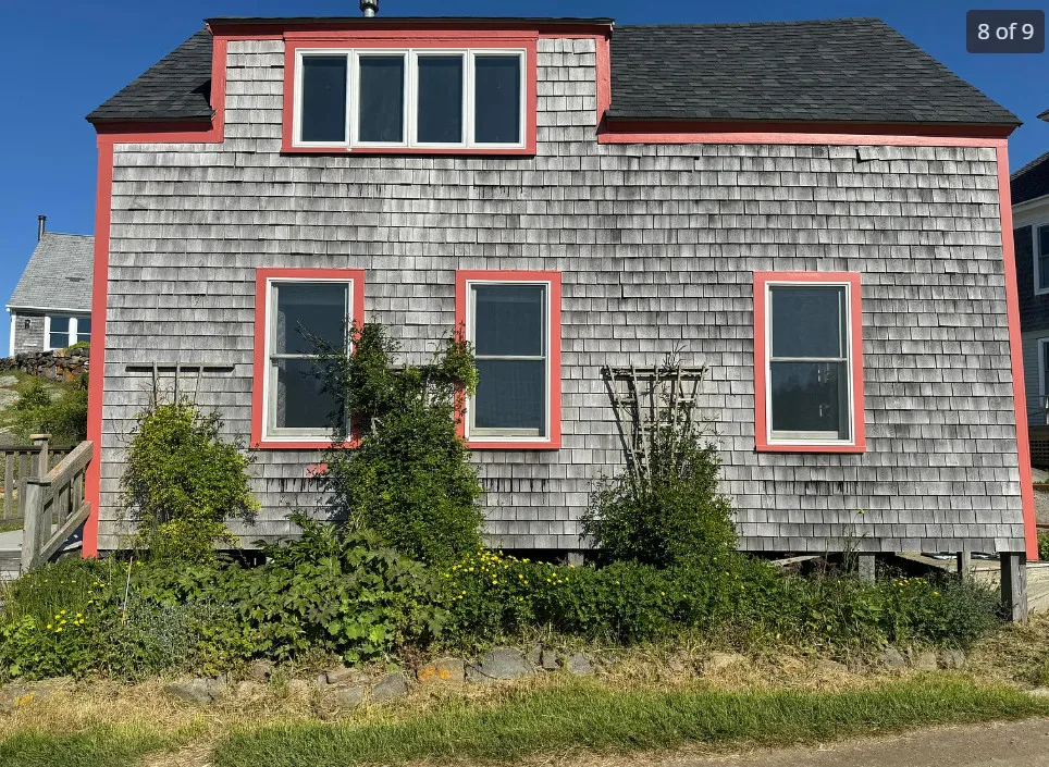 This house is known as the Carina House. It’s a cute coastal cottage in Maine. The house was built in 1920. It is located in Monhegan Island Pt., Maine. This coastal cottage features ocean views, meadow views, garden space and a galley kitchen. This home is being sold fully furnished. The island is reached by ferry. Two bedrooms, two bathrooms and 1,600 square feet. $695,000