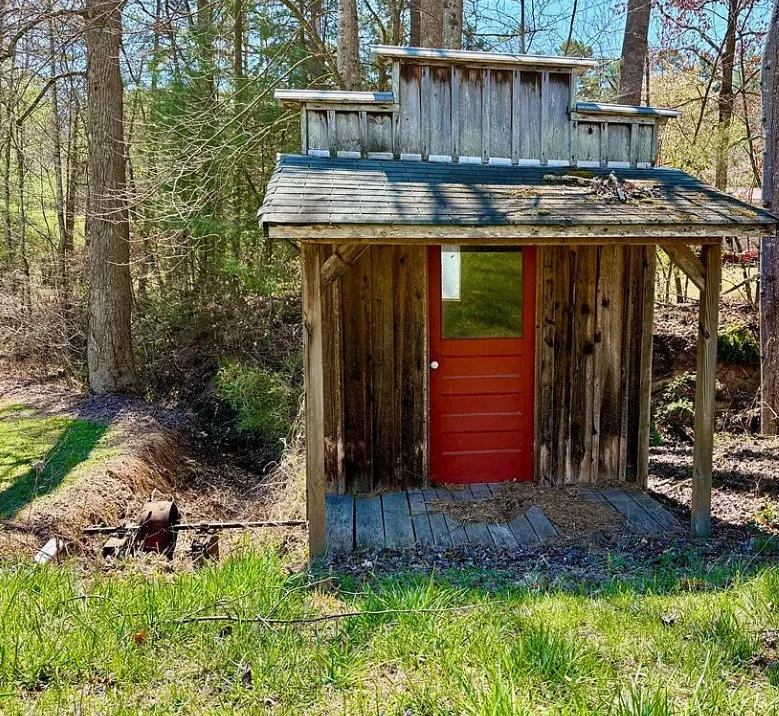 Charming 2 bedroom, 1 bath 1931 farmhouse full of character and potential, featuring Rheem, heat pump, central heat and air, some wood floors and a full walkout basement. This 4.92 acre property offers a peaceful setting with plenty of space to expand, garden or simply enjoy the outdoors. The home is complemented by multiple outbuildings, including a storage shed and a separate structure previously used as an art studio that would be great for creative projects, a workshop or additional storage. This structure also serves as a two car carport. Whether you are looking for a quiet retreat, a hobby farm or an investment opportunity, this property is brimming with possibilities and updated will be an adorable cottage. Don’t miss your chance to make it your own!