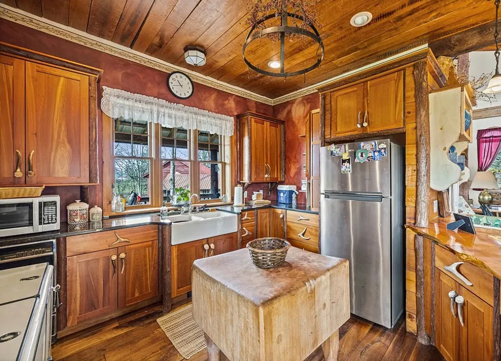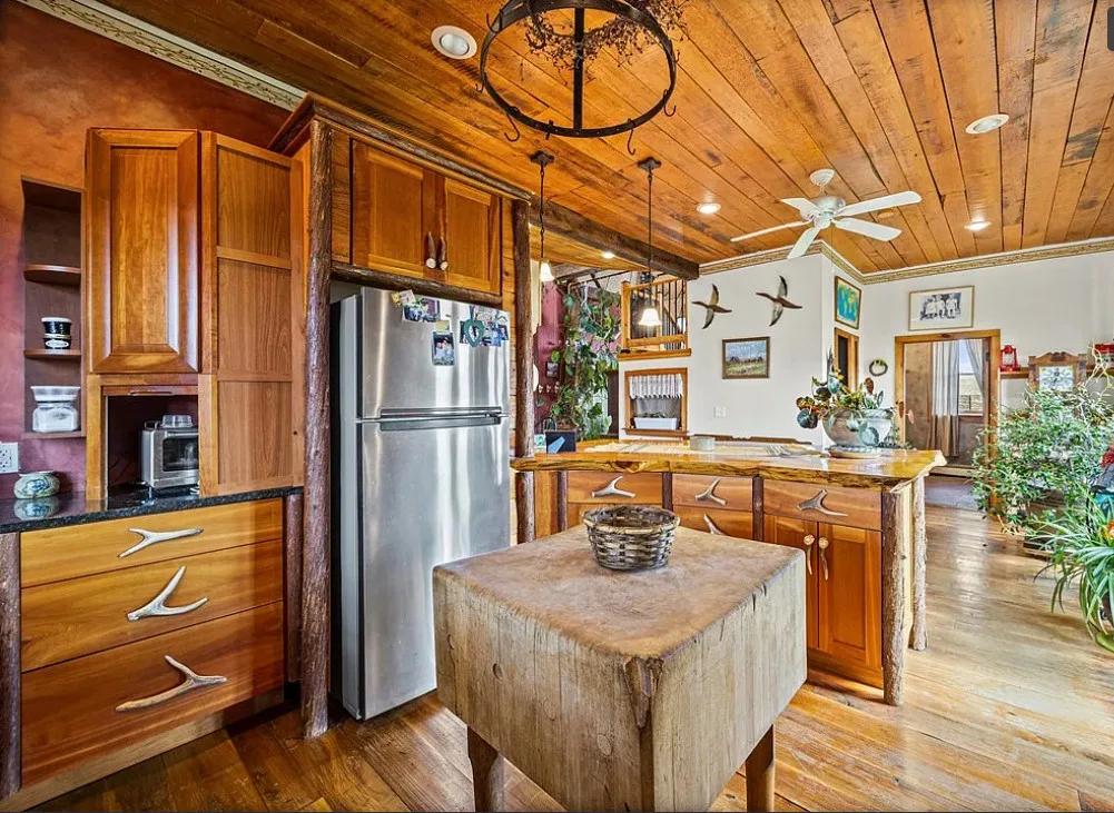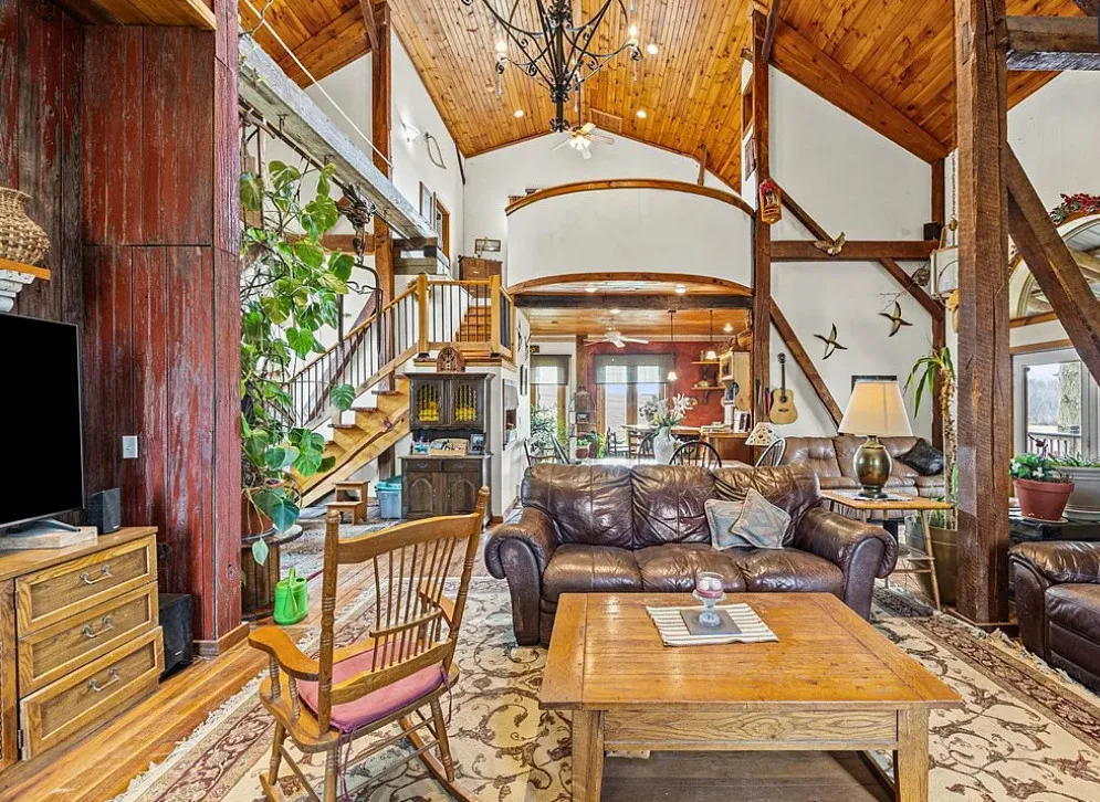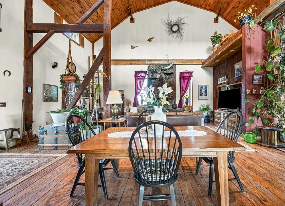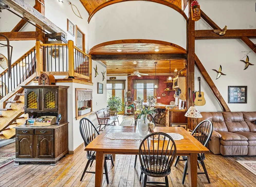 This converted barn is definitely unique! There are multiple outbuildings. The barn was built in 1920. It is located on 3.3 acres in Auburn, New York. The house features soaring ceilings, wood floors, a covered front porch, bead board ceilings and a unique kitchen. The property is being sold fully furnished. Four bedrooms, three bathrooms and 3,500 square feet. $349,900