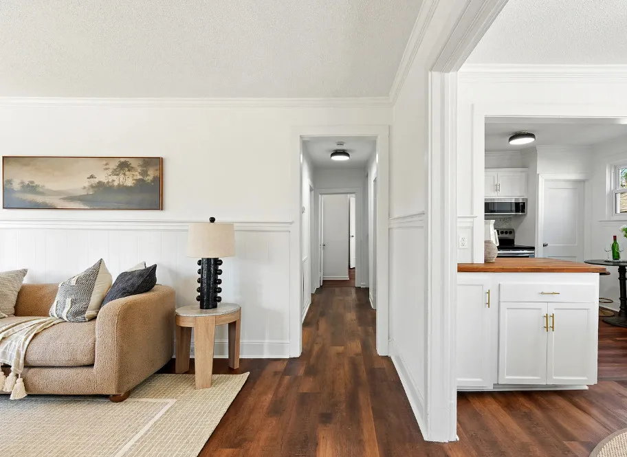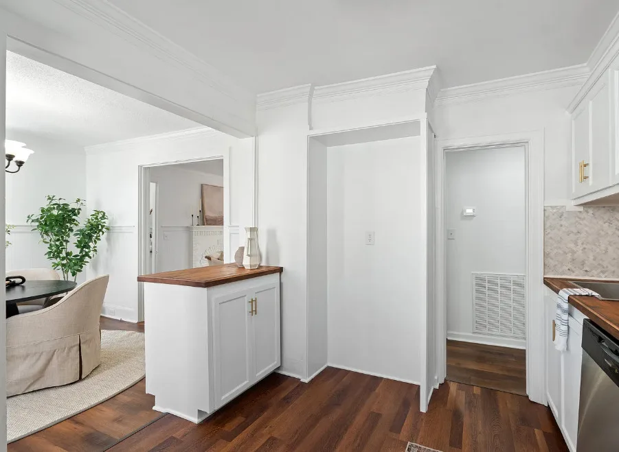 The exterior of this house reminds me of a storybook cottage! The interior on the other hand could use some character and color infused back in. The cottage was built in 1936. It is located on .2 acre in Thomasville, North Carolina. The house features a front porch, crown moulding, wide baseboards, wainscoting, chair rails, updated kitchen and updated bathrooms. Hopefully original wood floors are underneath the LVP that is throughout the house. Four bedrooms, two bathrooms and 1,165 square feet. $225,000