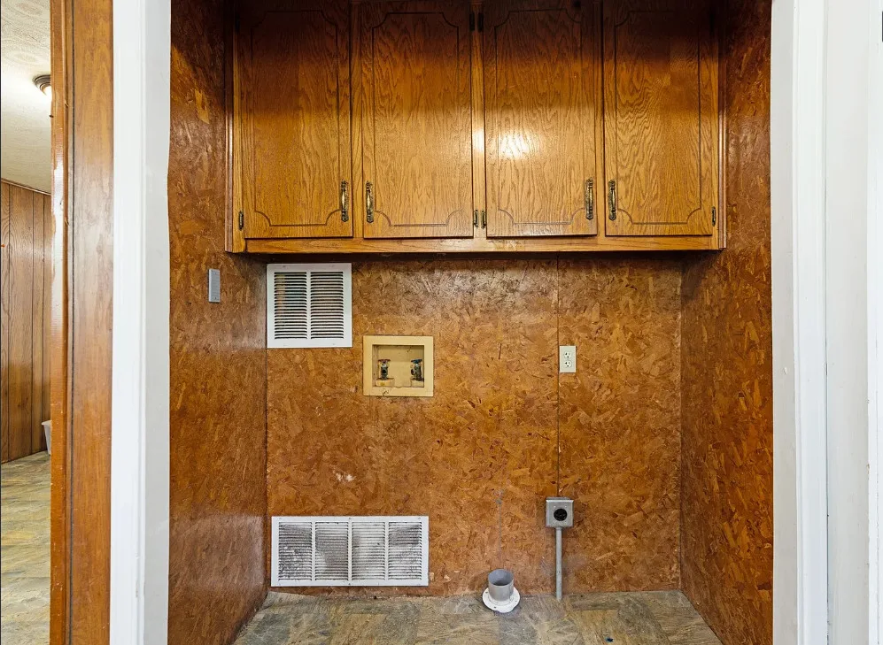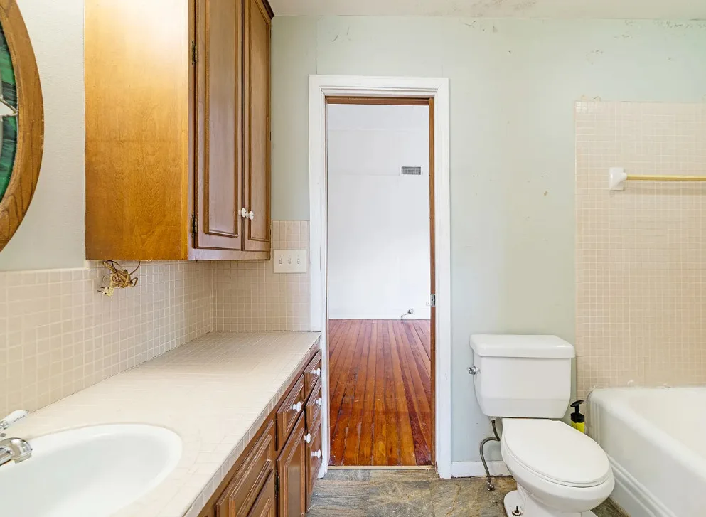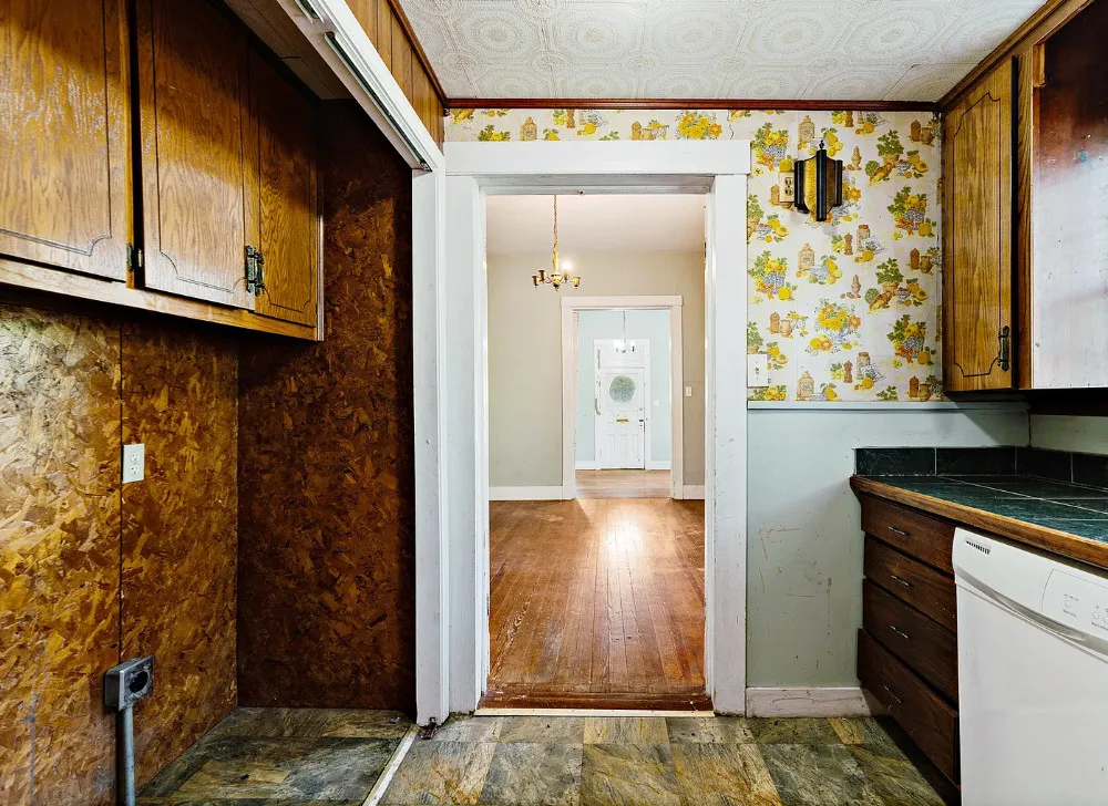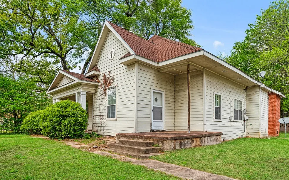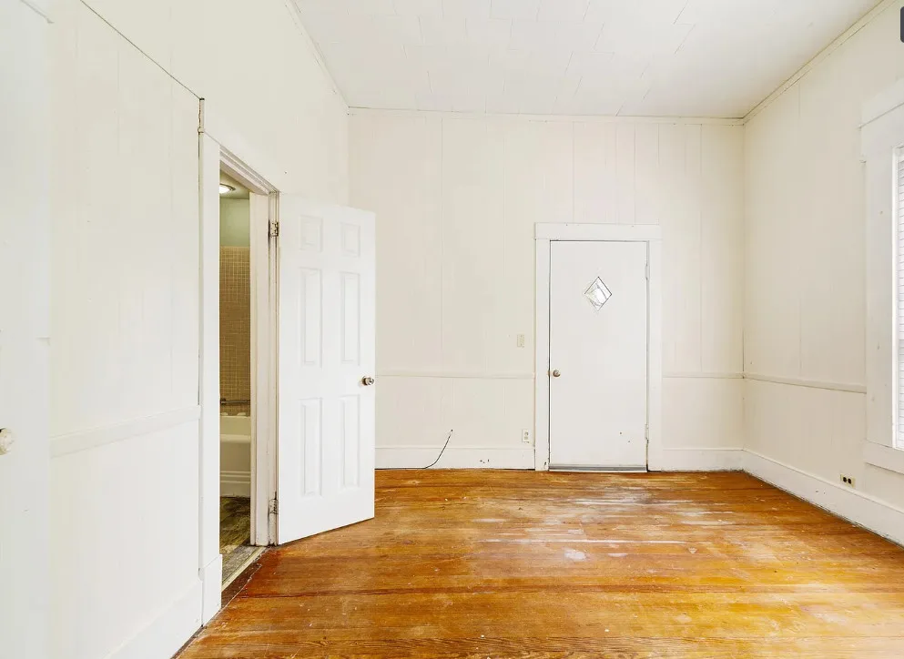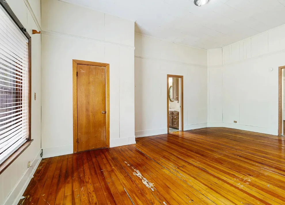 With some work these floors could be really nice! This house has a lot of potential. The house was built in the early 1900’s. It is located on .4 acre in Paris, Texas. The house features a covered front porch, original wood floors, large brick fireplace, baseboards and vintage light fixtures. There is a large back porch. Three bedrooms, two bathrooms and 2,230 square feet. $139,000