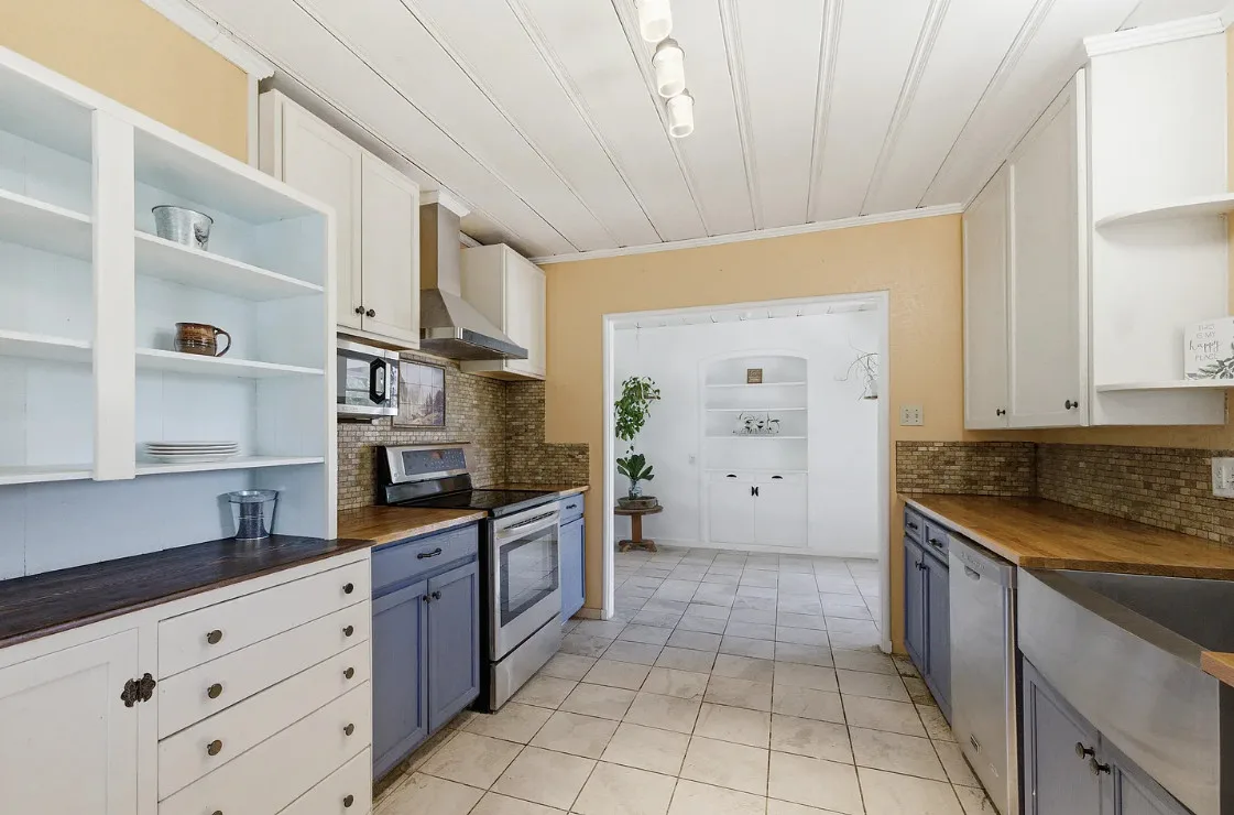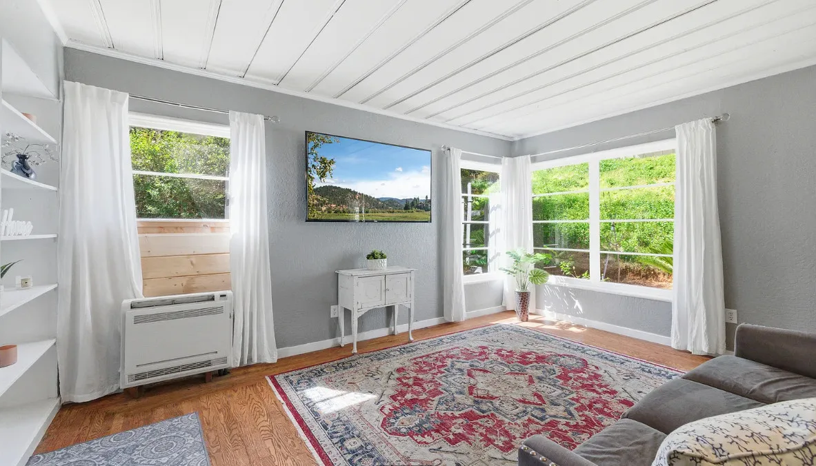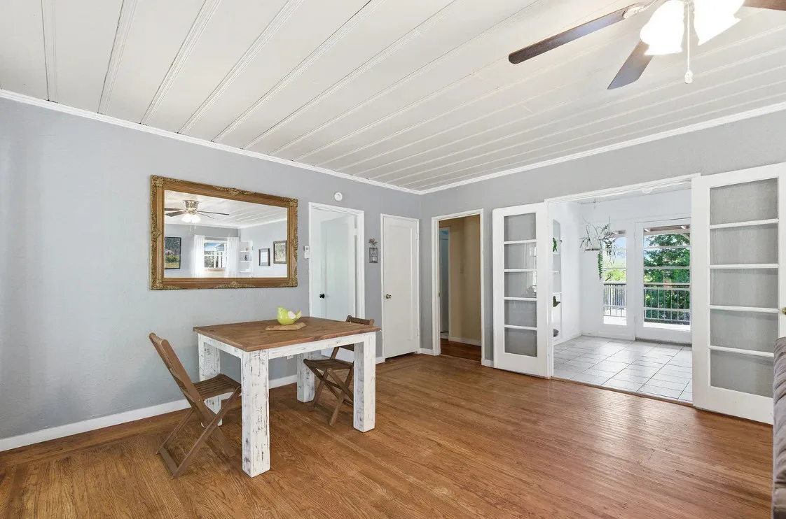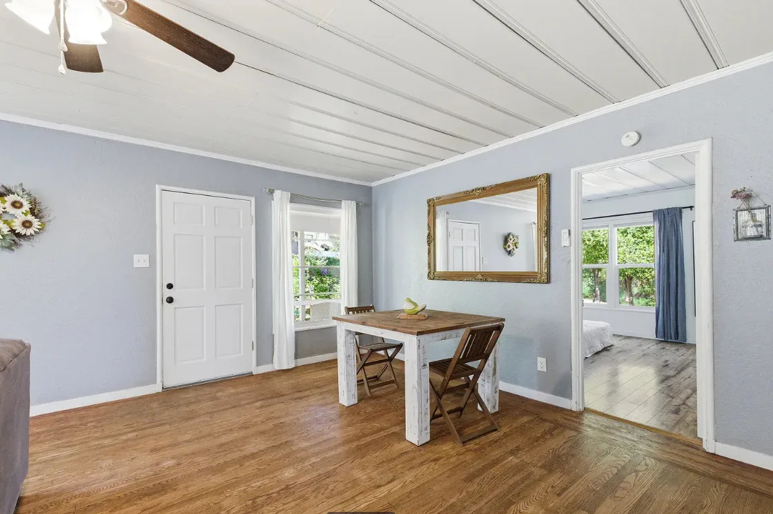 This is a cute house in California! There is nice curb appeal! The house was built in 1949. It is located on .40 acre in Sonora, California. The house features nice curb appeal, a covered front porch, a lot of natural light, built-in bookshelves, french doors, baseboards, crown moulding and wood ceilings. There is unfinished space on the bottom floor. The yard has flat garden areas. Two bedrooms, one bathroom and 1,059 square feet. $253,000