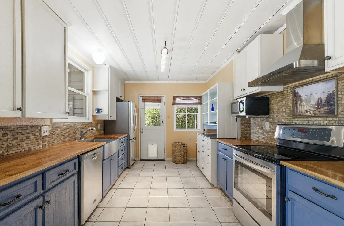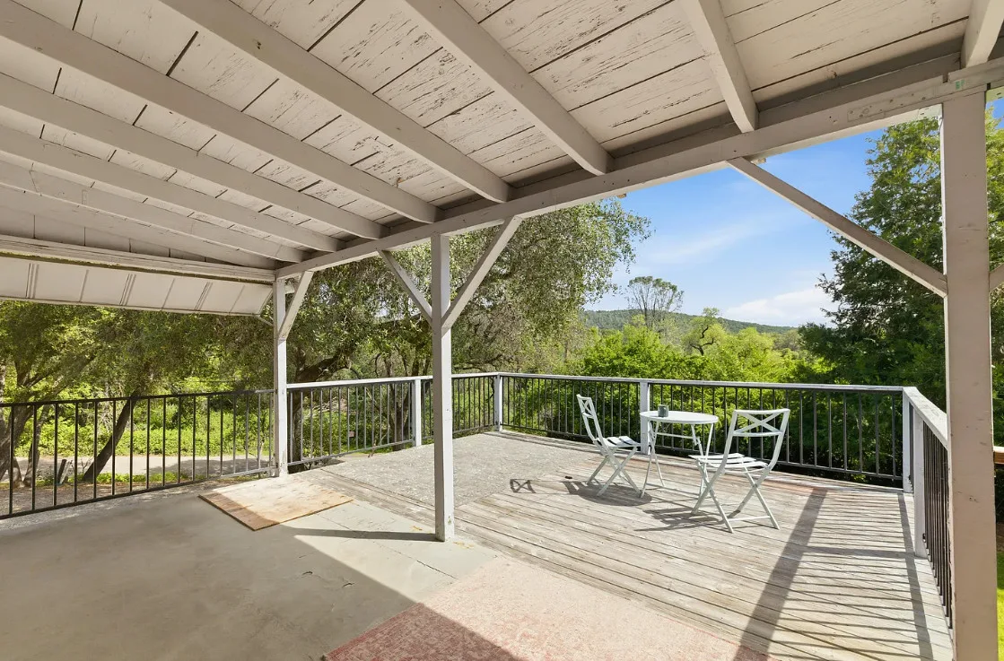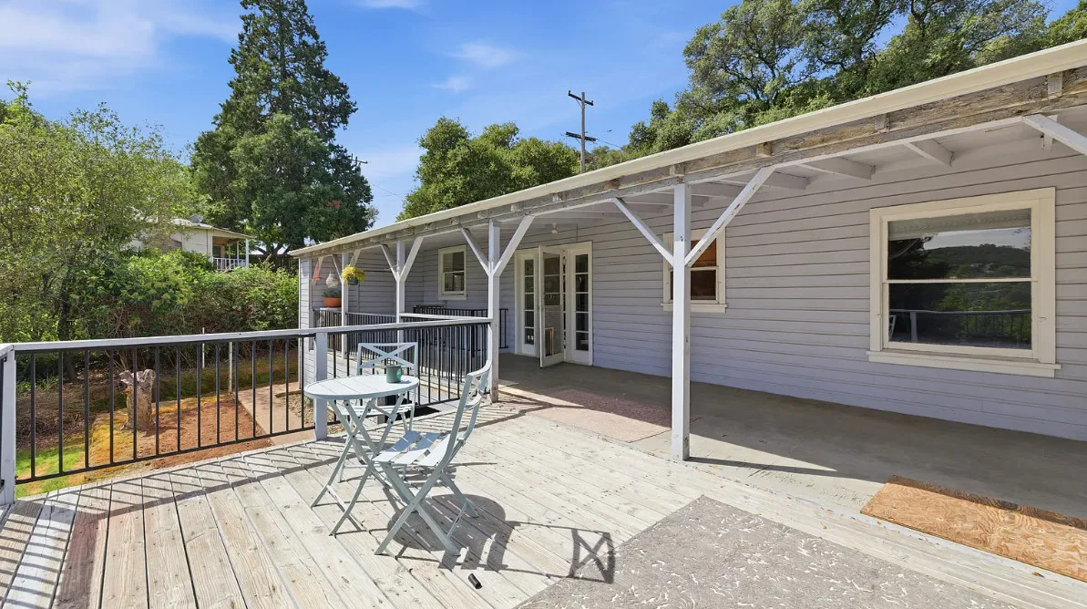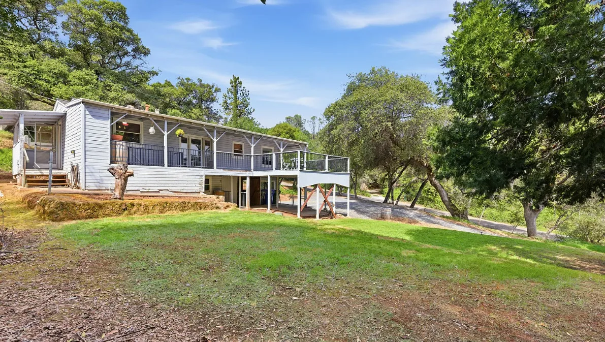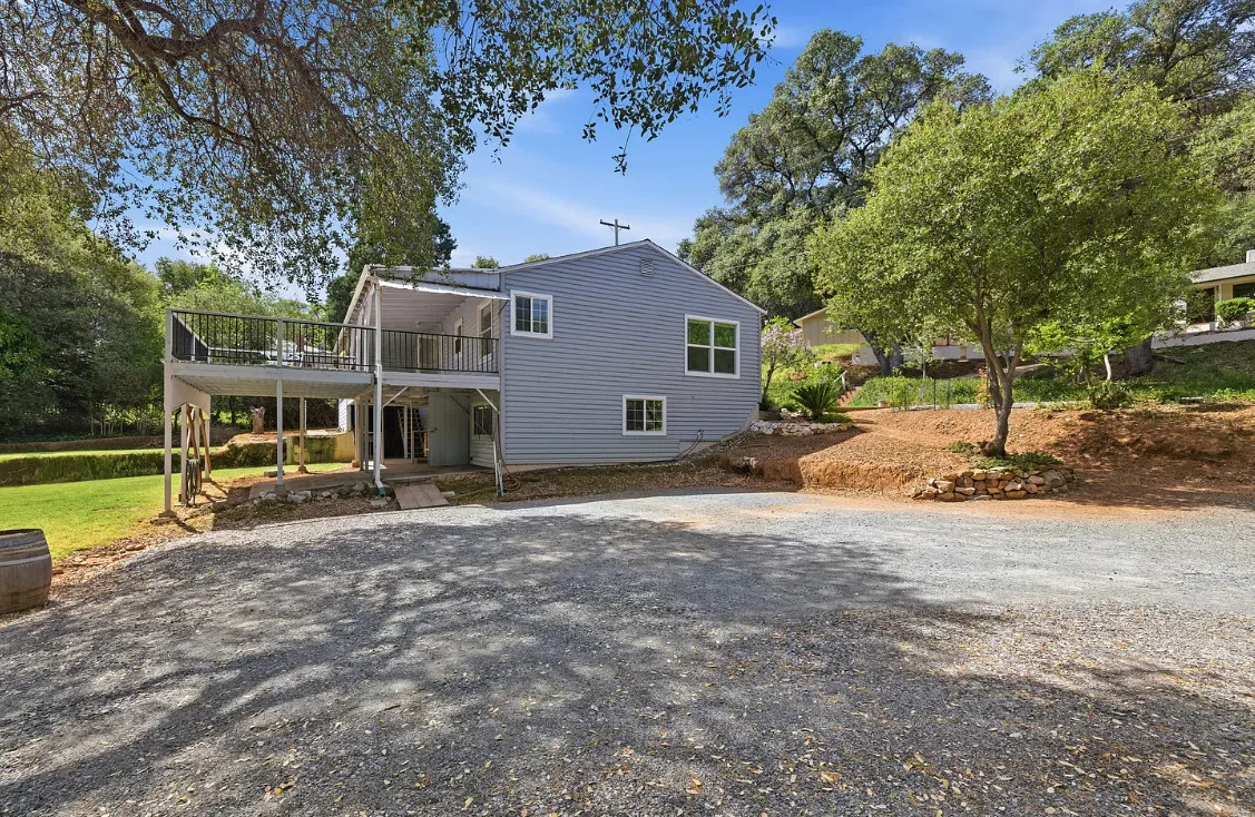 Curb appeal shines in this charming Myers Hill home set on an unusually spacious lot just minutes from downtown Sonora, the farmers market, and local dining and shopping. Located in a well-loved neighborhood close to town, this property offers an approachable opportunity for a primary residence or second home. A covered front porch welcomes you into a bright living room with original hardwood floors. Vintage built-ins add character and provide thoughtful storage. The home offers two bedrooms and one updated bathroom. The kitchen includes stainless steel appliances, a farmhouse sink, and sealed butcher block countertops. Step out from the dining area onto a large rear deck and enjoy foothill and mountain views, including Duckwall Mountain. Below the main living area is a substantial unfinished space with multiple rooms and sufficient height for comfortable access, currently used as a laundry area with additional potential. The private backyard offers level space for relaxing, gardening, or possible expansion. Recent improvements include a new water heater, newer sewer line, and driveway grading. With its combination of location, usable space, and recent improvements, this home is well positioned in today’s market.