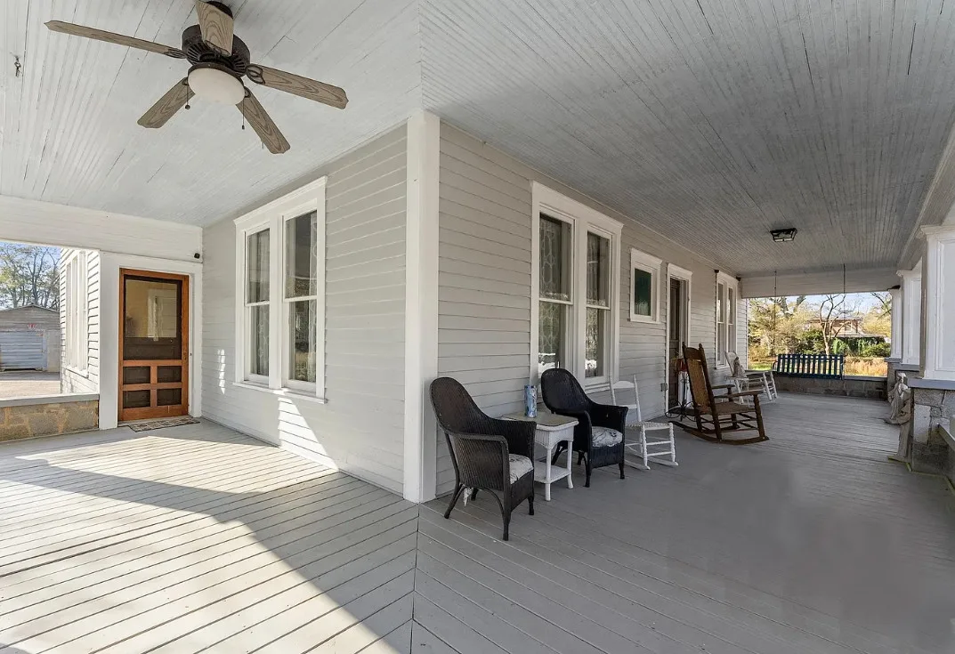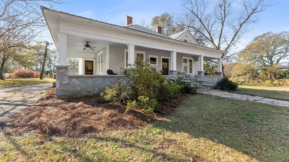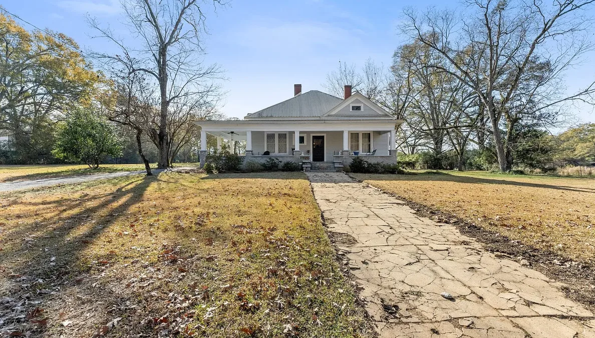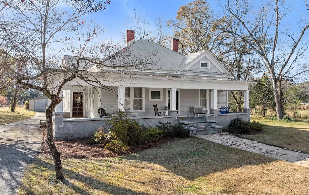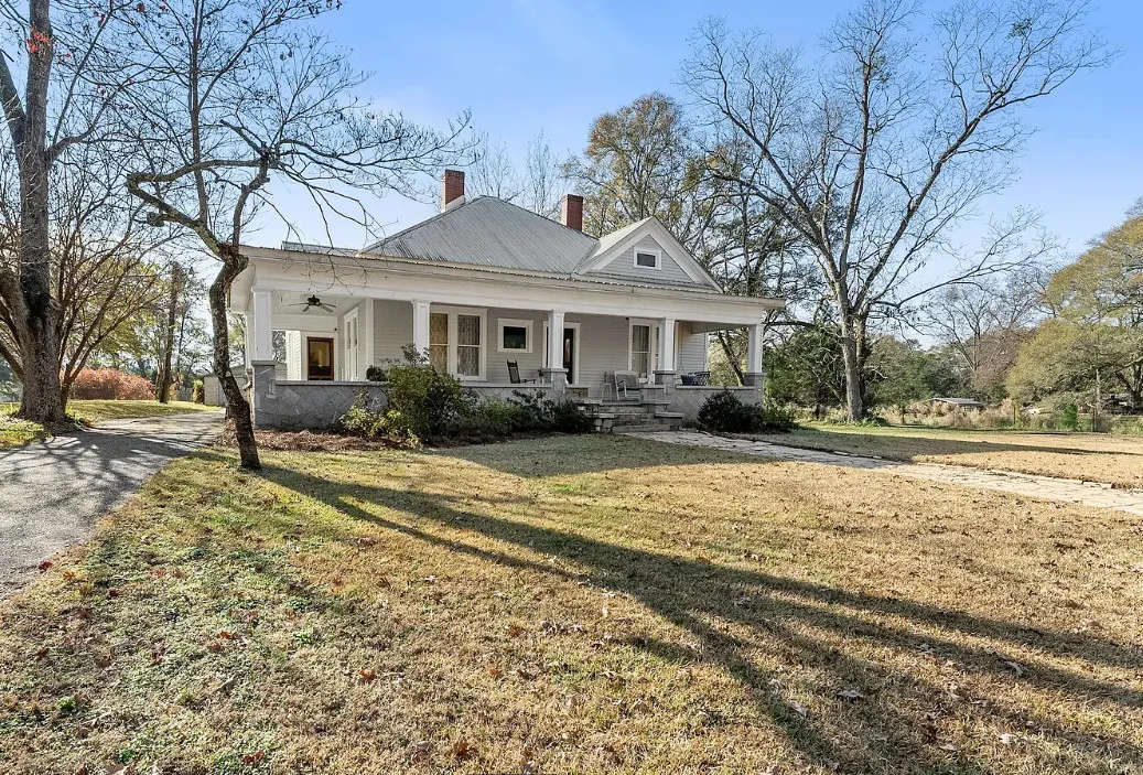 Step into timeless Southern charm with this beautifully restored 1917 farmhouse and have your very own Mini-Farm and this property is horse approved! Where historic character and modern comfort blend seamlessly. This true Southern treasure has been thoughtfully updated while preserving the craftsmanship and details that make it one of a kind. A grand wraparound porch welcomes you with ornate wood posts, granite masonry, and the original front door complete with a working skeleton key. Inside, the stately living room impresses with soaring coffered ceilings, antique glass windows, fireplace and abundant natural light. The elegant formal dining room features optional pocket doors, built-in serving cabinetry, and direct access to the side porch perfect for entertaining or enjoying quiet mornings. The bright, open kitchen has been lovingly remodeled to honor the home’s era while offering modern convenience. Features include custom cabinetry, stainless steel appliances, and a charming antique sink. A classic butler’s pantry connects the kitchen and dining room, showcasing granite countertops, glass-front cabinets, and the original swinging doors. The updated full bath offers custom tilework, ample vanity storage, open shelving, and a transom window that fills the space with soft natural light. Two generously sized bedrooms feature decorative fireplaces, a shared half bath, and plenty of space for customized closet designs. An additional room off the laundry area provides flexible space for a home office, guest room, or extra storage. Throughout the home, you’ll find gleaming heart pine floors, tall beadboard ceilings, intricate molding, original hardware, and era-appropriate light fixtures all preserving the home’s rich history. Major updates include a new HVAC system with ductwork (2023), new water heater, updated plumbing, and fresh paint. Outside, enjoy 2.43 level acres surrounded by mature hardwoods, perennial gardens, blueberry bushes, a chicken coop, fenced vegetable garden, and an open backyard ideal for country living. The newly added back deck with an era-styled awning extends your living space outdoors. Two spacious workshops (24×24 and 20×30) offer endless potential for hobbies, storage, or small-farm use. Conveniently located just minutes from Watson Mill State Park with an easy commute to Athens, this lovingly maintained property offers historic charm, modern comfort, and peaceful country living and approved for horses. A truly remarkable turn-of-the-century farmhouse restored with intention, preserved with pride, and ready for its next chapter. Sellers are Motivated! Preferred lender offers a 1% lender credit of loan amount.