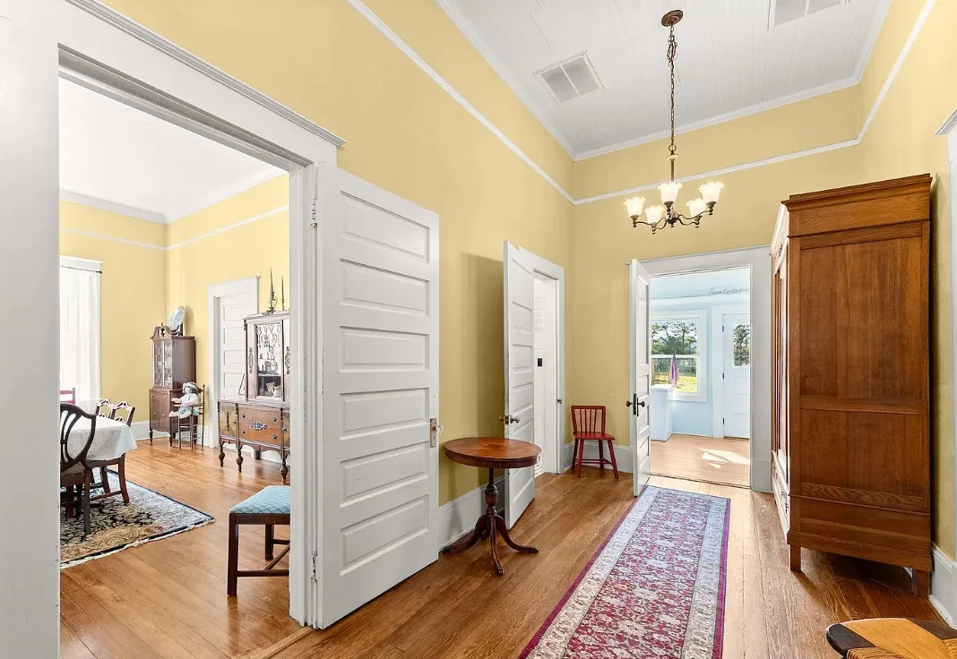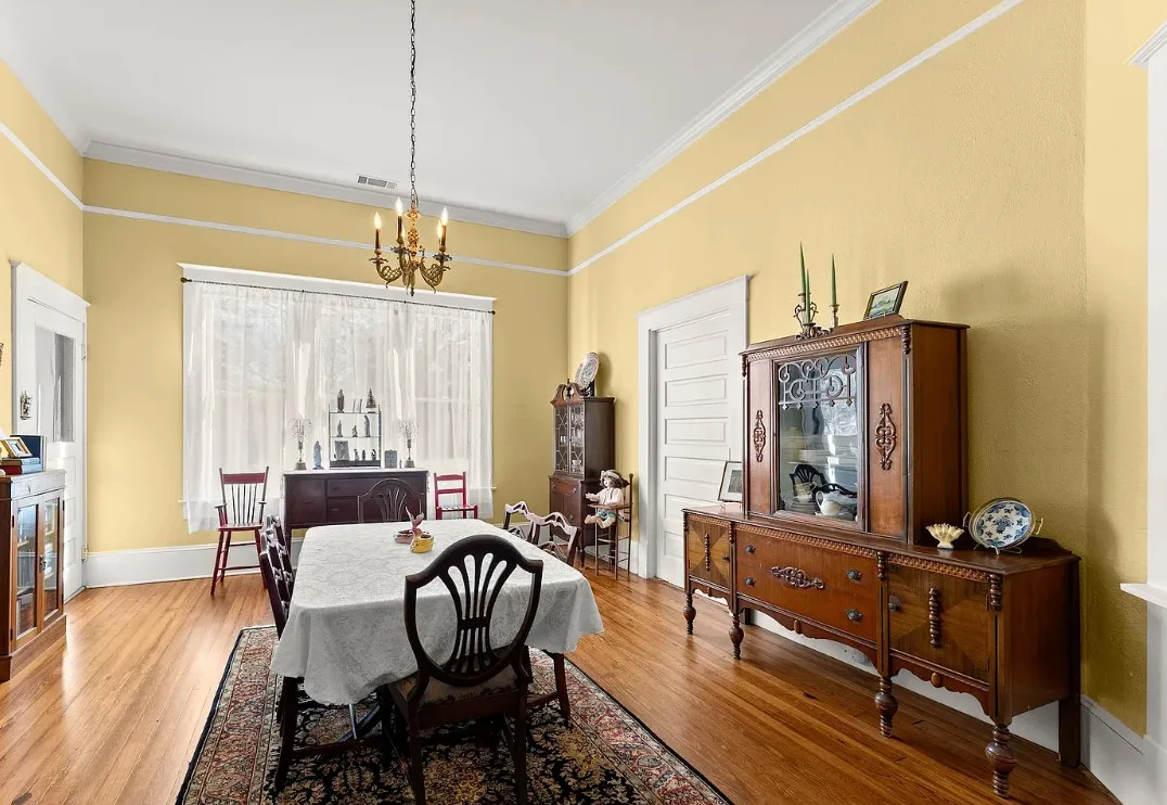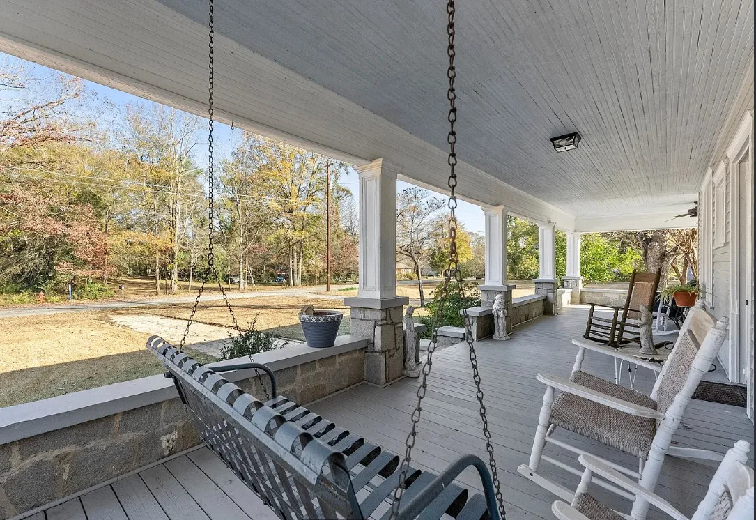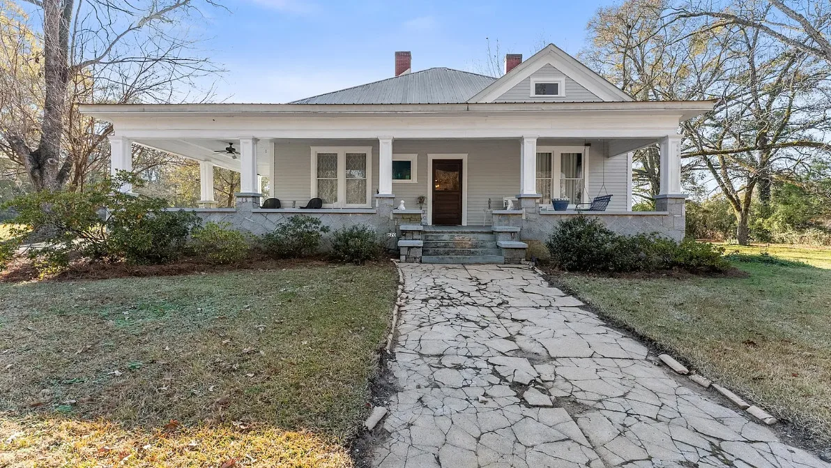 Step into timeless Southern charm with this beautifully restored 1917 farmhouse and have your very own Mini-Farm and this property is horse approved! Where historic character and modern comfort blend seamlessly. This true Southern treasure has been thoughtfully updated while preserving the craftsmanship and details that make it one of a kind. A grand wraparound porch welcomes you with ornate wood posts, granite masonry, and the original front door complete with a working skeleton key. Inside, the stately living room impresses with soaring coffered ceilings, antique glass windows, fireplace and abundant natural light. The elegant formal dining room features optional pocket doors, built-in serving cabinetry, and direct access to the side porch perfect for entertaining or enjoying quiet mornings. The bright, open kitchen has been lovingly remodeled to honor the home’s era while offering modern convenience. Features include custom cabinetry, stainless steel appliances, and a charming antique sink. A classic butler’s pantry connects the kitchen and dining room, showcasing granite countertops, glass-front cabinets, and the original swinging doors. The updated full bath offers custom tilework, ample vanity storage, open shelving, and a transom window that fills the space with soft natural light. Two generously sized bedrooms feature decorative fireplaces, a shared half bath, and plenty of space for customized closet designs. An additional room off the laundry area provides flexible space for a home office, guest room, or extra storage. Throughout the home, you’ll find gleaming heart pine floors, tall beadboard ceilings, intricate molding, original hardware, and era-appropriate light fixtures all preserving the home’s rich history. Major updates include a new HVAC system with ductwork (2023), new water heater, updated plumbing, and fresh paint. Outside, enjoy 2.43 level acres surrounded by mature hardwoods, perennial gardens, blueberry bushes, a chicken coop, fenced vegetable garden, and an open backyard ideal for country living. The newly added back deck with an era-styled awning extends your living space outdoors. Two spacious workshops (24×24 and 20×30) offer endless potential for hobbies, storage, or small-farm use. Conveniently located just minutes from Watson Mill State Park with an easy commute to Athens, this lovingly maintained property offers historic charm, modern comfort, and peaceful country living and approved for horses. A truly remarkable turn-of-the-century farmhouse restored with intention, preserved with pride, and ready for its next chapter. Sellers are Motivated! Preferred lender offers a 1% lender credit of loan amount.