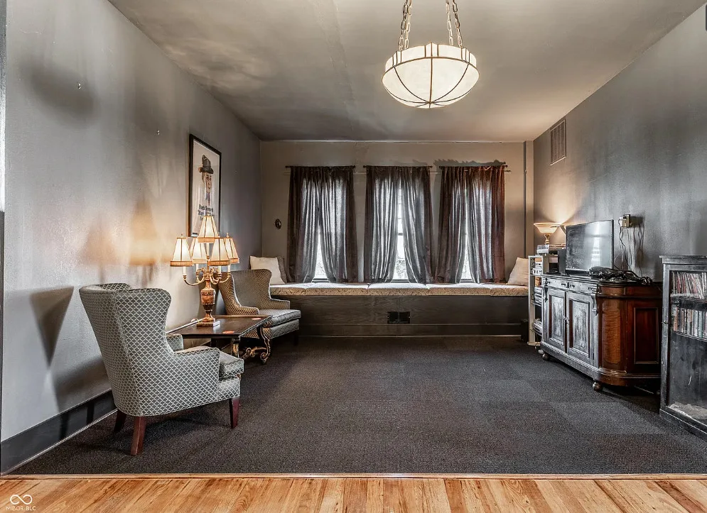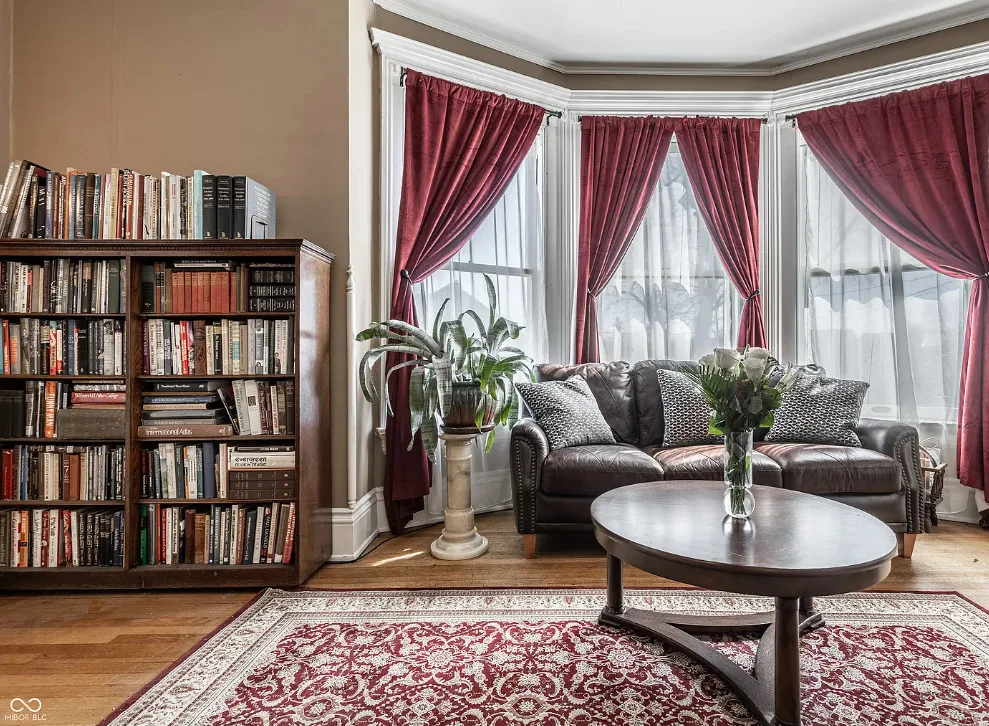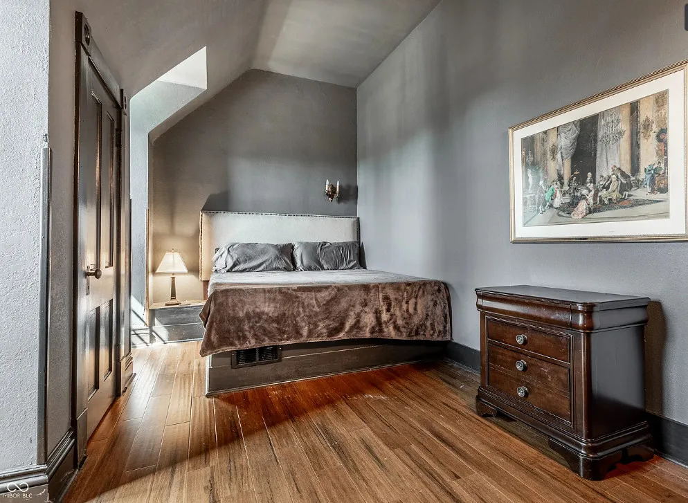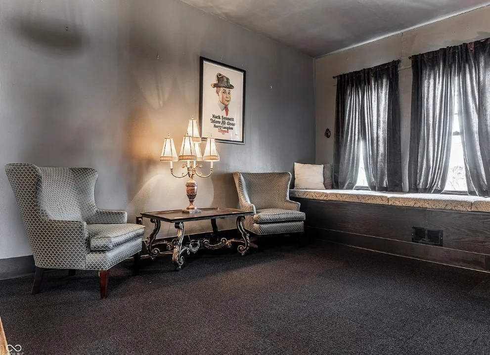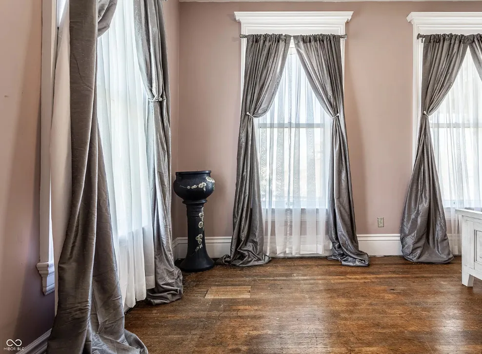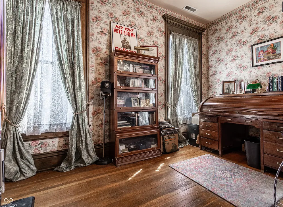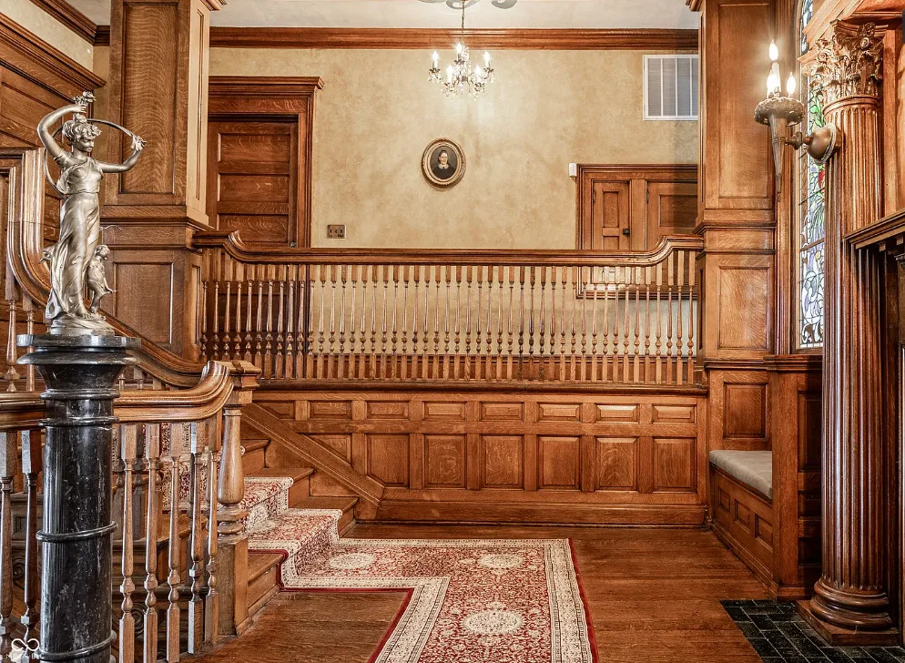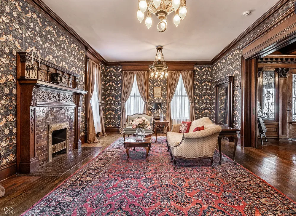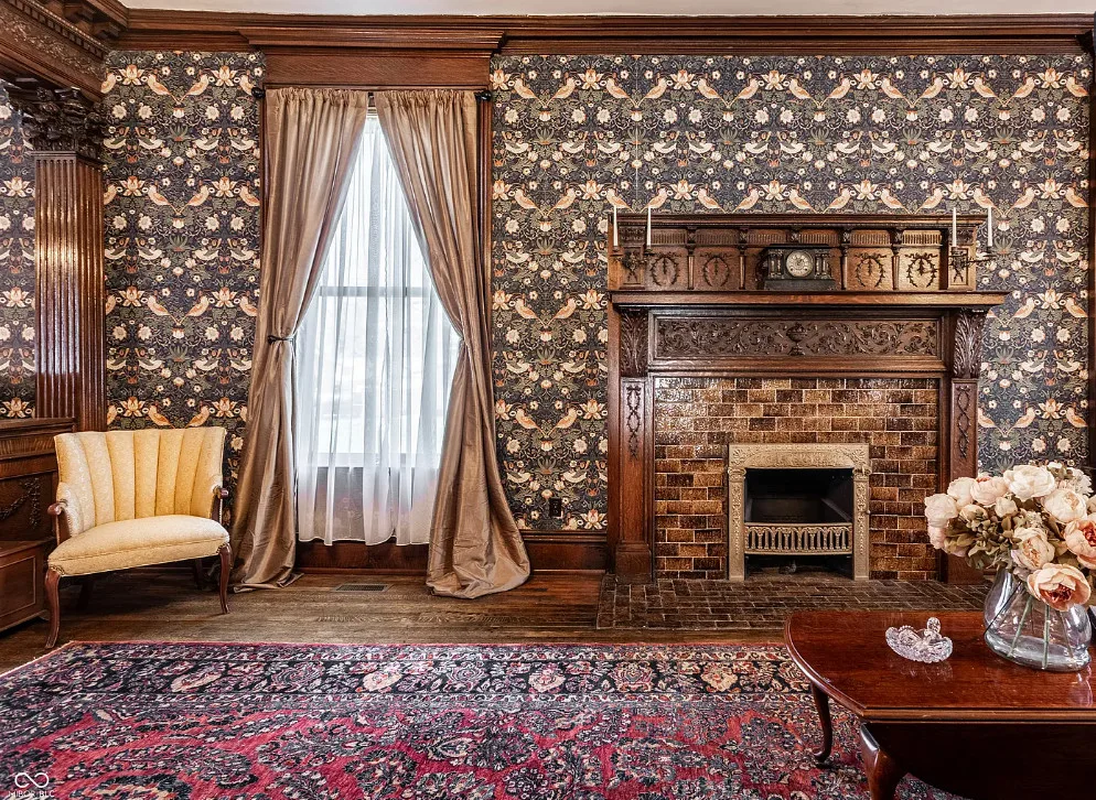 The Charles Over Mansion | Keystone of Muncie’s Emily Kimbrough Historic District A rare opportunity to own one of the area’s most iconic historic estates, where timeless architecture, a hidden third-floor ballroom, and modern luxury converge. Meticulously restored, this 1902 Georgian Revival and Neo-Classical landmark offers a level of craftsmanship and presence rarely found. Built by industrialist Charles Over (founder of Over Glass Works), the brick mansion makes an unforgettable 1st impression with grand Corinthian columns, an expansive front porch, and matching second-level portico. Inside, original terrazzo floors welcome you into the vestibule. A breathtaking solid oak and ornate leaded glass entry opens into an interior of luxurious Victorian grandeur. Original hardwood floors, curated ornate gilded bronze, crystal chandeliers and other authentic period lighting carry throughout. The main level flows effortlessly from the grand entrance hall, surrounded by a formal dining room with oak wainscoting, panoramic murals, coffered ceiling, a drawing room and parlor with fireplaces, ornate pediments, oak pillars and seven original oak pocket doors. Original marble bathroom sinks, claw-foot tub, leaded and stained glass, and a grand fireplace atop the grand staircase with dual built-in bench seating, all showcasing exceptional craftsmanship. The 3rd floor offers a true showpiece, an immersive speakeasy-style retreat with Chicago brick floors, guest bedroom, full bath with soaking tub, and a stunning ballroom featuring an expansive dance floor, stage, wet bar, and media lounge. Painstakingly preserved, restored and thoughtfully modernized with 4 zoned high-efficiency HVAC systems, chef’s kitchen featuring commercial-grade appliances, and unusually generous closet space throughout. Located in the revitalizing Emily Kimbrough Historic District, moments from downtown Muncie’s dining, shops, and culture. A legacy property for the next fortunate steward.